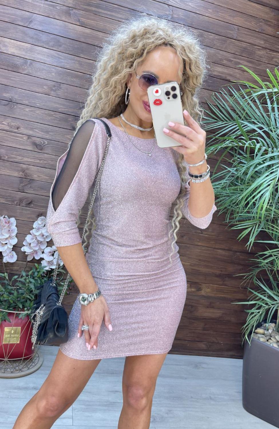 Зустрічайте ідеальну сукню для тих, хто не боїться бути в центрі уваги! Це облягаюча міні-сукня виготовлена з якісного люрексу, який неймовірно красиво переливається за будь-якого освітлення, створюючи ефект мерехтливого зоряного пилу. Сітка на рукавах додає образу інтриги та легкості.