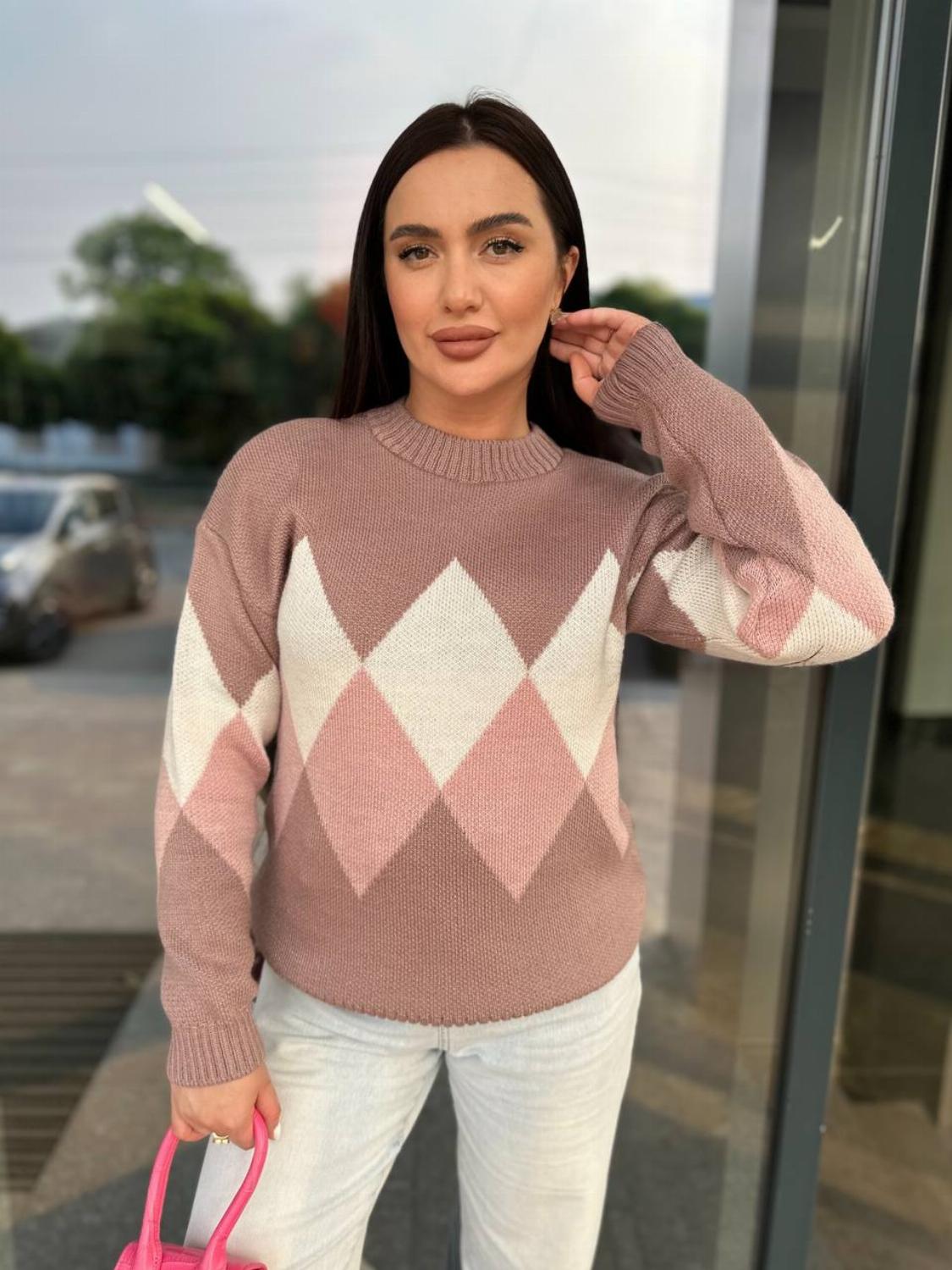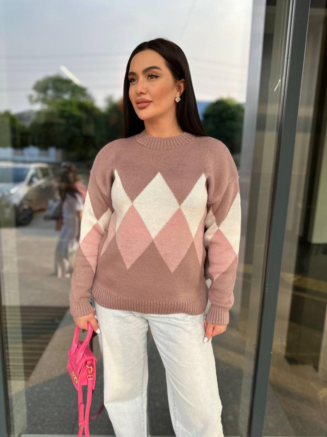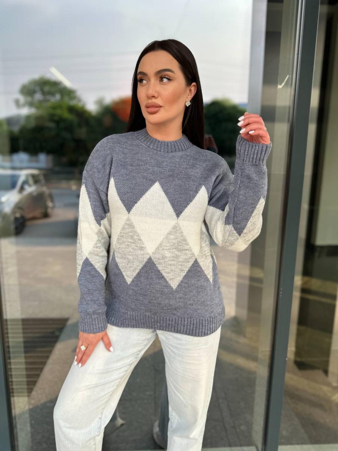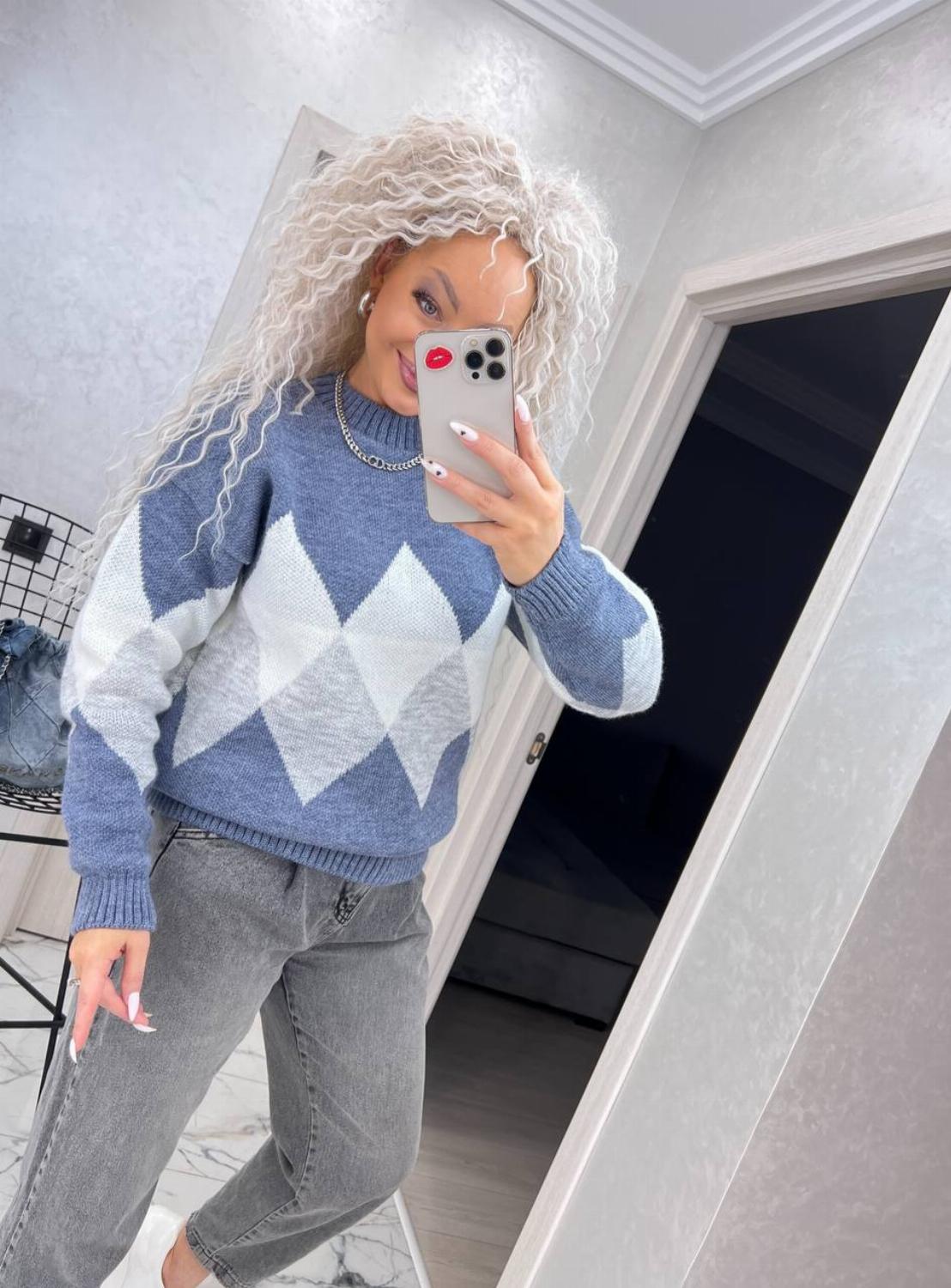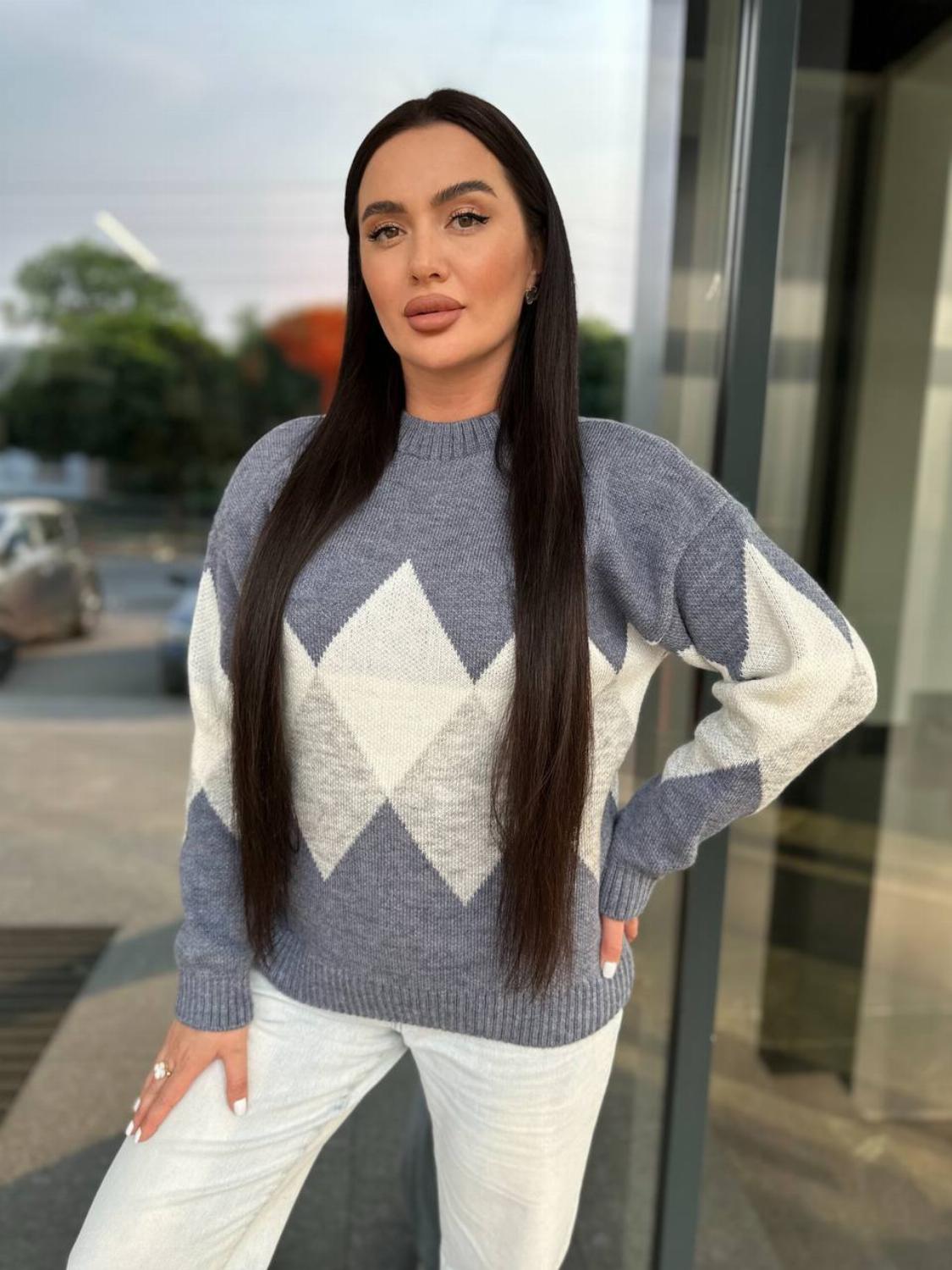 Ефектний молодіжний жіночий светр джемпер "Ромбик" - стильна новинка для наших модниць на кожен день! Модель шикарно виглядає на будь-якій фігурі, вільного крою, за рахунок чого відмінно приховує недоліки. Светр «Ромбик» відмінно поєднується з легінсами або джинсами. Додайте модну новинку в свій гардероб!