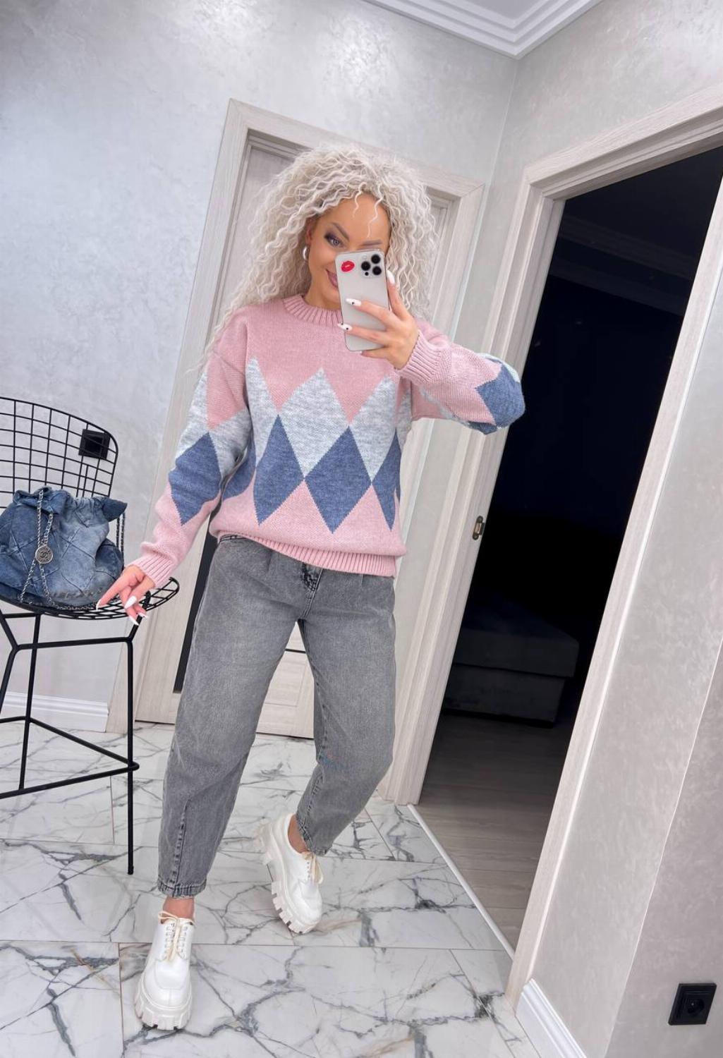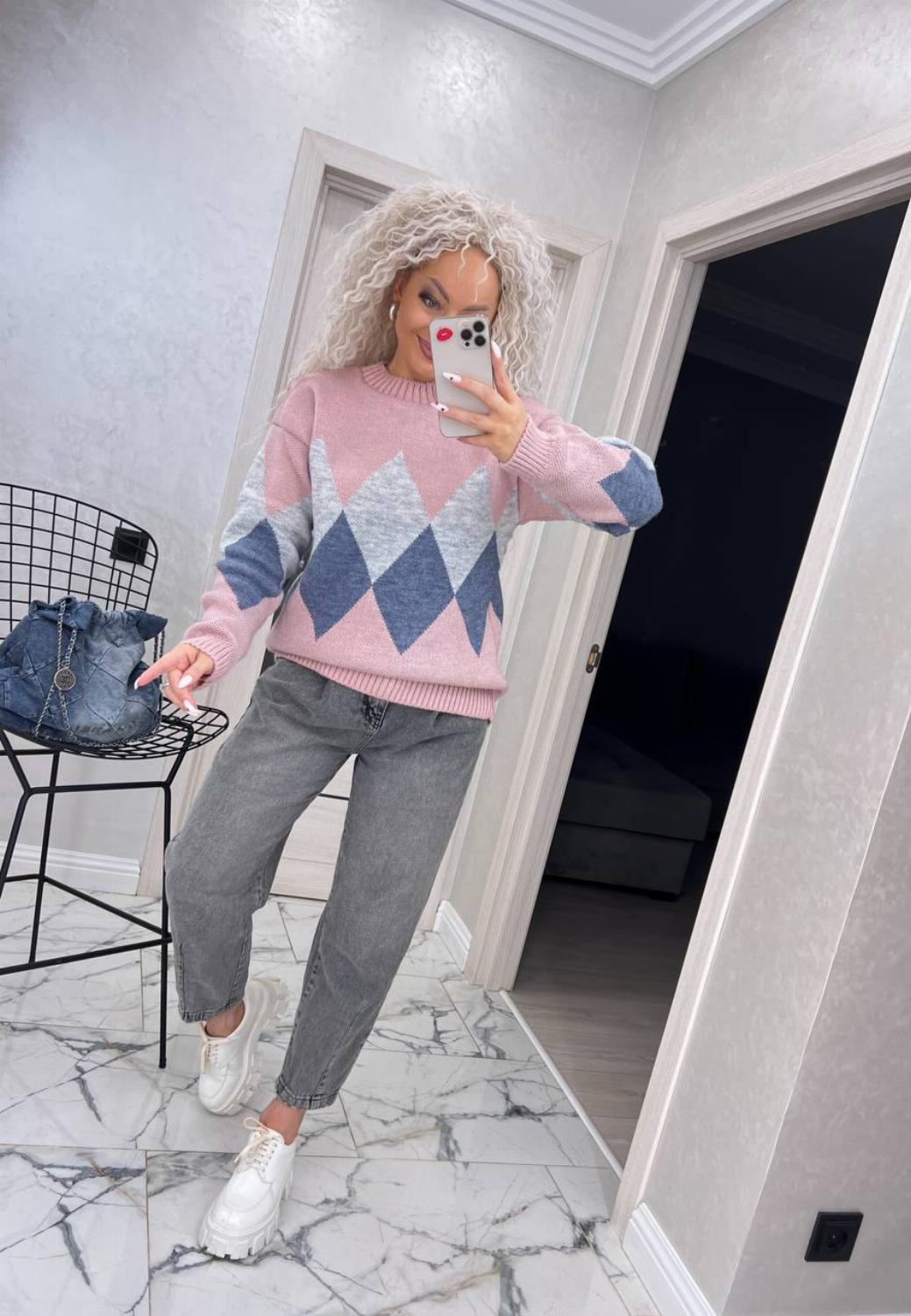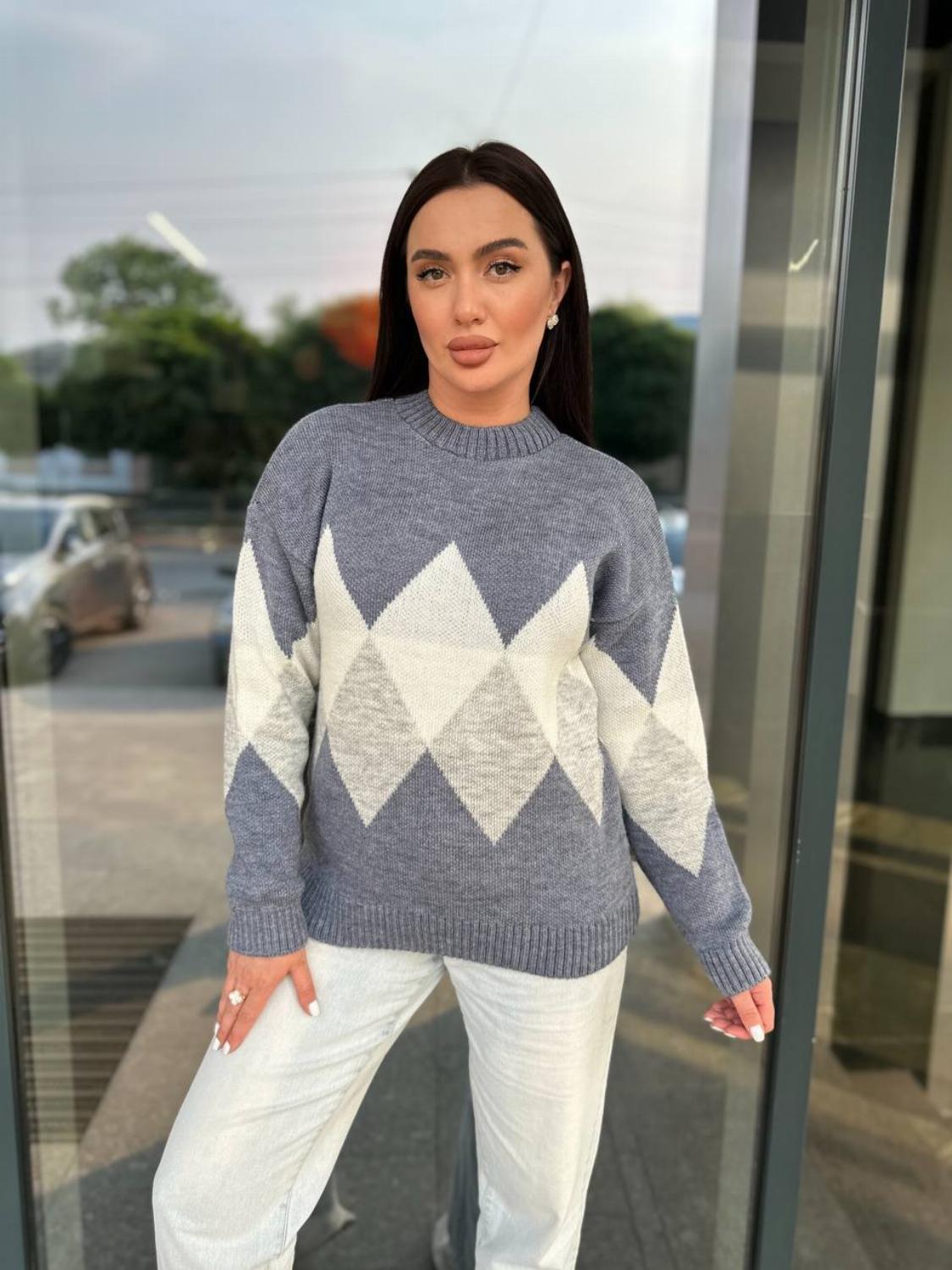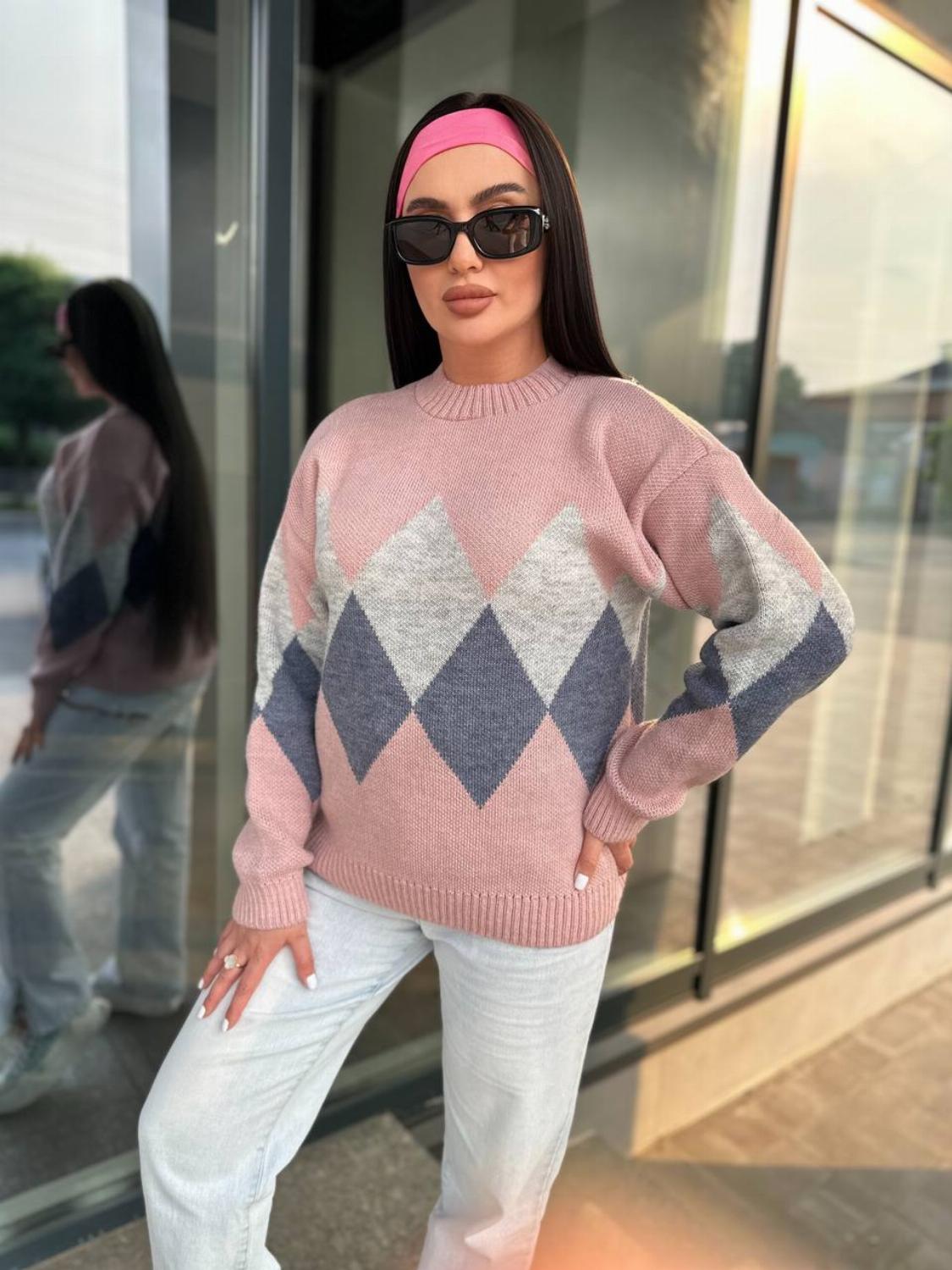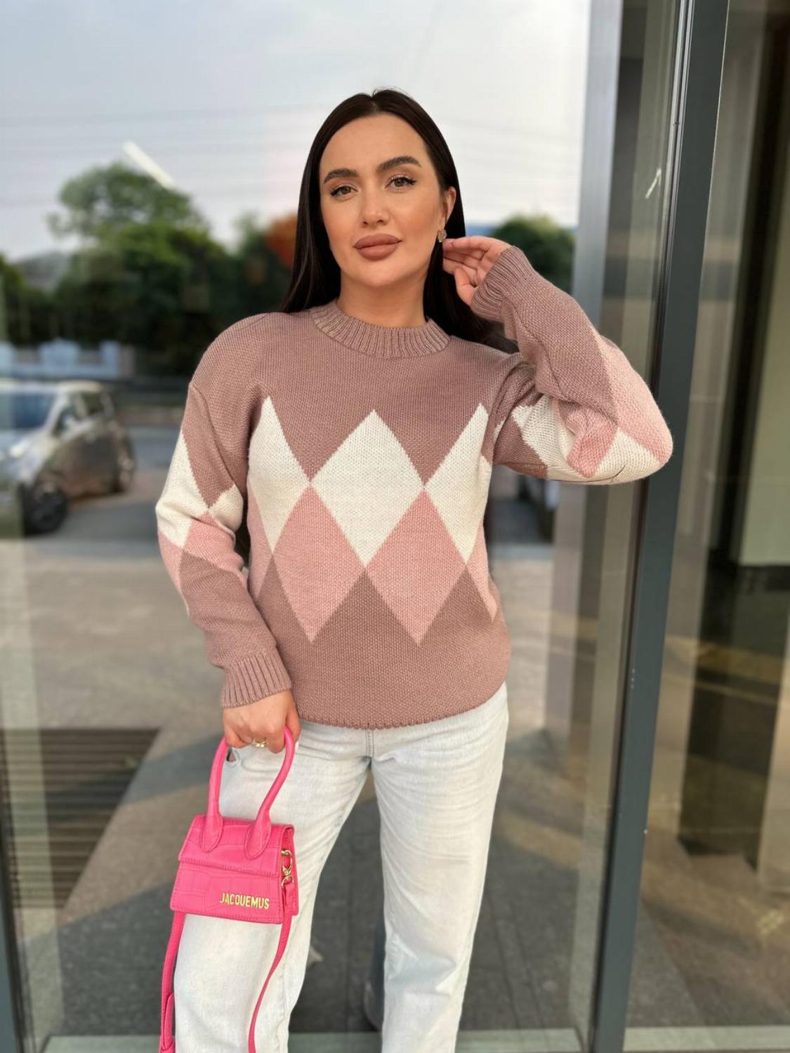 Ефектний молодіжний жіночий светр джемпер "Ромбик" - стильна новинка для наших модниць на кожен день! Модель шикарно виглядає на будь-якій фігурі, вільного крою, за рахунок чого відмінно приховує недоліки. Светр «Ромбик» відмінно поєднується з легінсами або джинсами. Додайте модну новинку в свій гардероб!