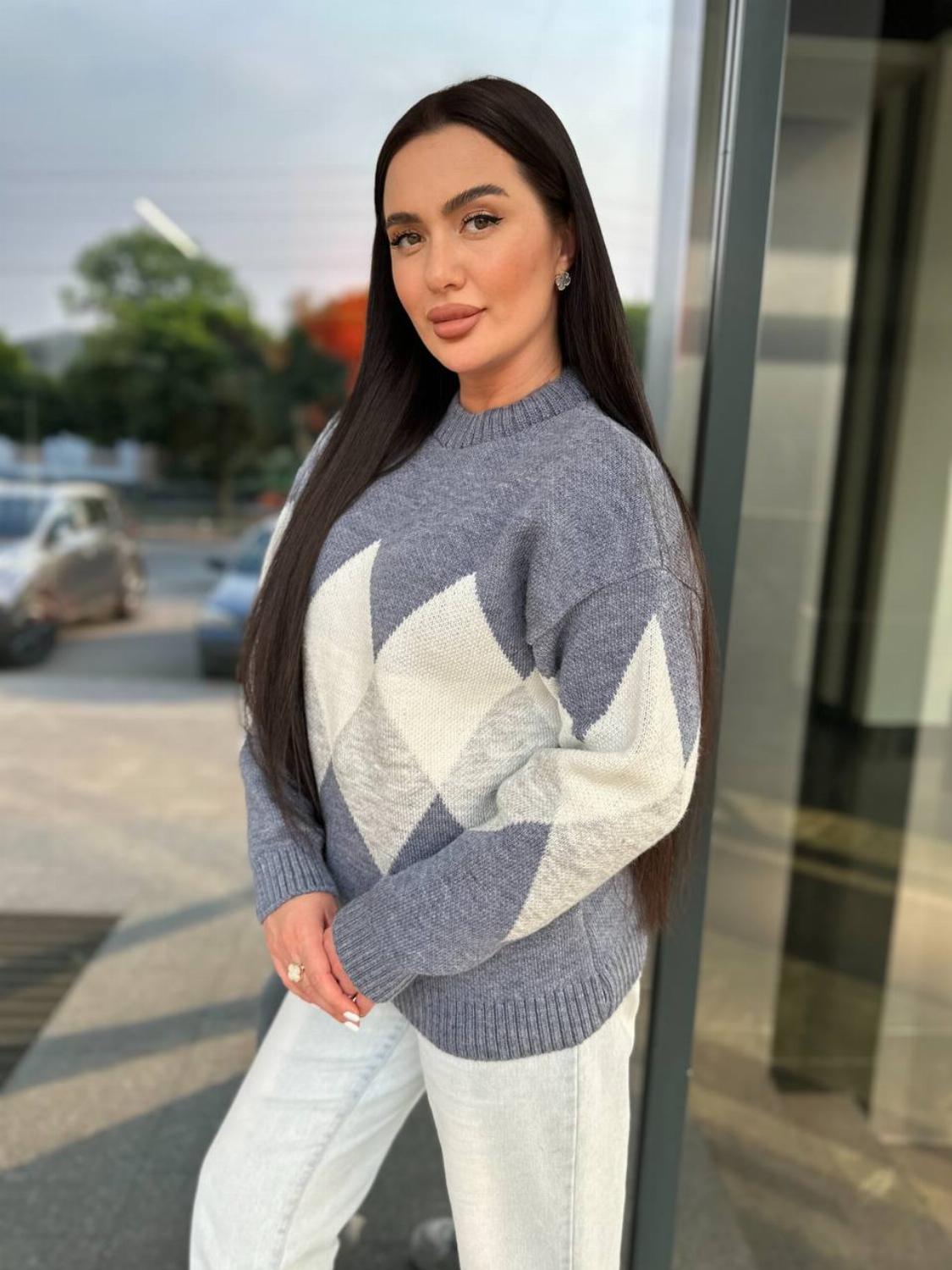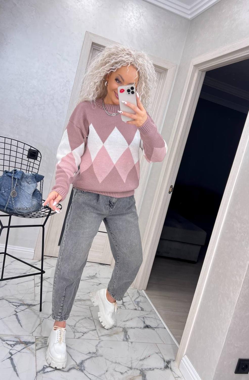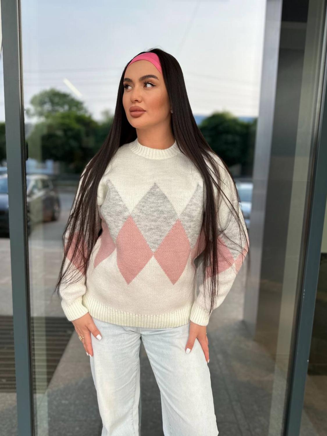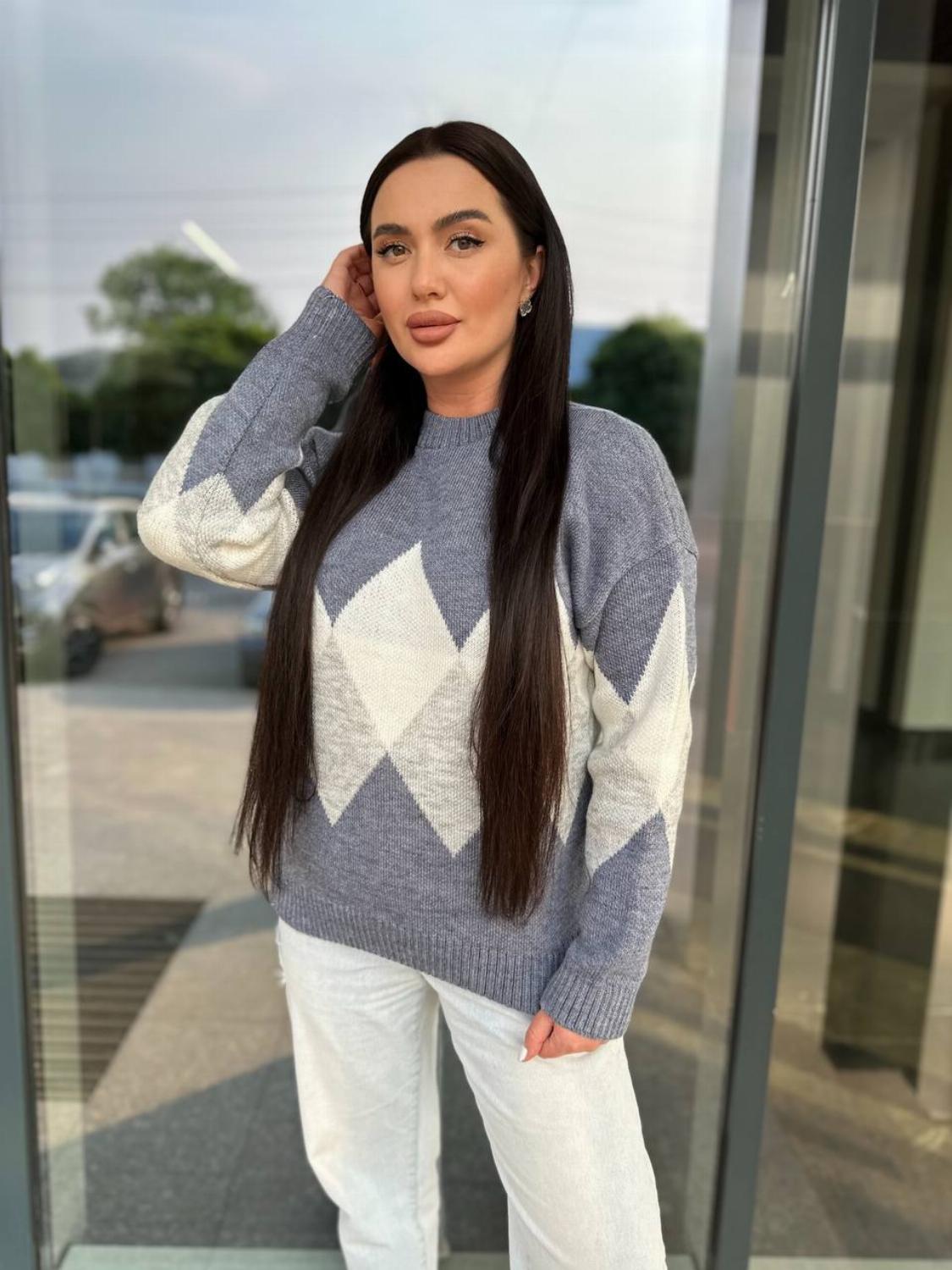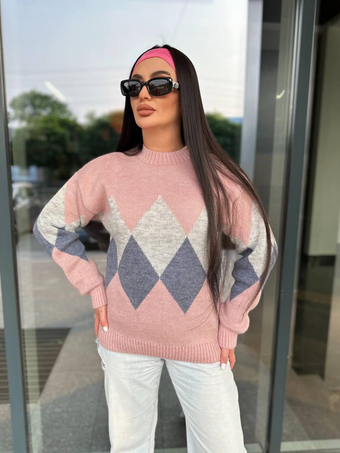 Ефектний молодіжний жіночий светр джемпер "Ромбик" - стильна новинка для наших модниць на кожен день! Модель шикарно виглядає на будь-якій фігурі, вільного крою, за рахунок чого відмінно приховує недоліки. Светр «Ромбик» відмінно поєднується з легінсами або джинсами. Додайте модну новинку в свій гардероб!