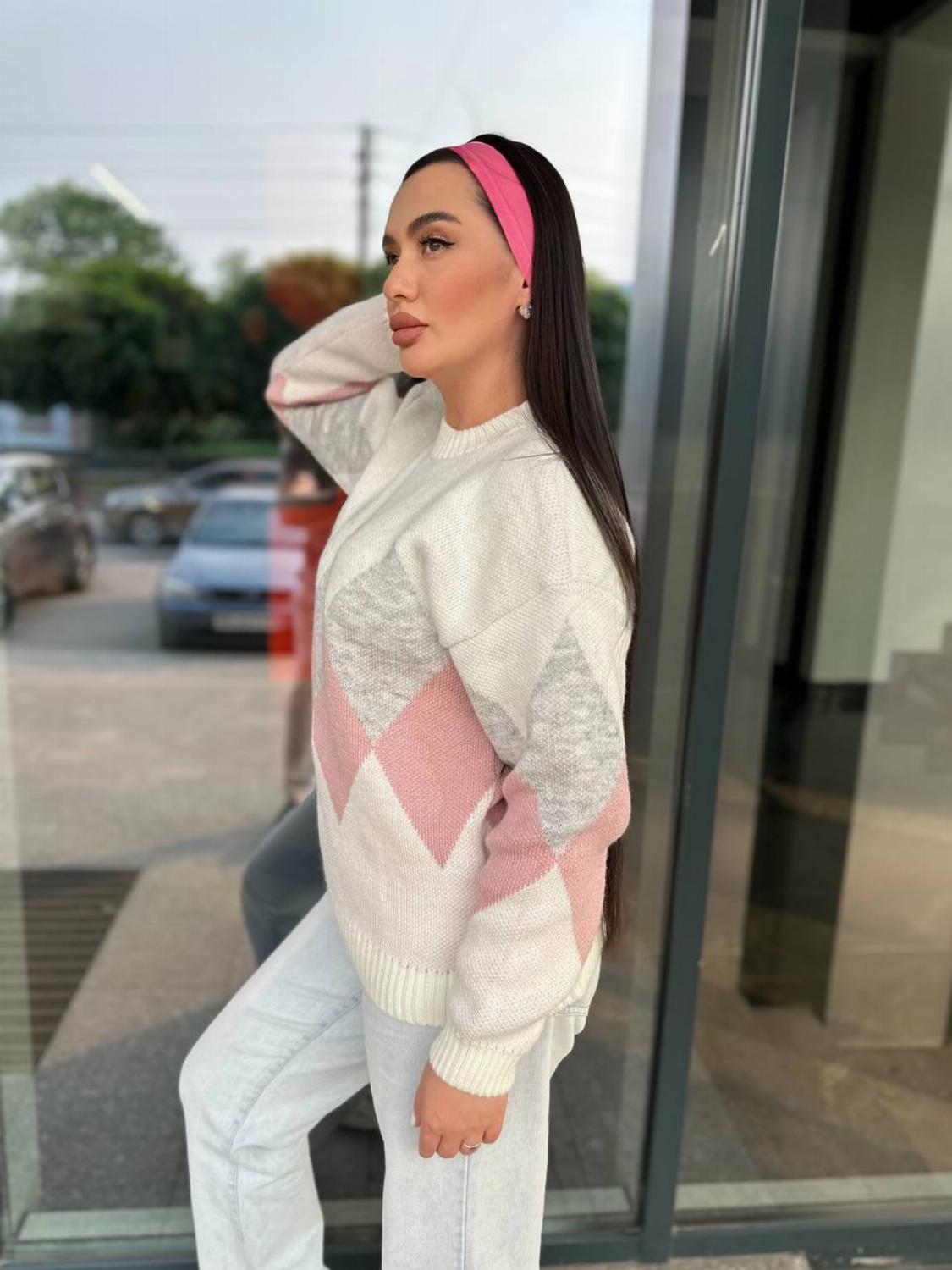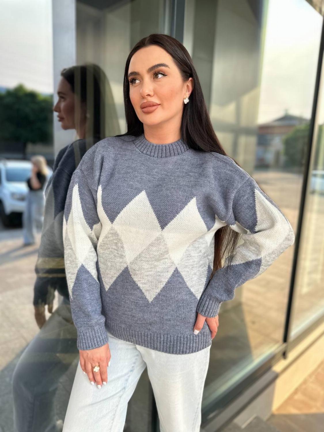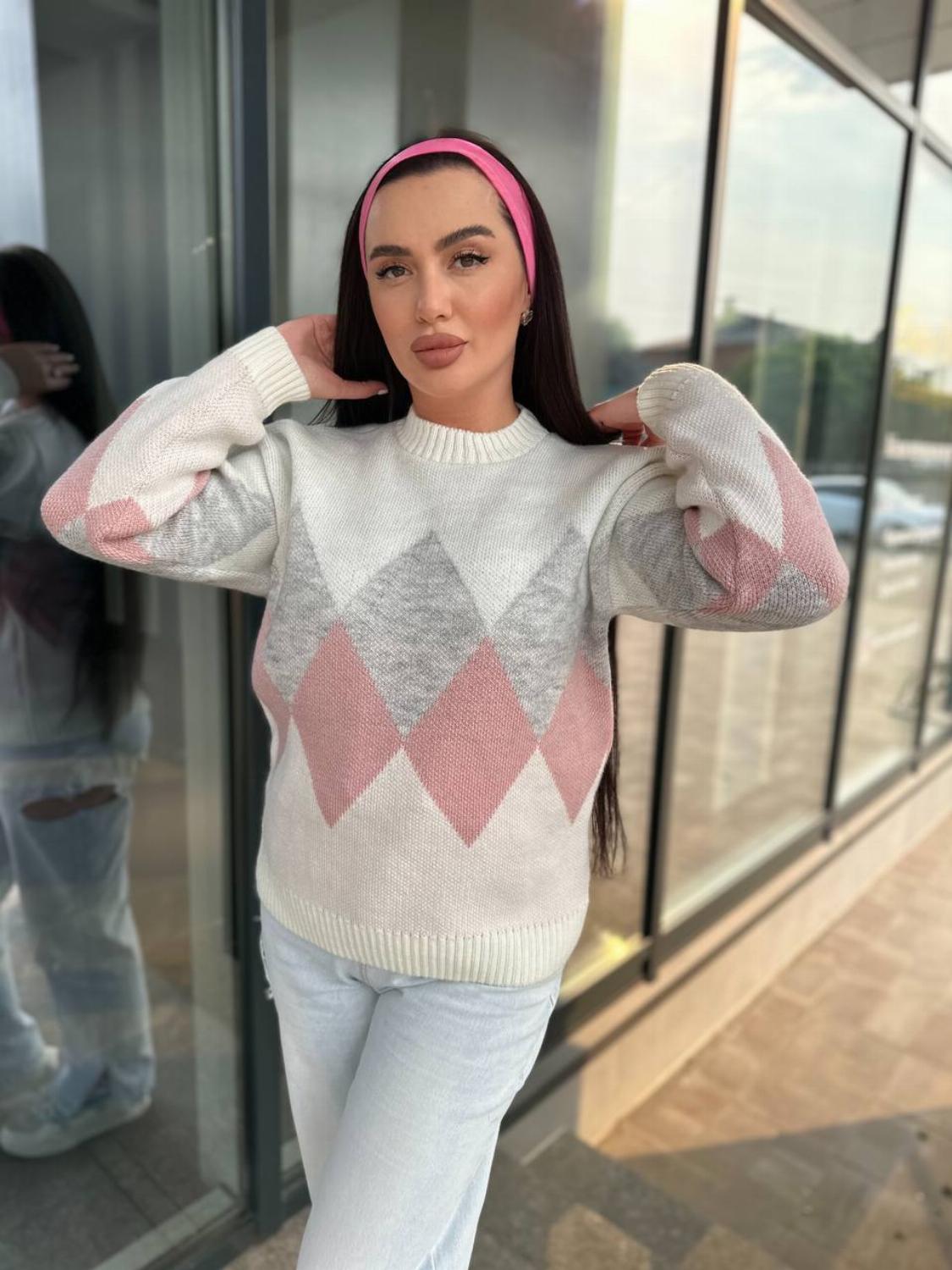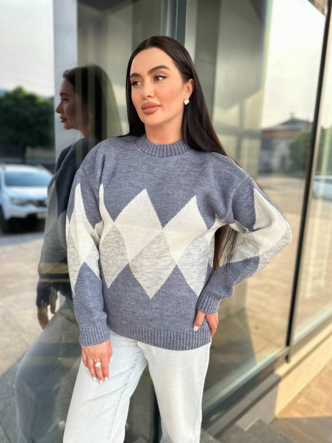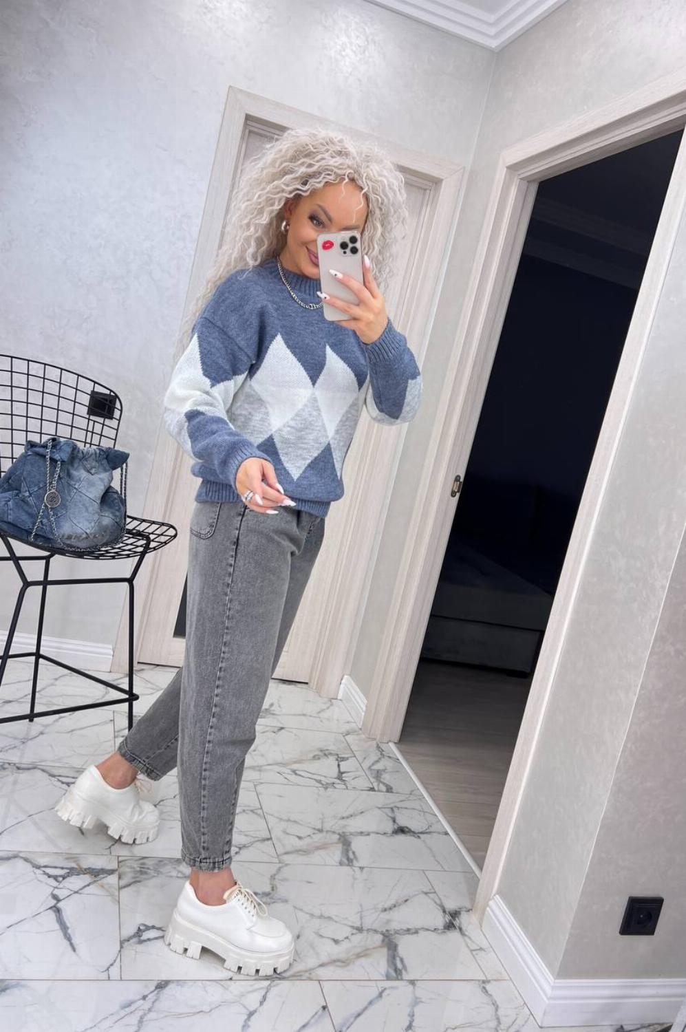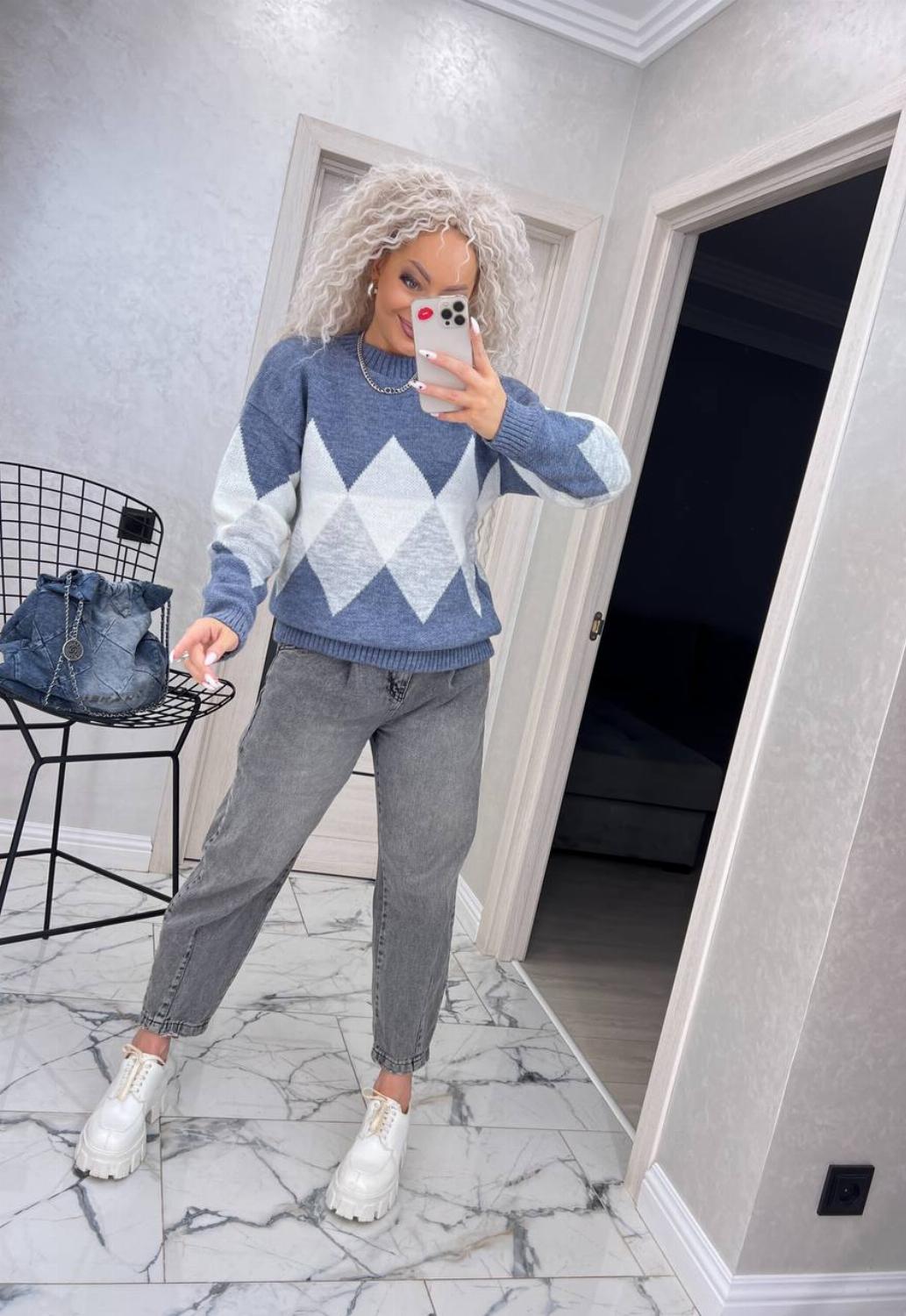 Ефектний молодіжний жіночий светр джемпер "Ромбик" - стильна новинка для наших модниць на кожен день! Модель шикарно виглядає на будь-якій фігурі, вільного крою, за рахунок чого відмінно приховує недоліки. Светр «Ромбик» відмінно поєднується з легінсами або джинсами. Додайте модну новинку в свій гардероб!