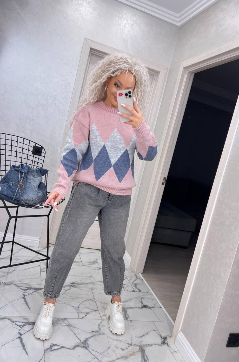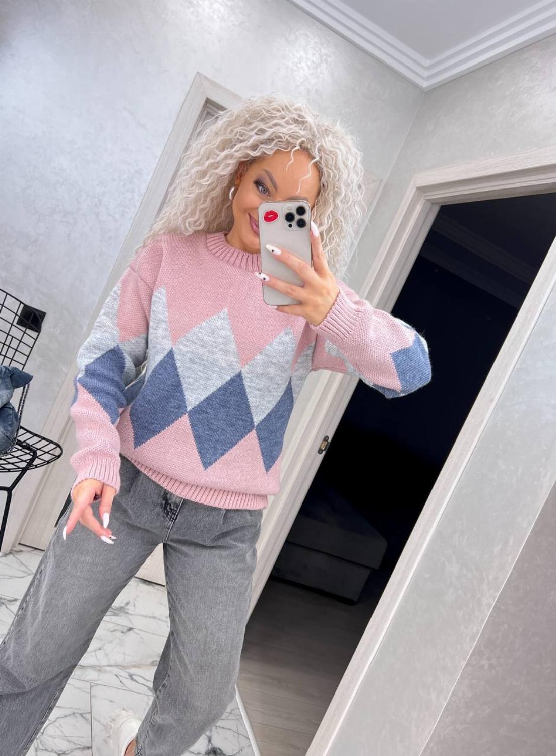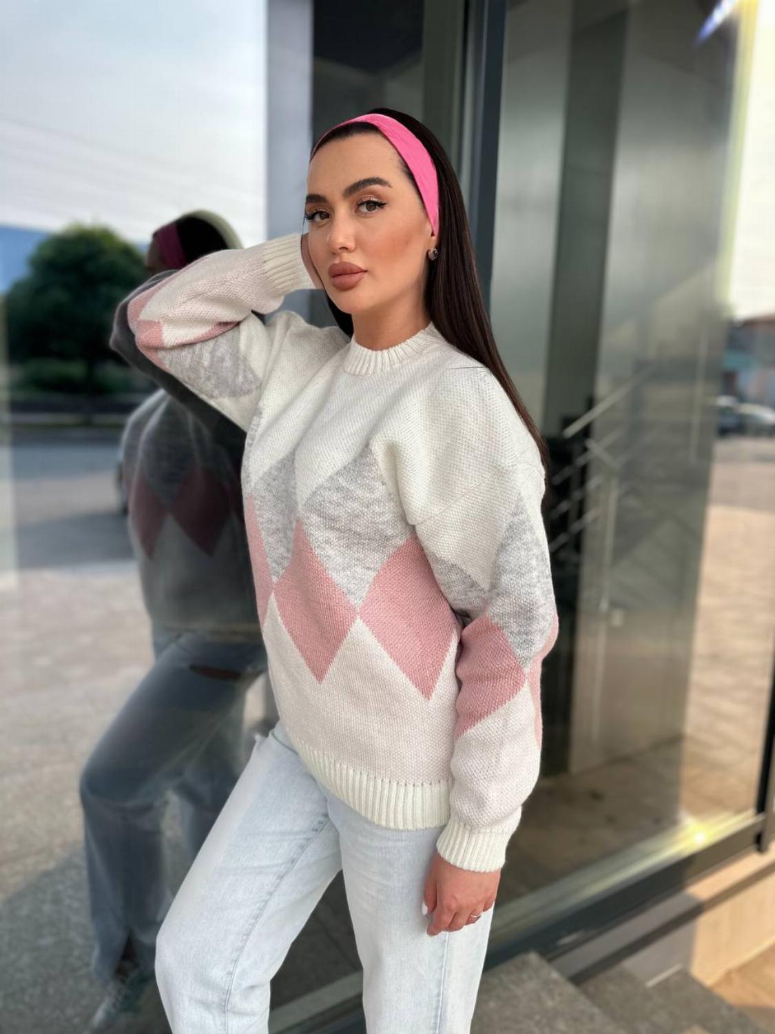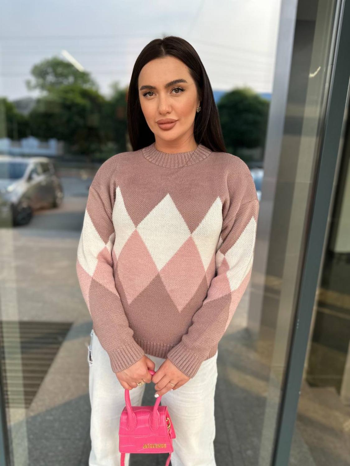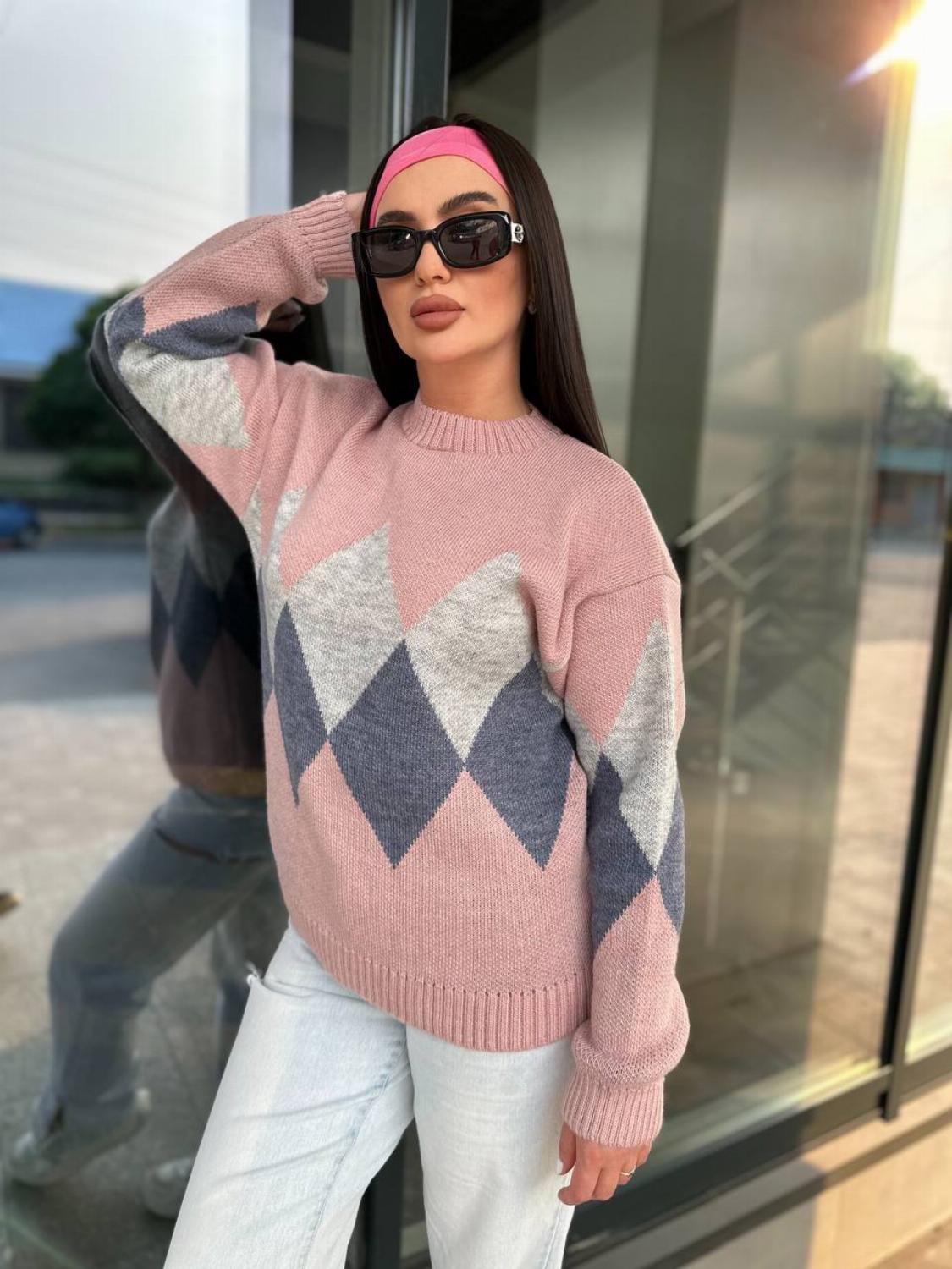 Ефектний молодіжний жіночий светр джемпер "Ромбик" - стильна новинка для наших модниць на кожен день! Модель шикарно виглядає на будь-якій фігурі, вільного крою, за рахунок чого відмінно приховує недоліки. Светр «Ромбик» відмінно поєднується з легінсами або джинсами. Додайте модну новинку в свій гардероб!