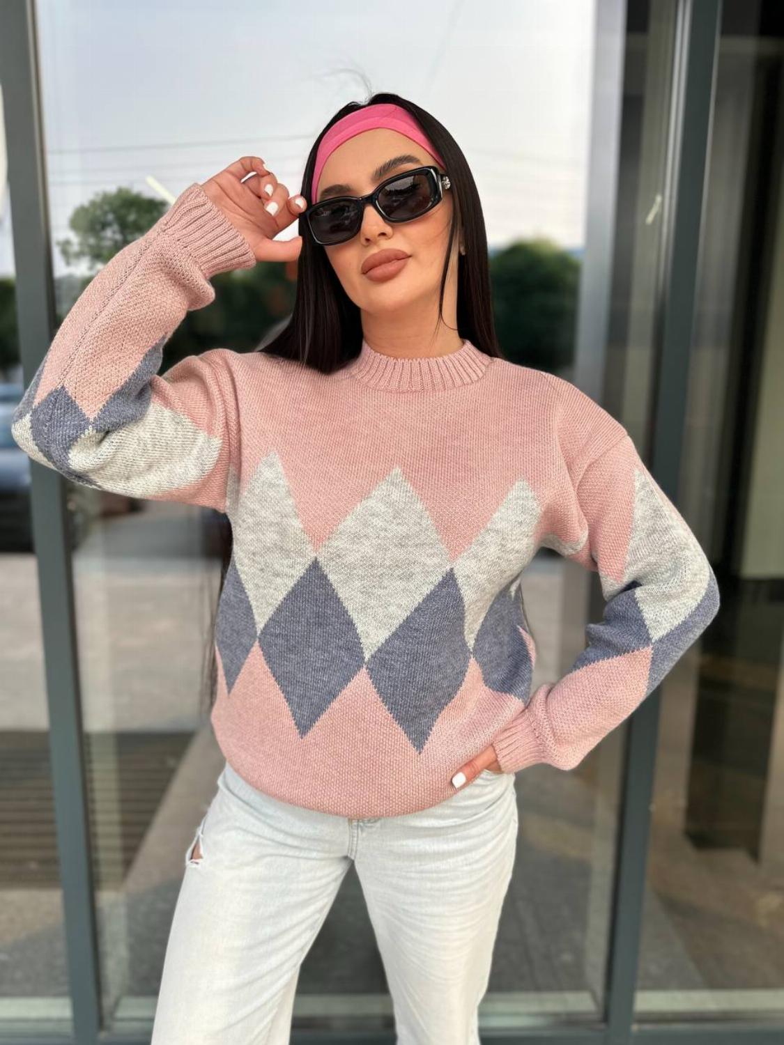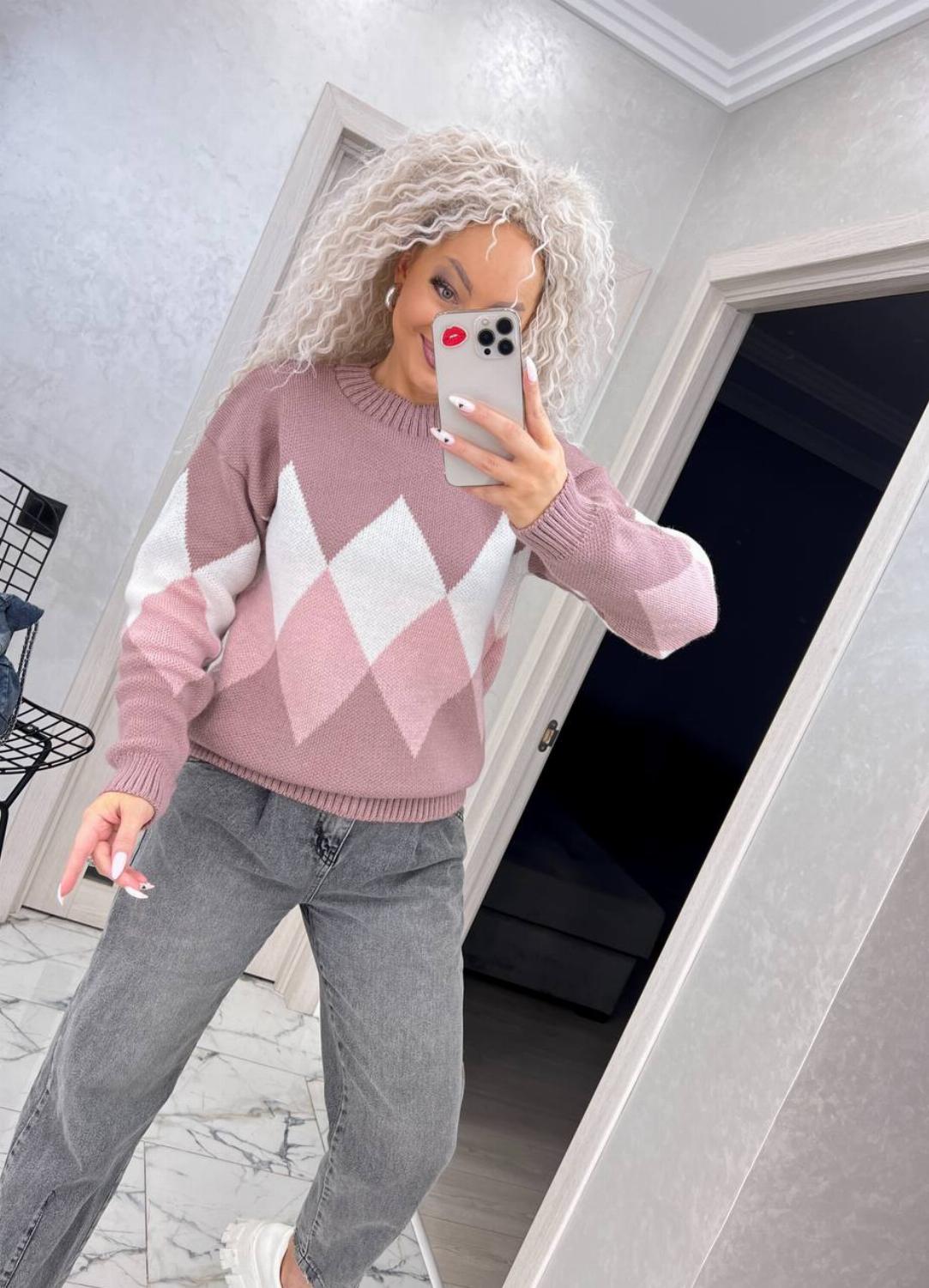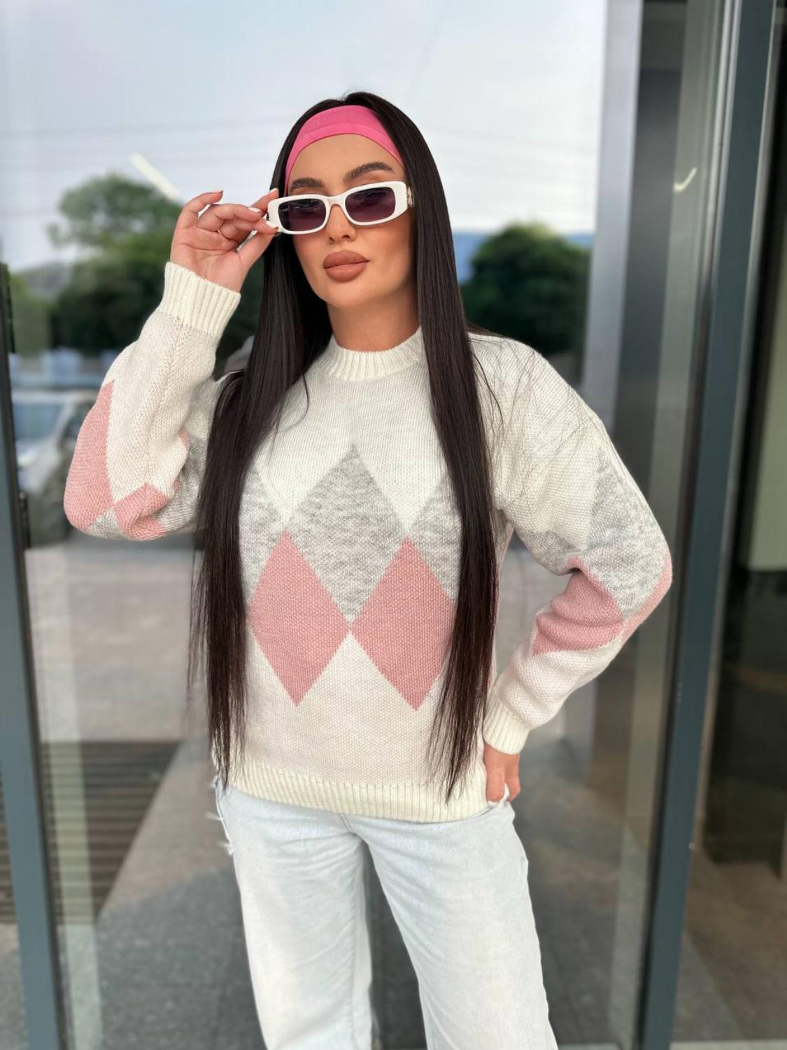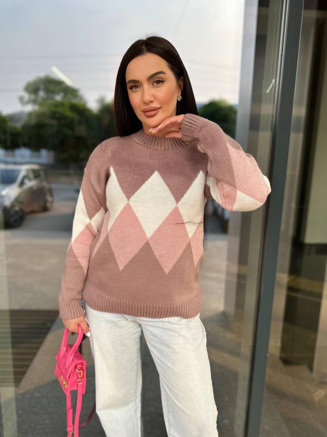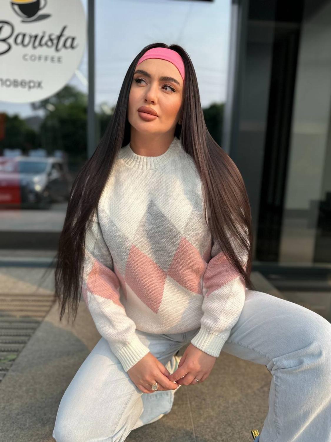 Ефектний молодіжний жіночий светр джемпер "Ромбик" - стильна новинка для наших модниць на кожен день! Модель шикарно виглядає на будь-якій фігурі, вільного крою, за рахунок чого відмінно приховує недоліки. Светр «Ромбик» відмінно поєднується з легінсами або джинсами. Додайте модну новинку в свій гардероб!