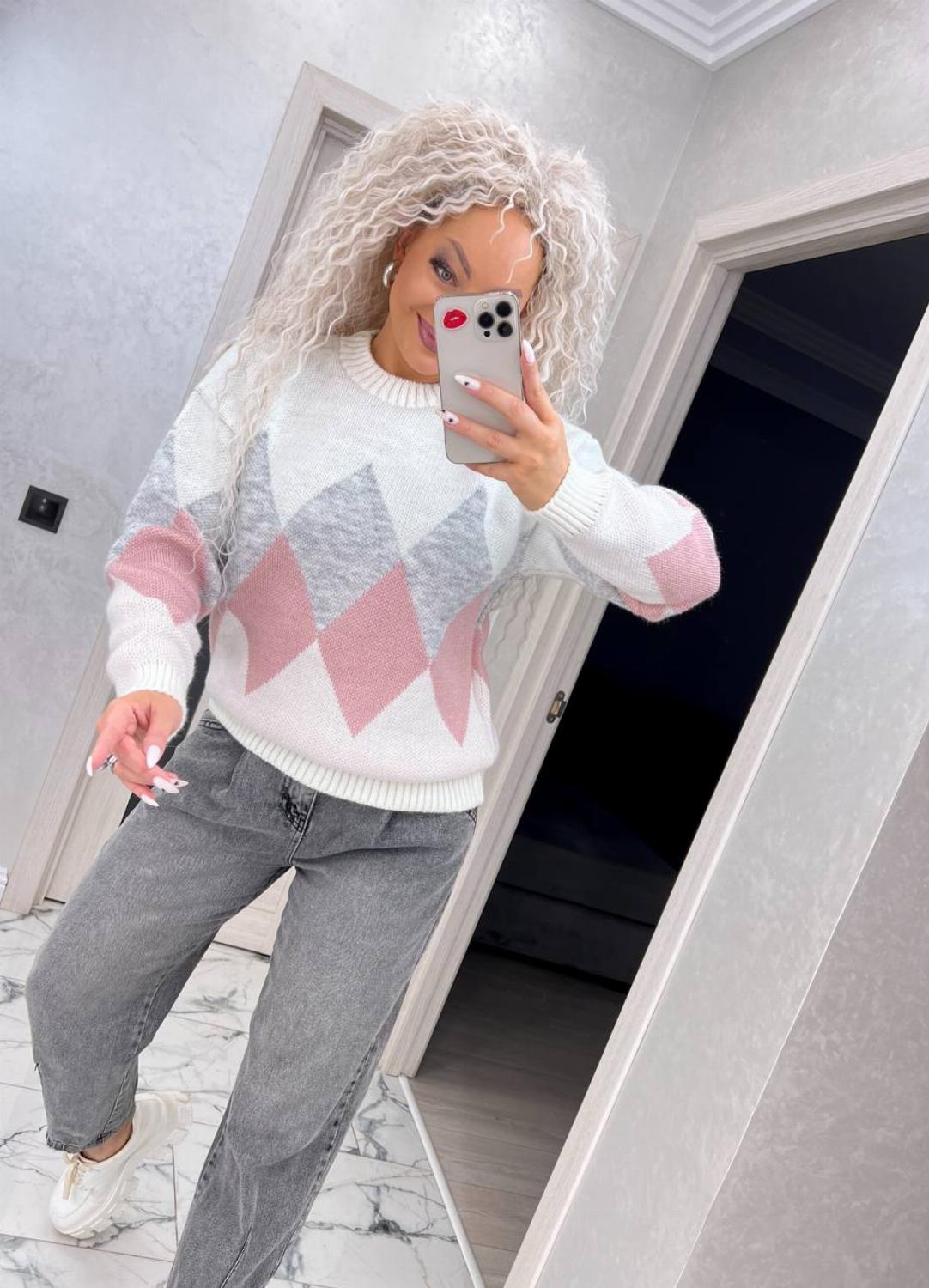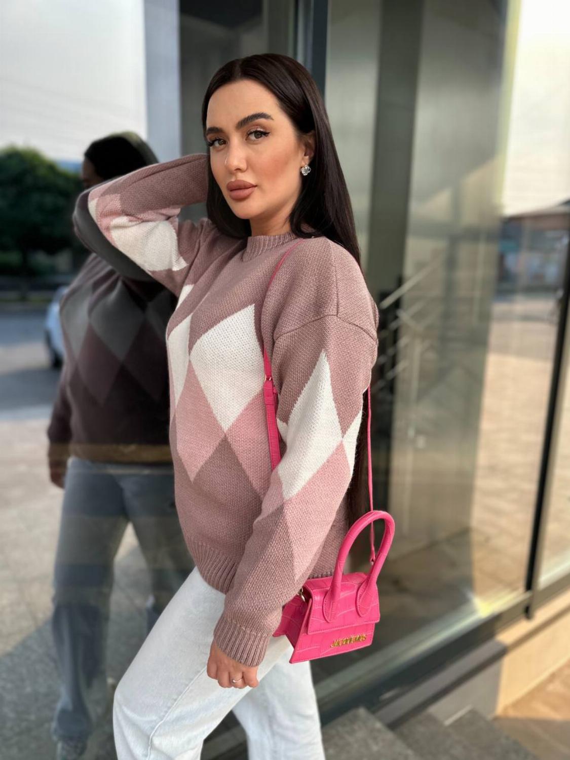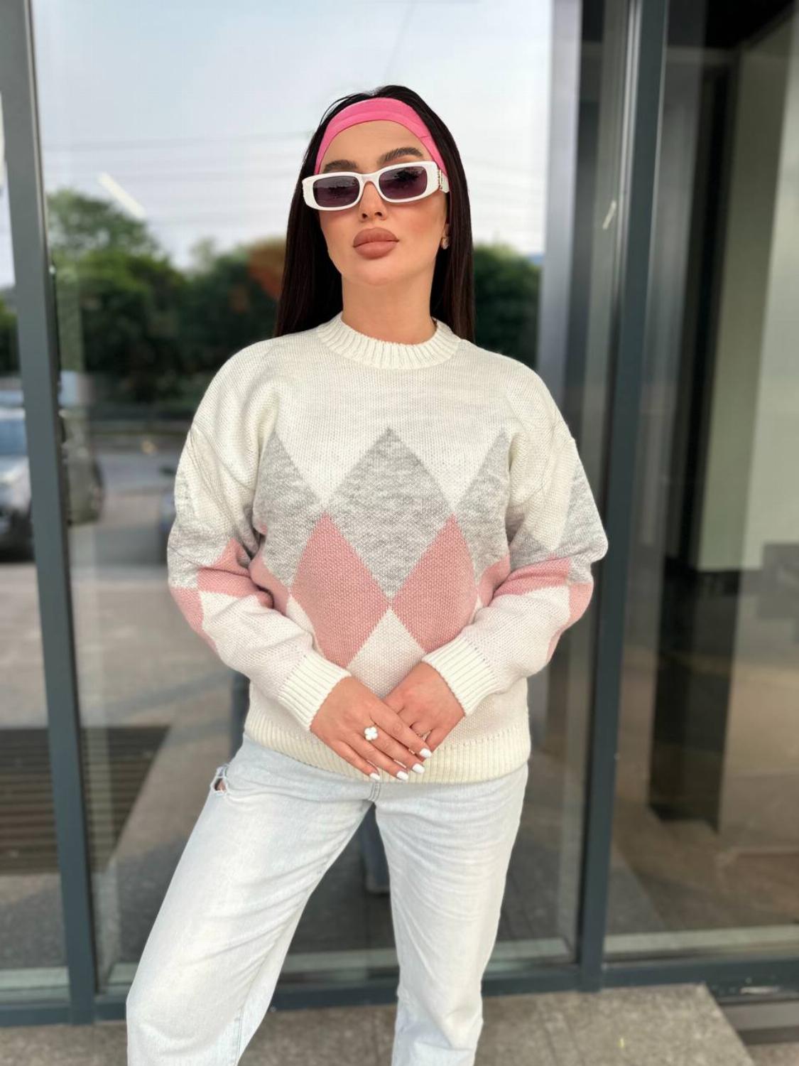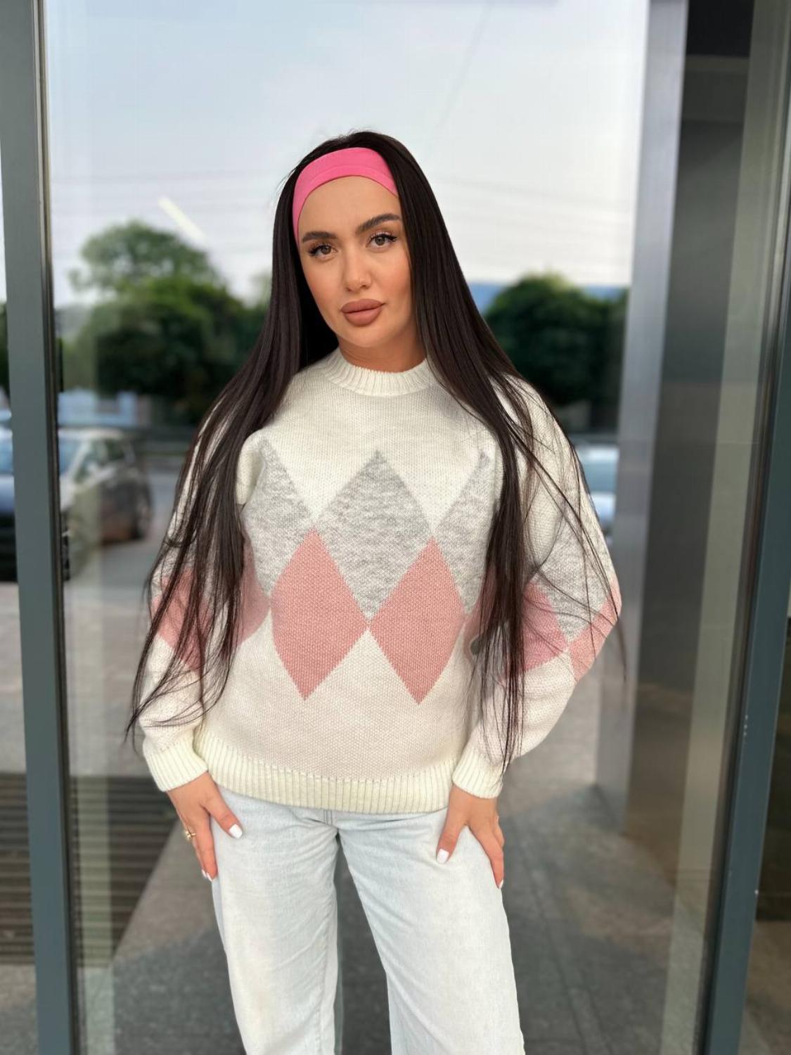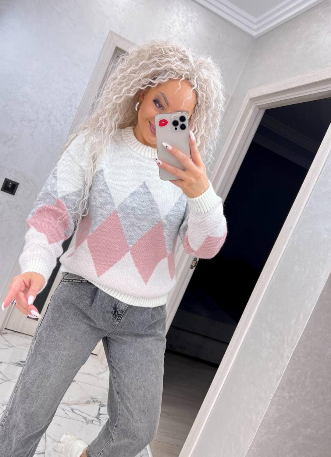 Ефектний молодіжний жіночий светр джемпер "Ромбик" - стильна новинка для наших модниць на кожен день! Модель шикарно виглядає на будь-якій фігурі, вільного крою, за рахунок чого відмінно приховує недоліки. Светр «Ромбик» відмінно поєднується з легінсами або джинсами. Додайте модну новинку в свій гардероб!