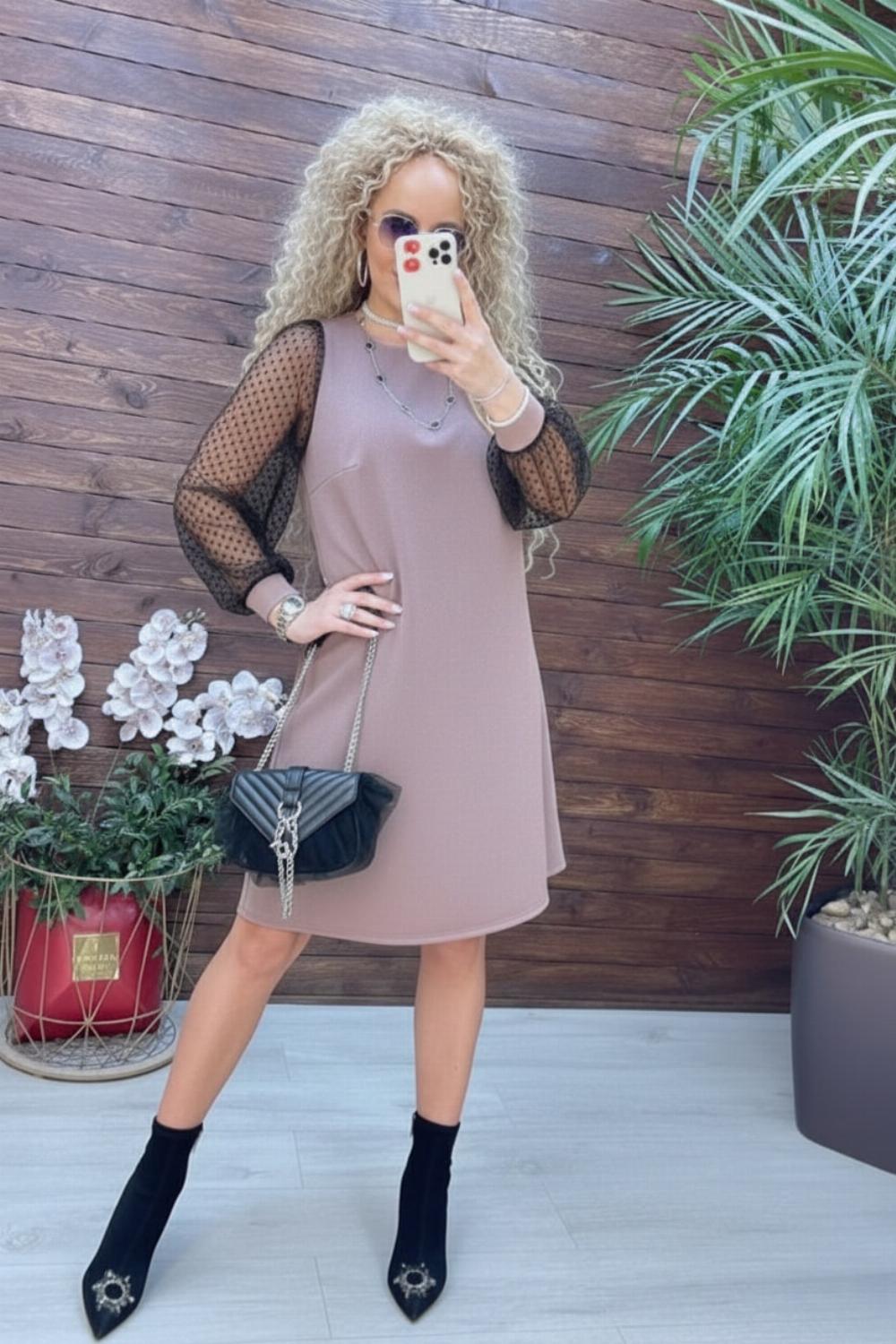 Чи готові ви приміряти на себе цю красу? Елегантна новинка для будь-якого типу фігури. Виконана з французького трикотажу рубчик, рукава - сітка з візерунком. Ідеальне рішення для свята. Така сукня буде доречно виглядати на святковому корпоративі, в новорічну ніч або просто на романтичних побаченнях.