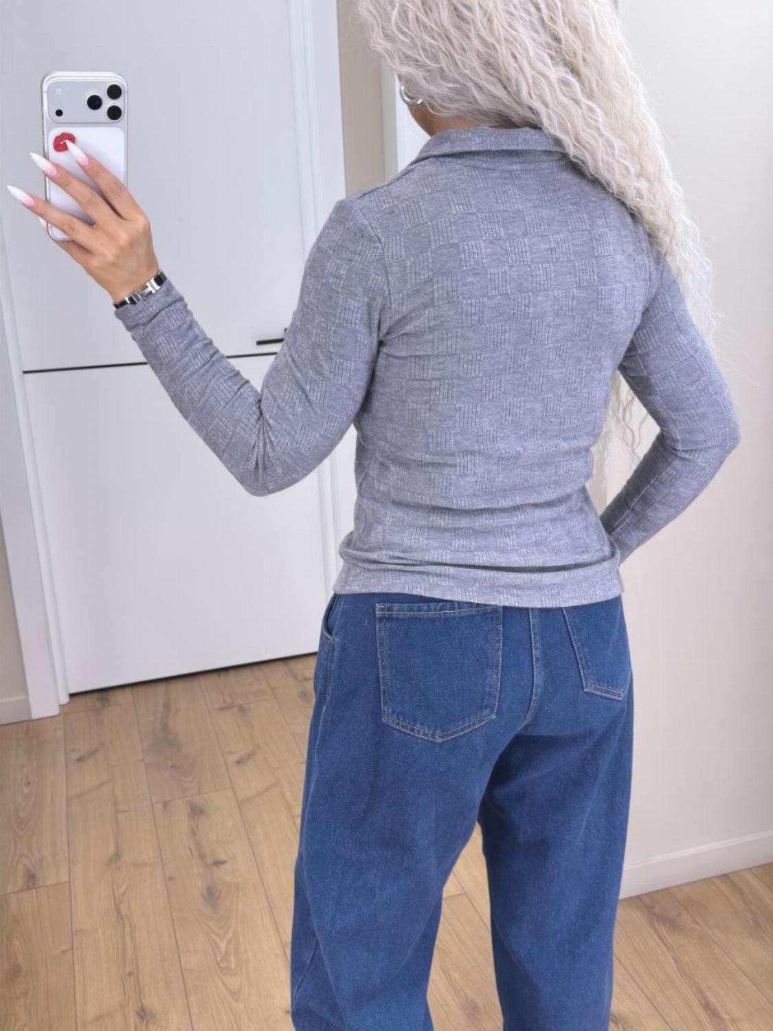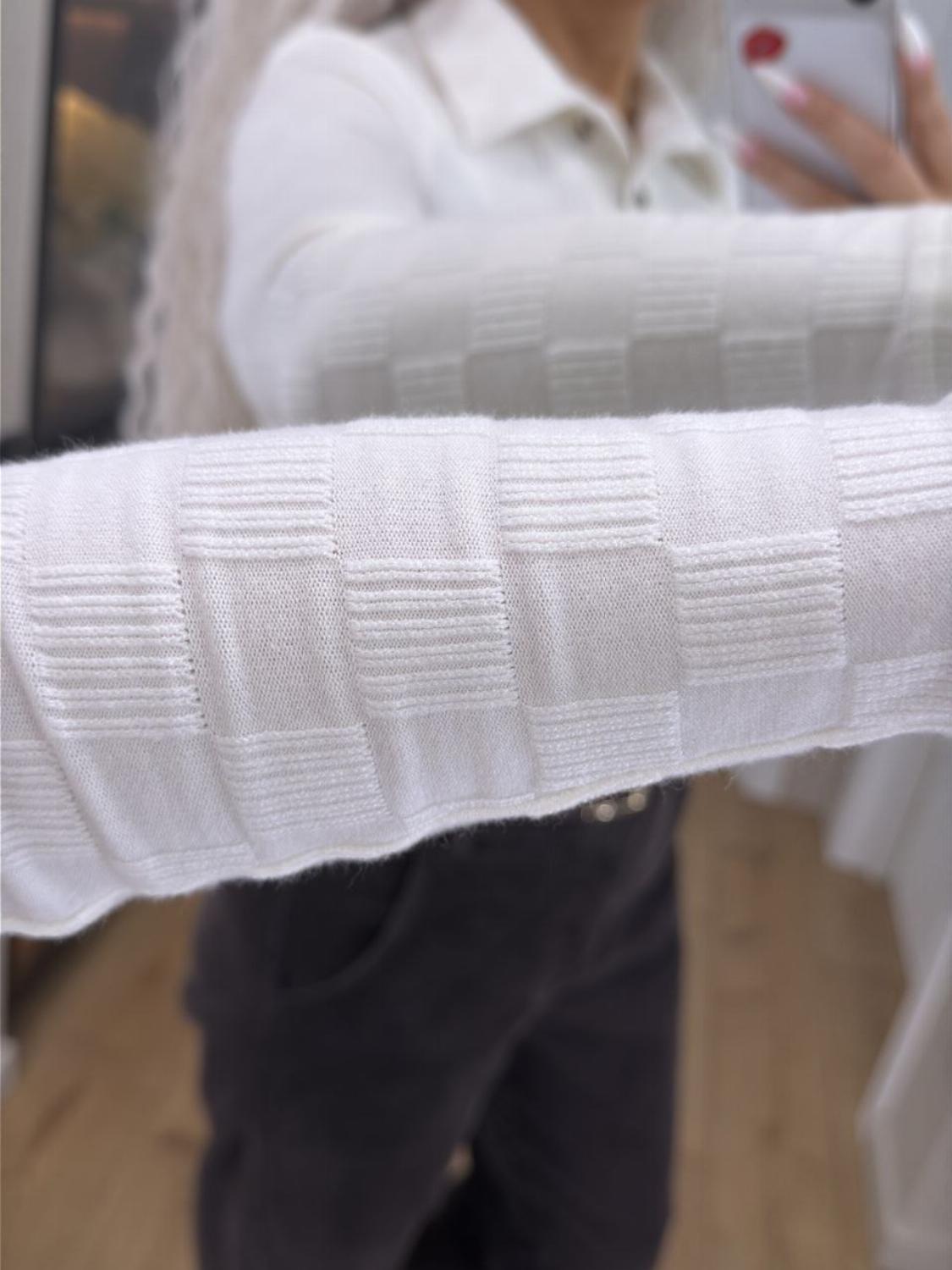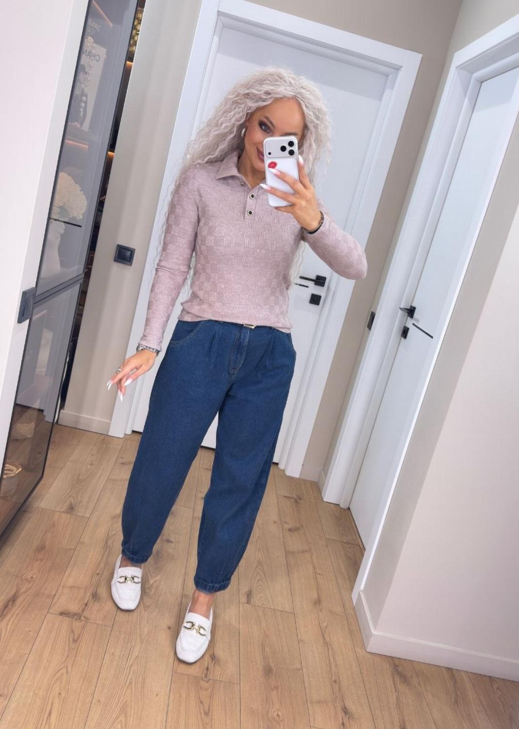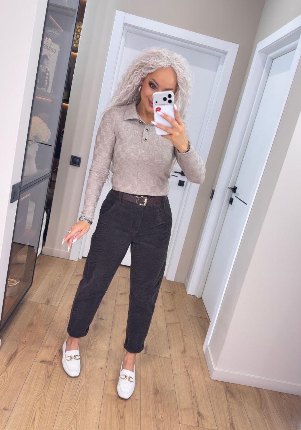Кофта поло на ґудзиках — база, в якій затишно. Виготовлена з трикотажу ангори щільної структури: матеріал м’який, приємний до тіла, добре тягнеться і при цьому не деформується. Це той варіант, що робить образ простим, але продуманим.