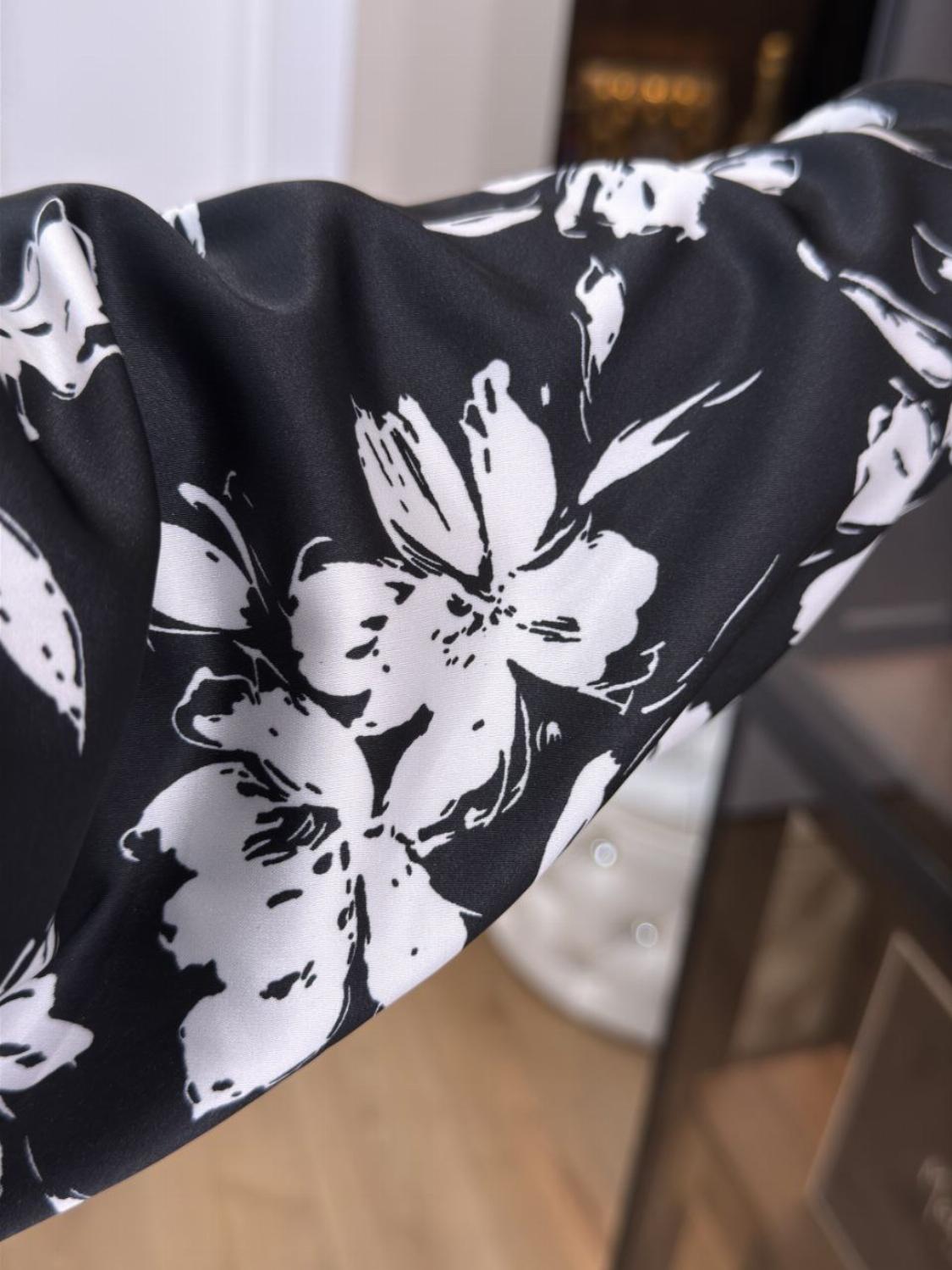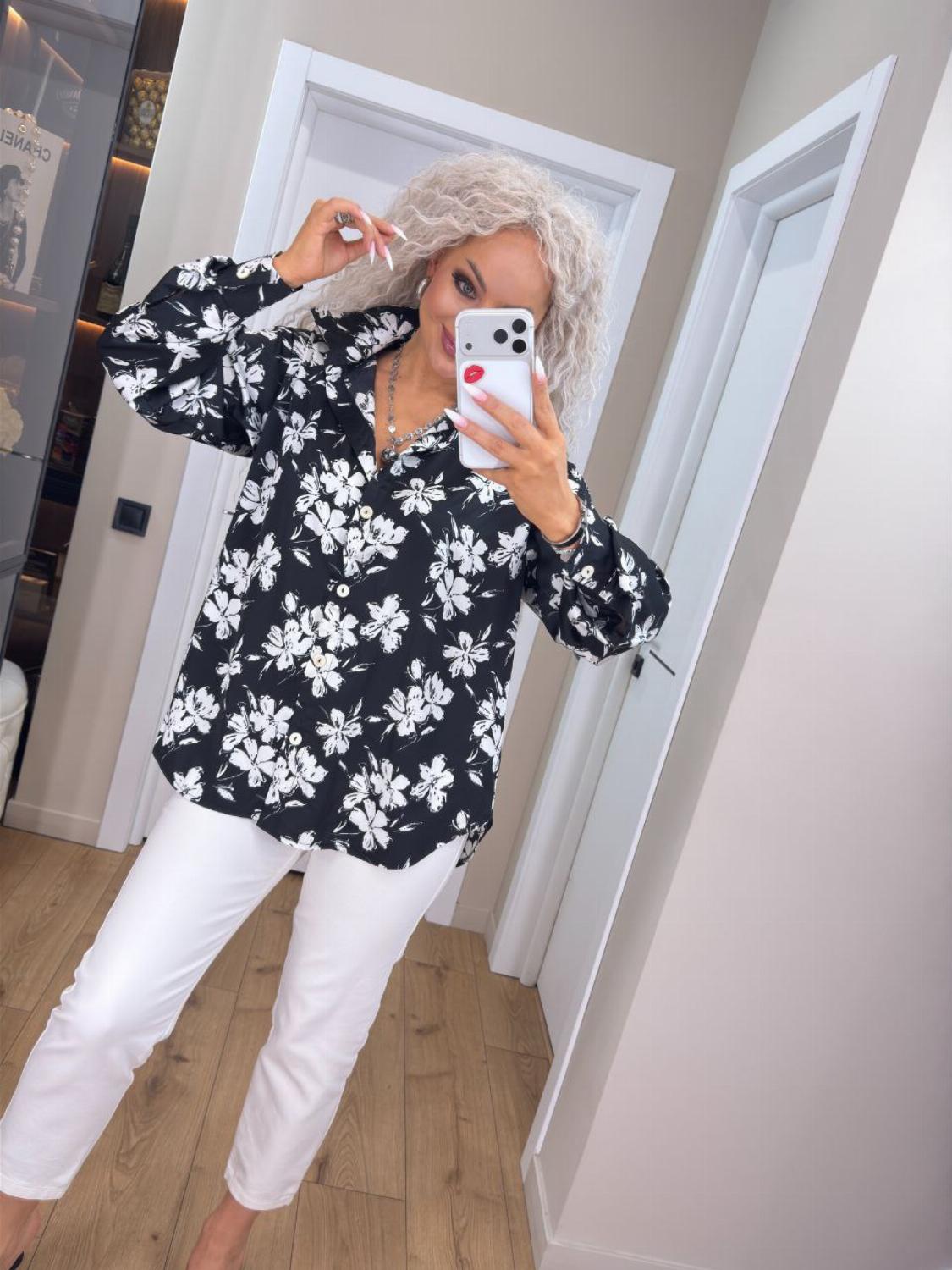 Відчуйте легкість та впевненість у нашій новій блузі з квітковим принтом. Вільний крій дарує абсолютний комфорт, а вишуканий комір та рукави додають нотку французького шику до вашого повсякденного гардероба.