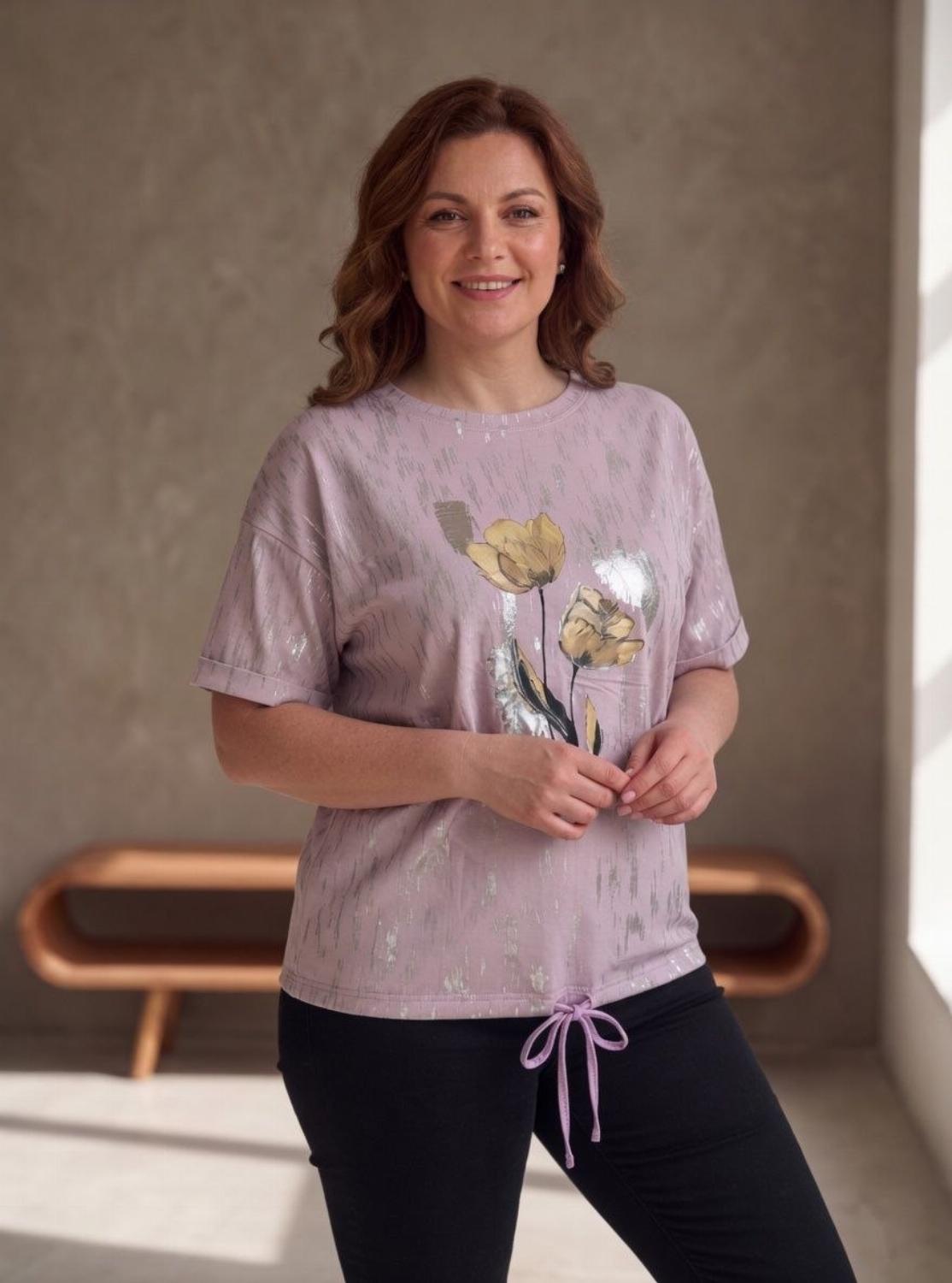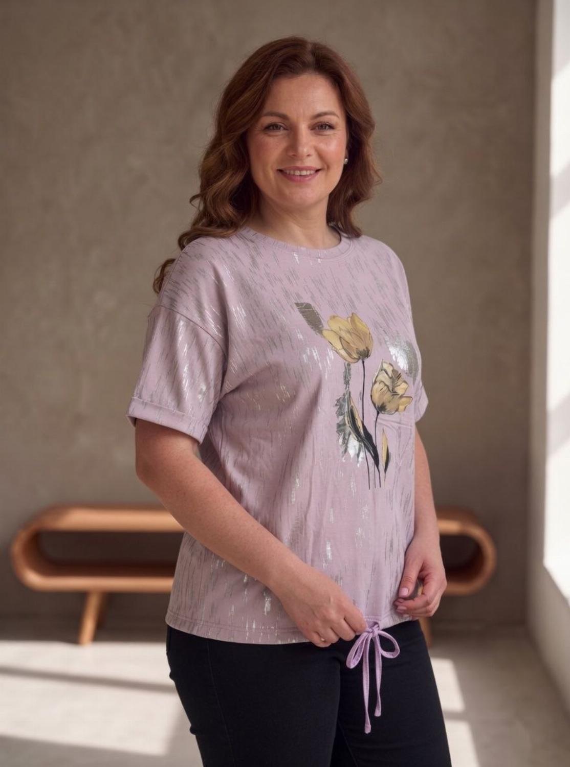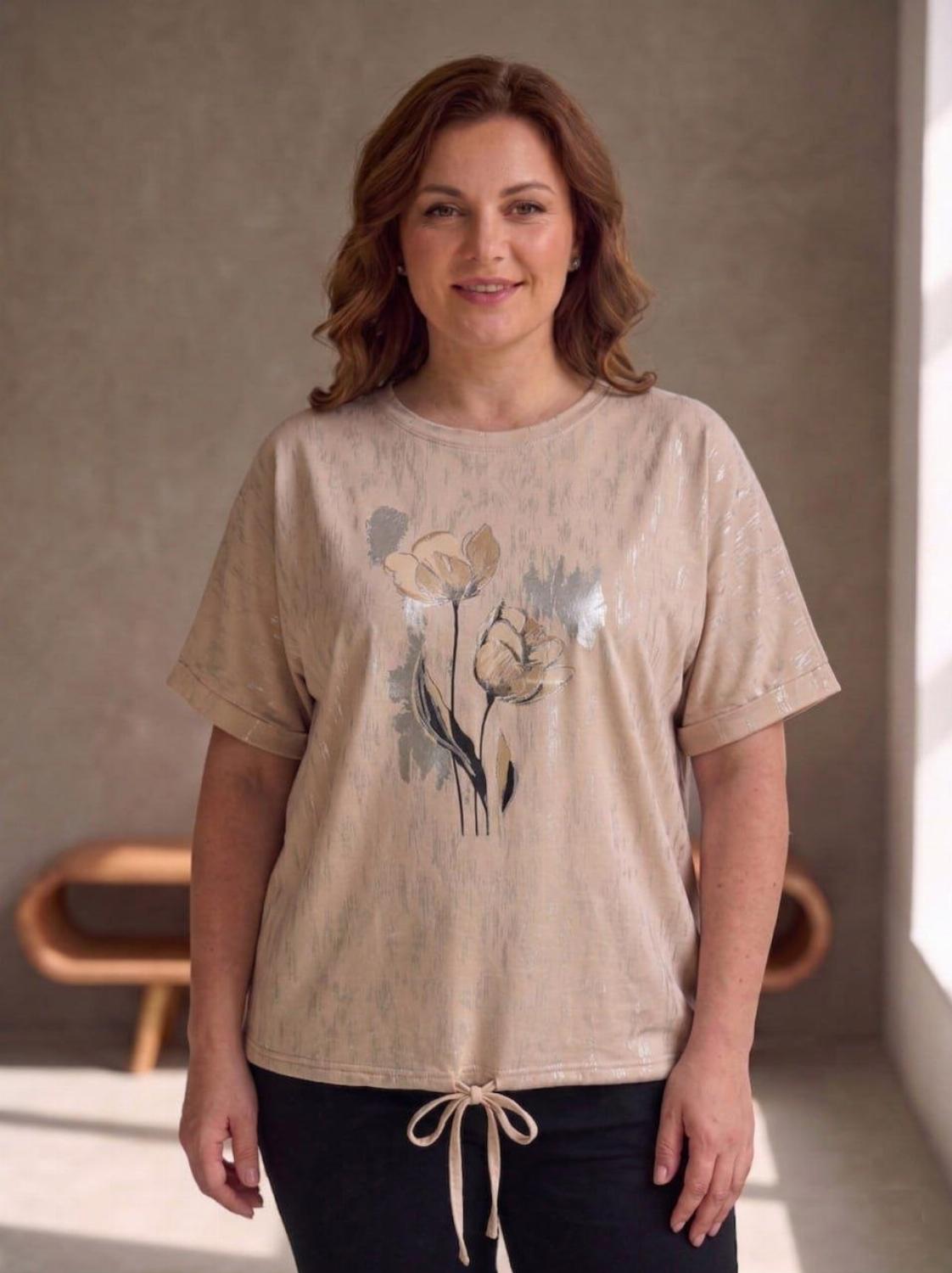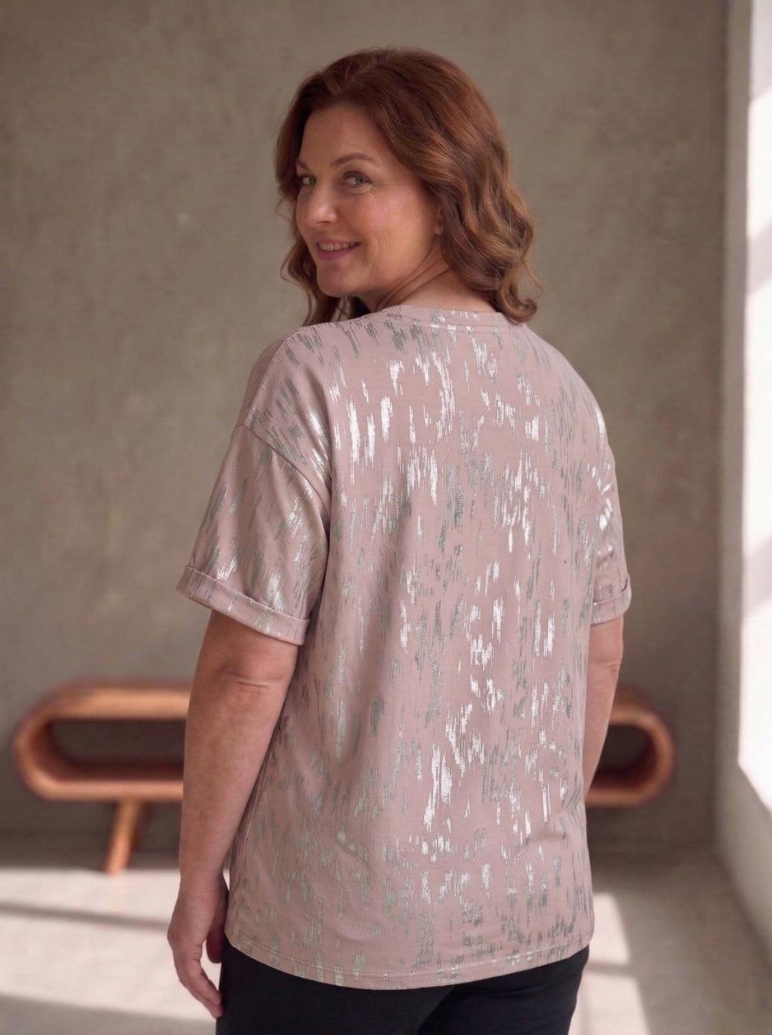 Додайте ніжності та благородного блиску до свого повсякденного гардероба. Наша нова футболка — це ідеальний баланс між розслабленим стилем та витонченістю.
