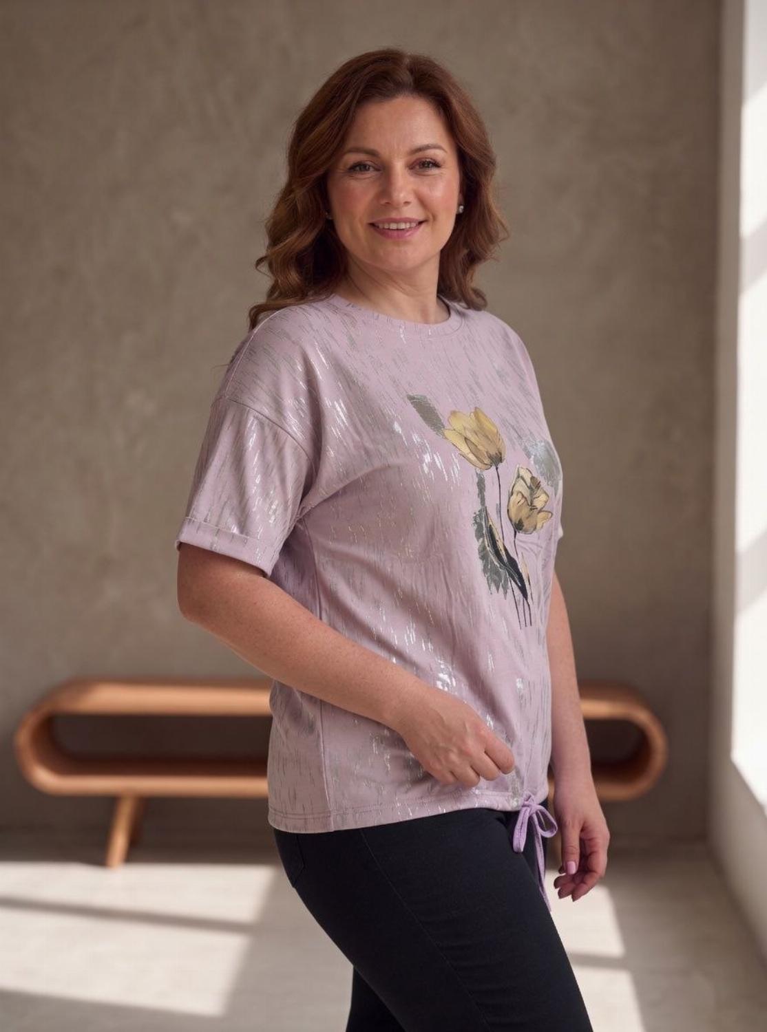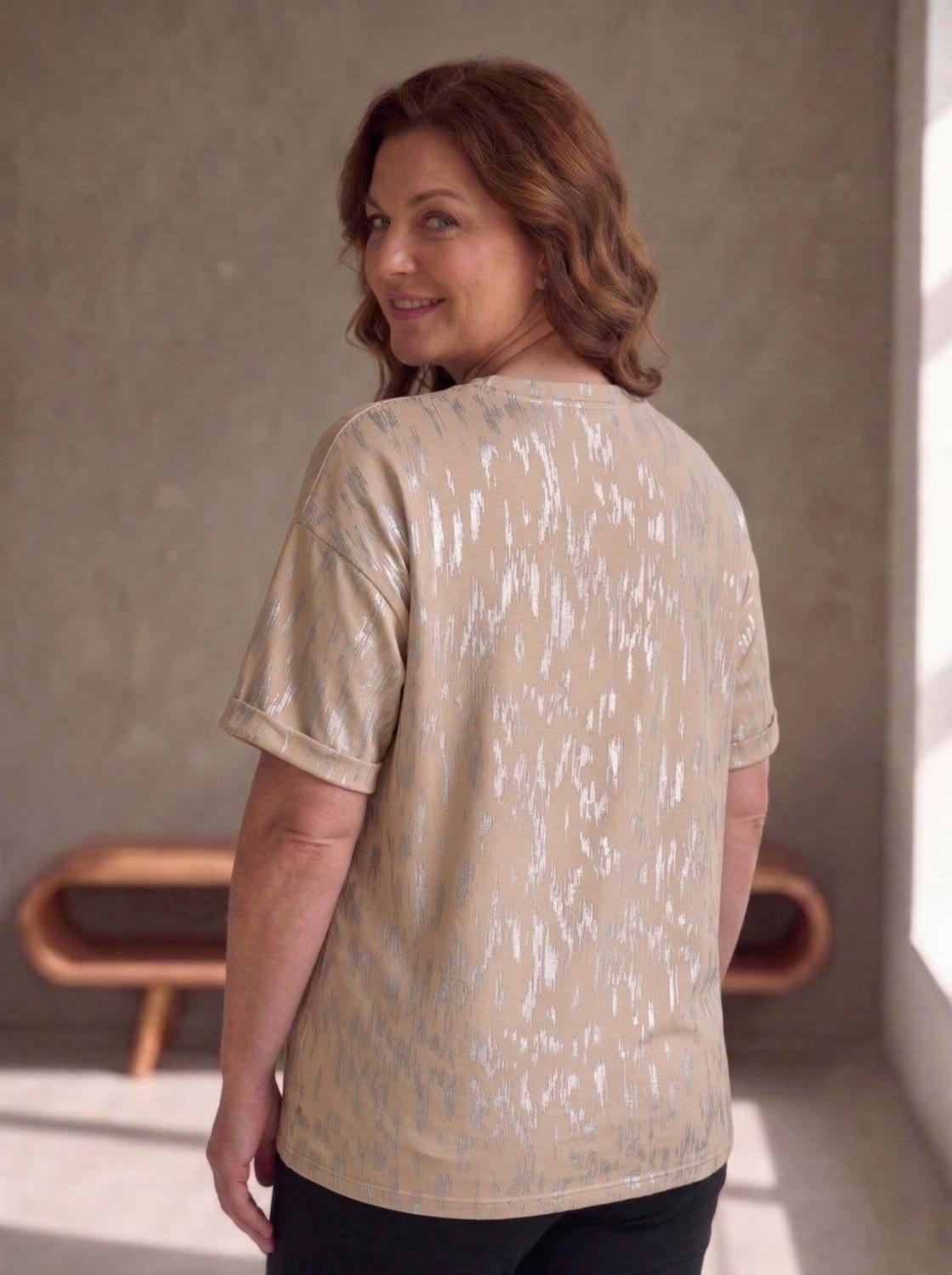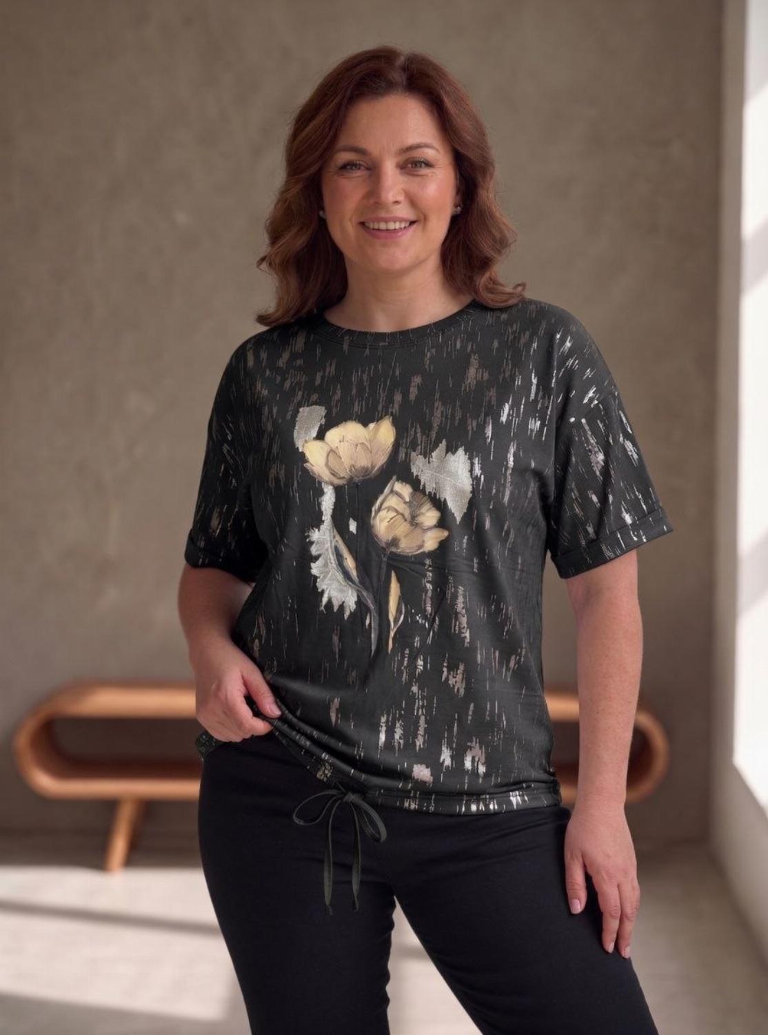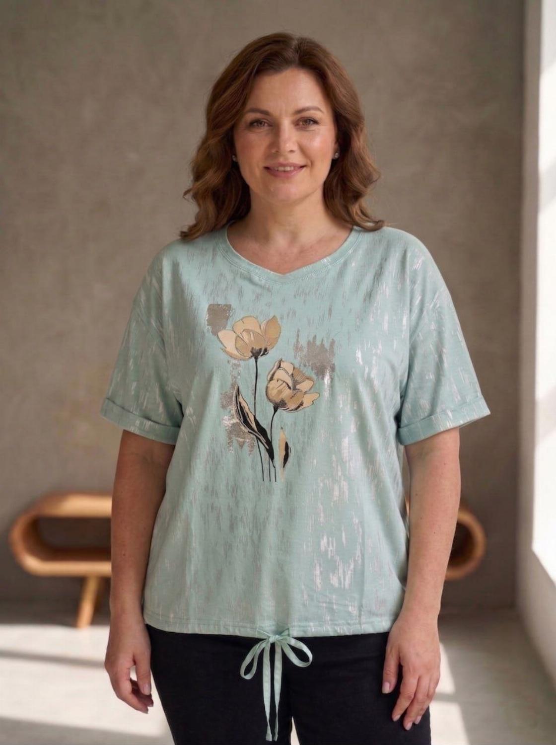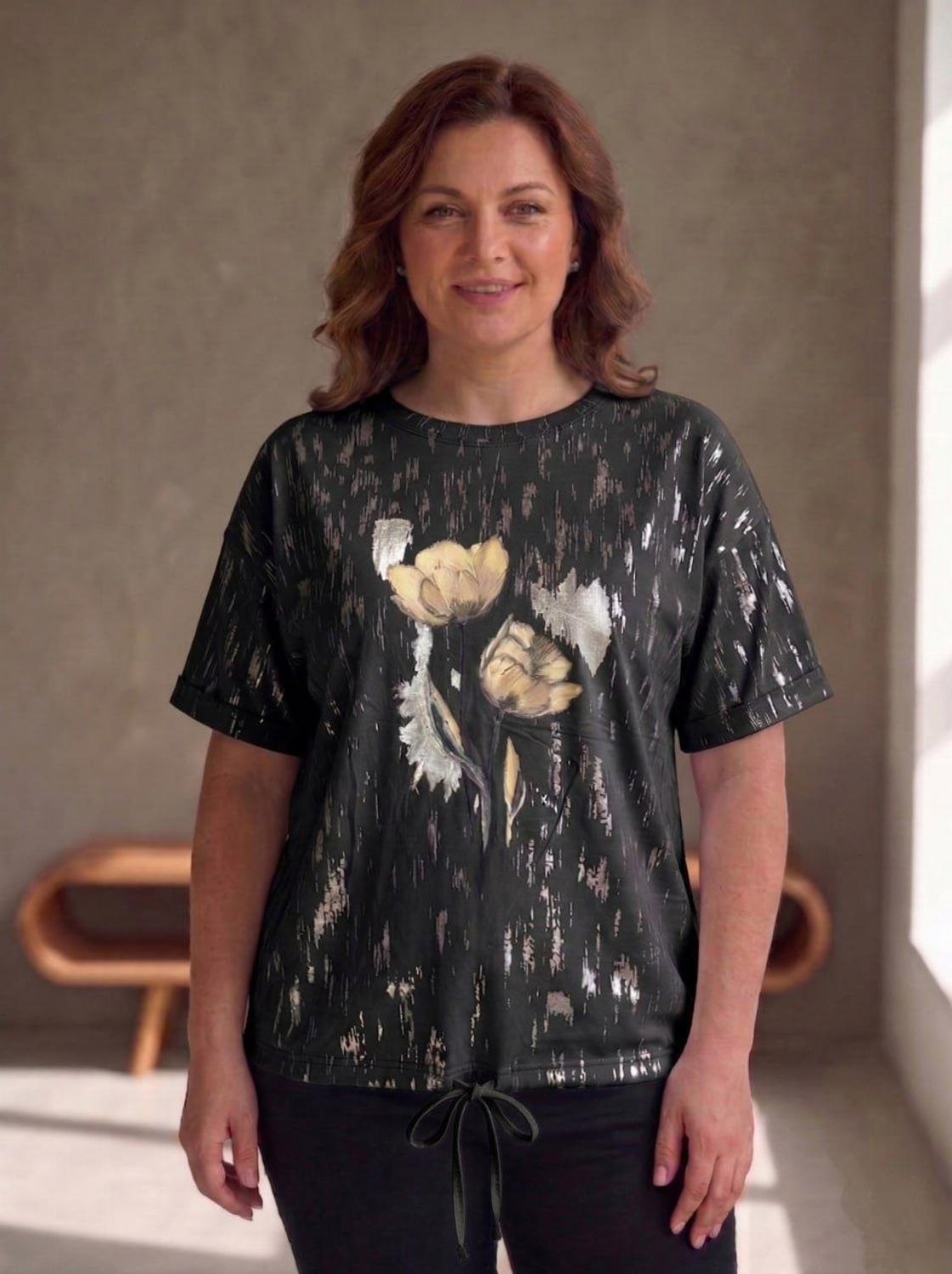 Додайте ніжності та благородного блиску до свого повсякденного гардероба. Наша нова футболка — це ідеальний баланс між розслабленим стилем та витонченістю.
