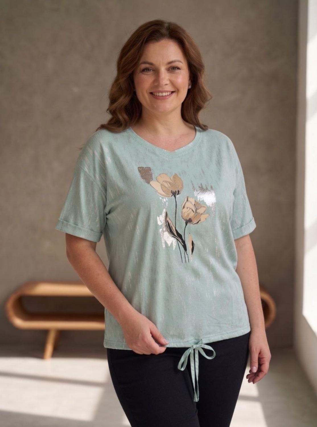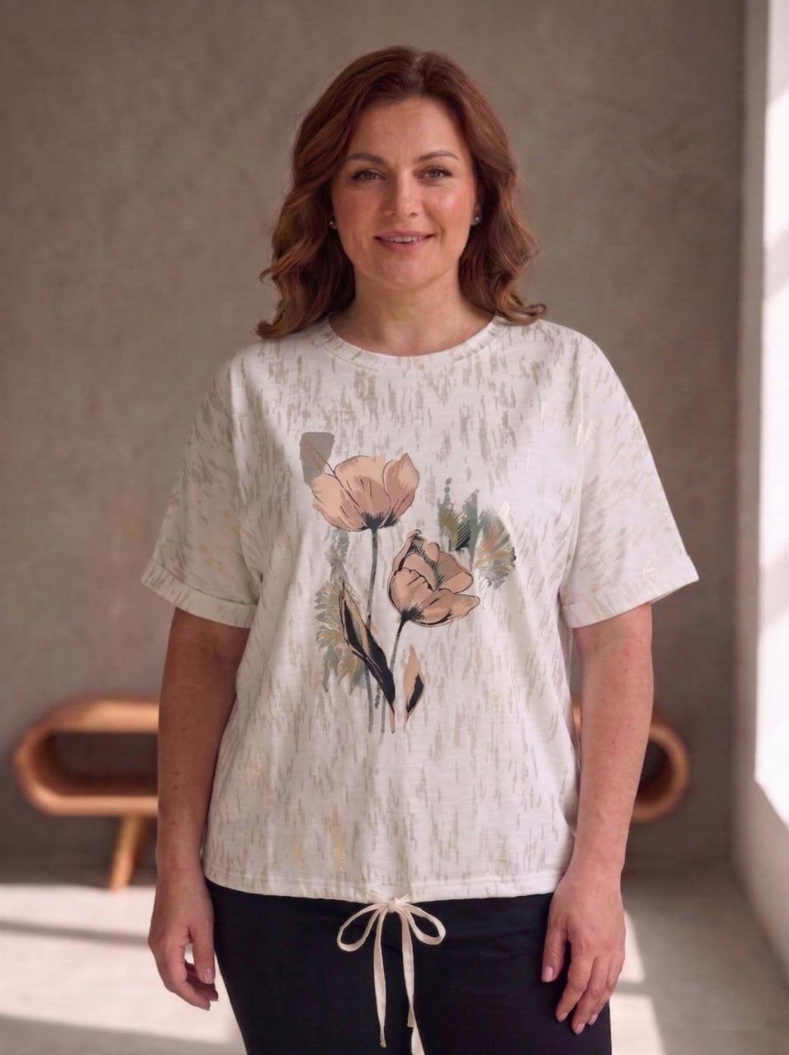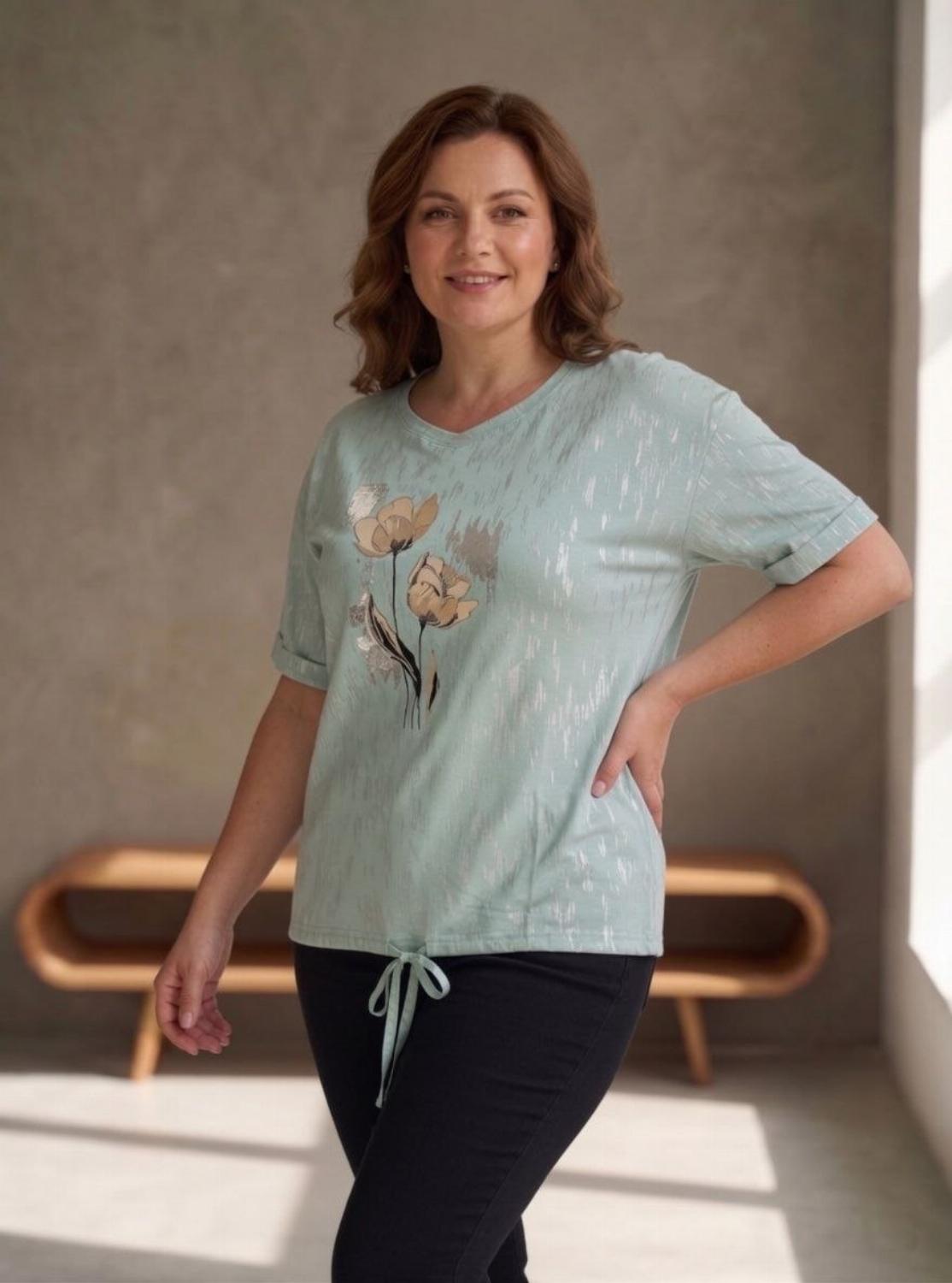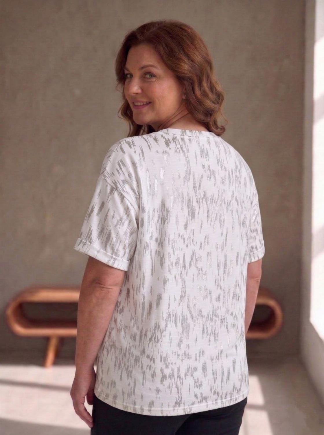 Додайте ніжності та благородного блиску до свого повсякденного гардероба. Наша нова футболка — це ідеальний баланс між розслабленим стилем та витонченістю.