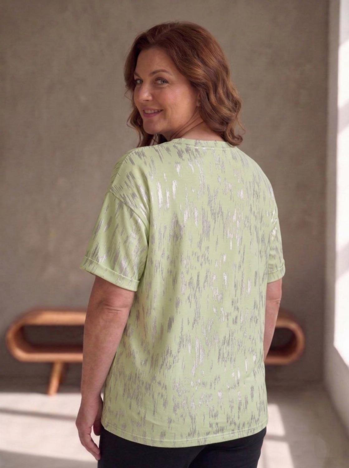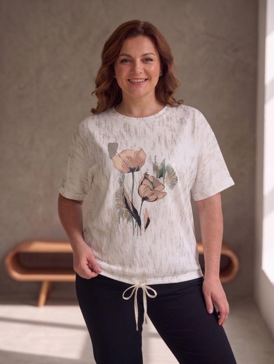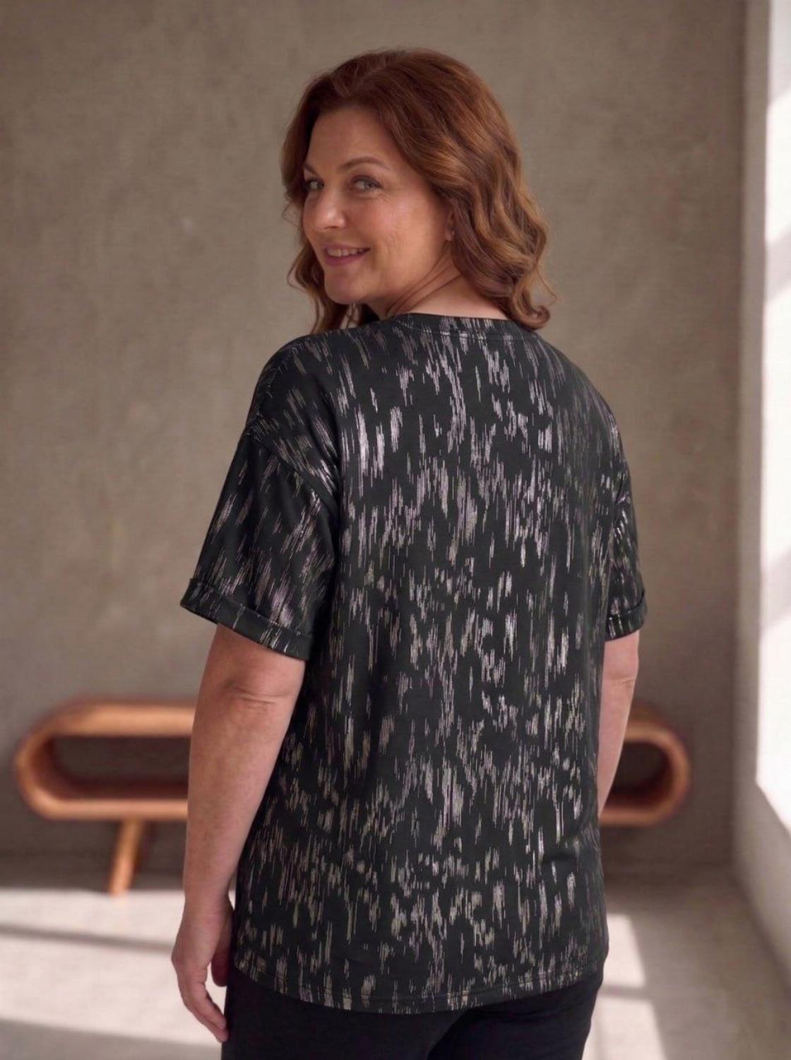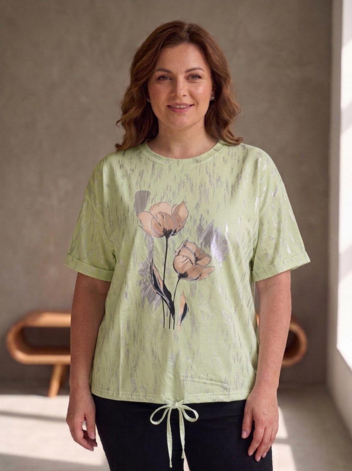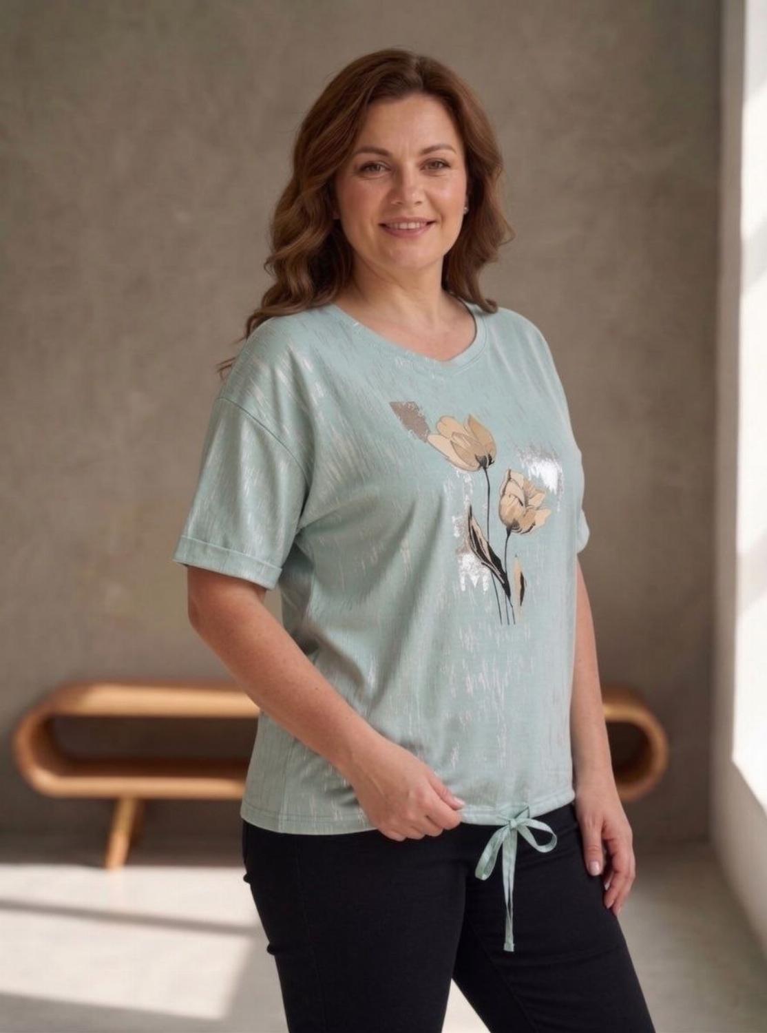 Додайте ніжності та благородного блиску до свого повсякденного гардероба. Наша нова футболка — це ідеальний баланс між розслабленим стилем та витонченістю.