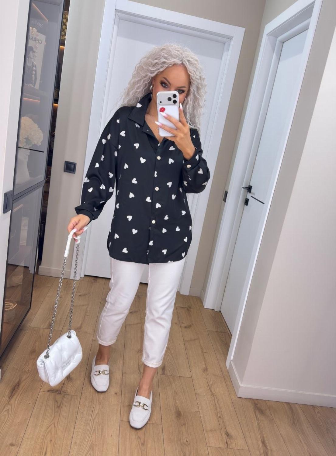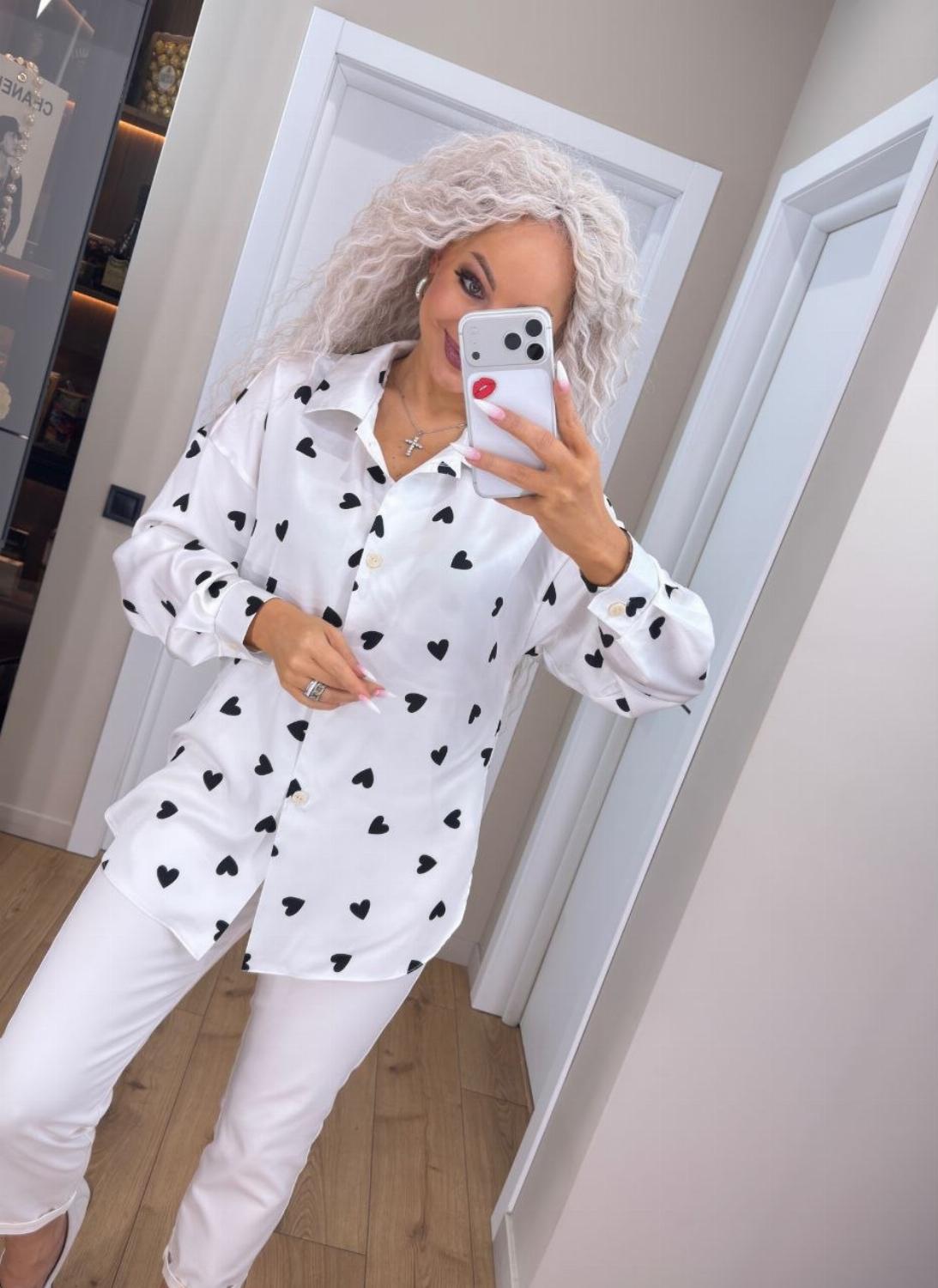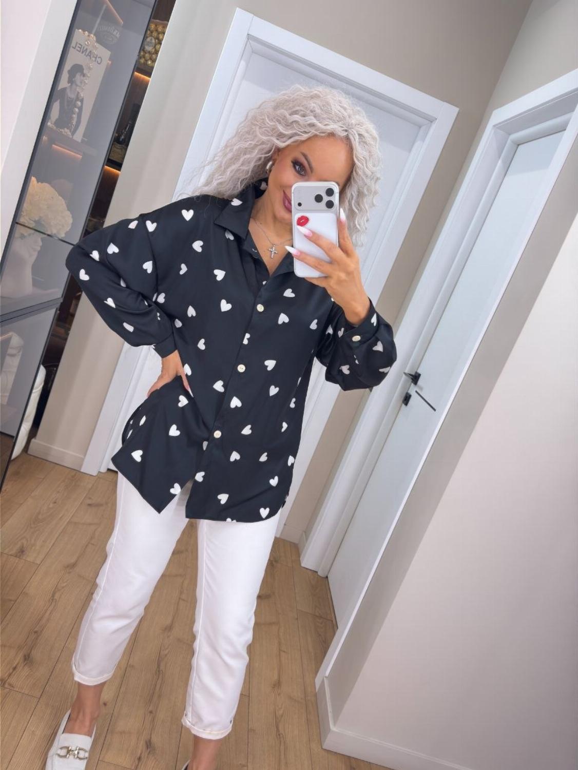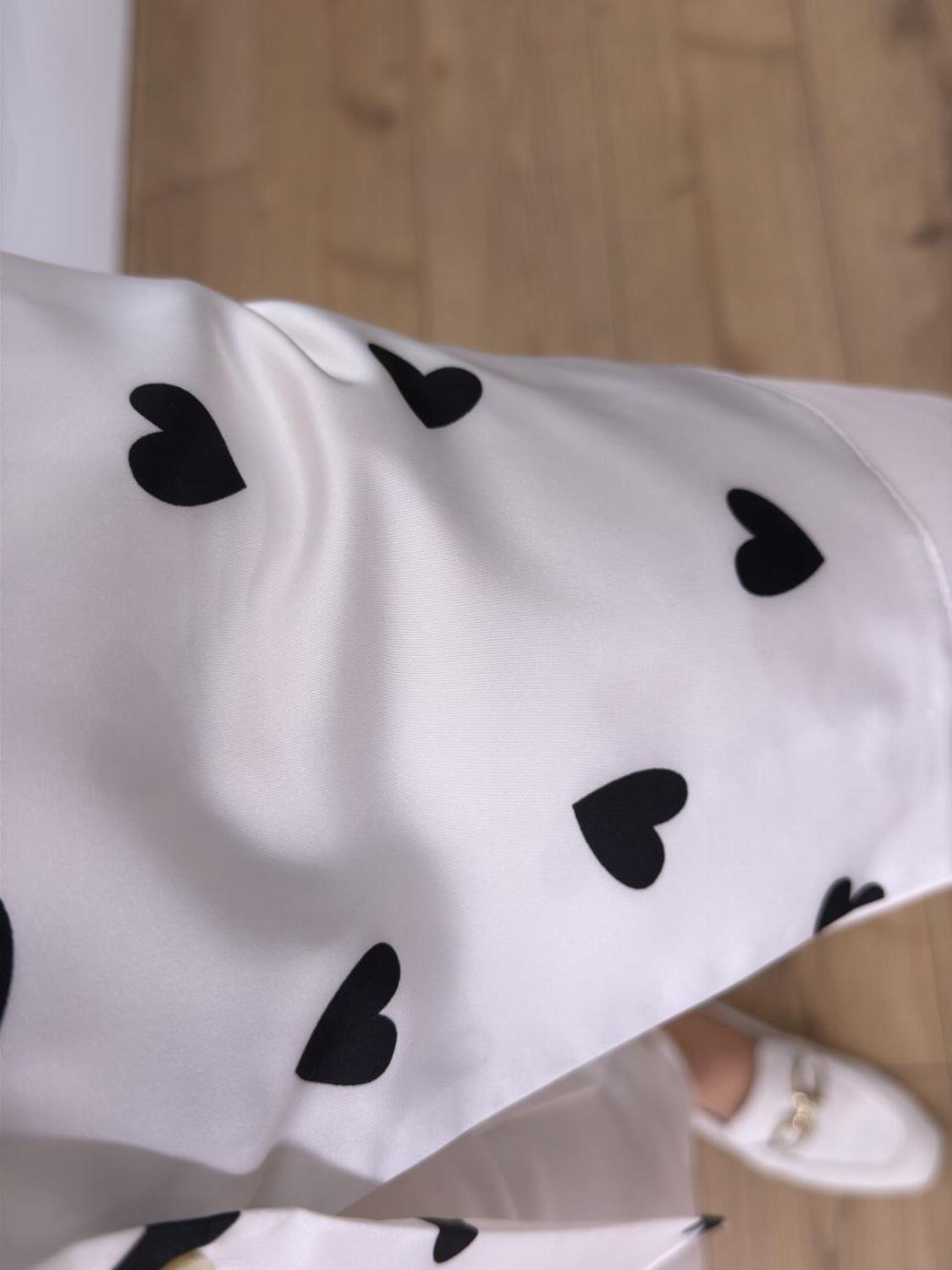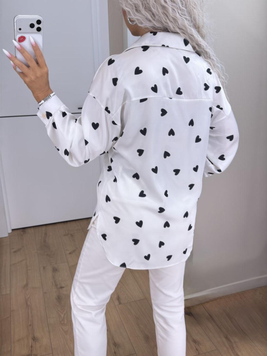Дизайн: Грайливий принт у сердечко додає образу романтичності, а класичний крой дозволяє поєднувати блузу як з джинсами, так і з елегантними брюками.