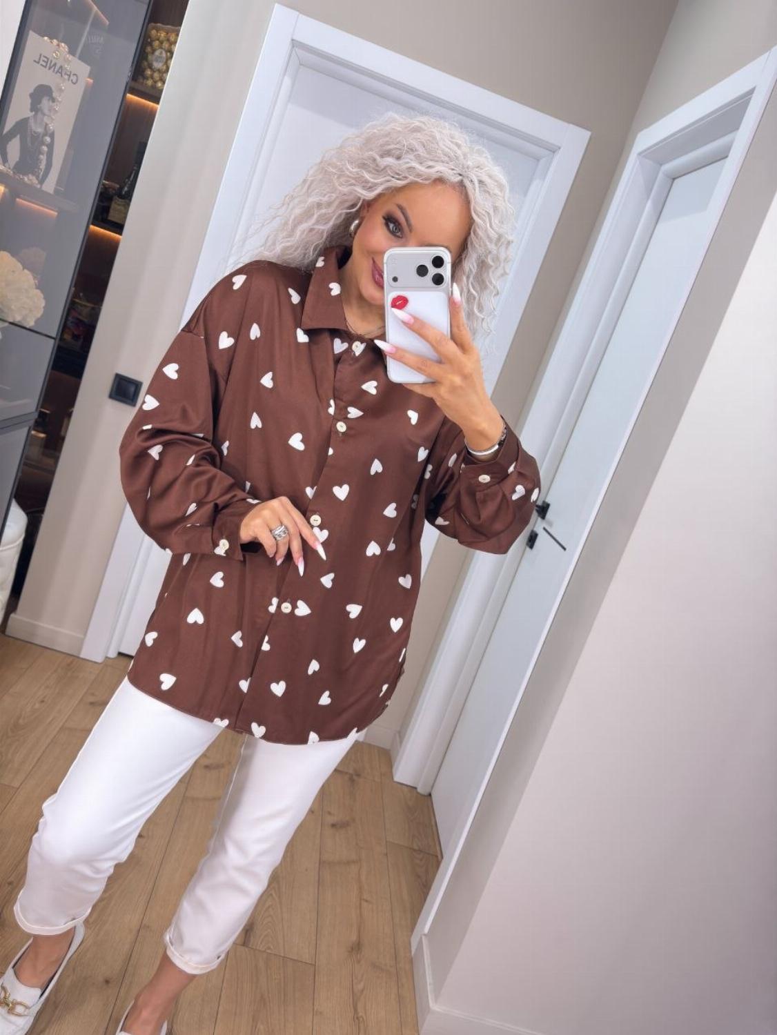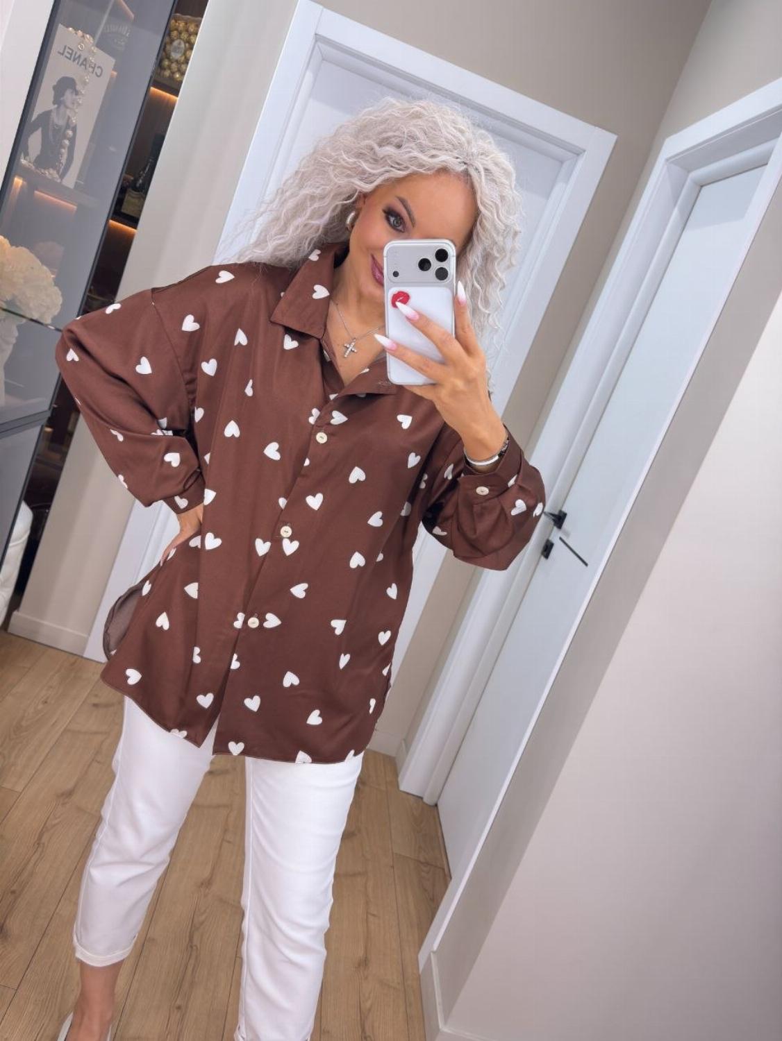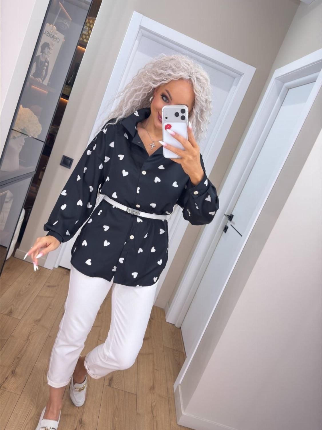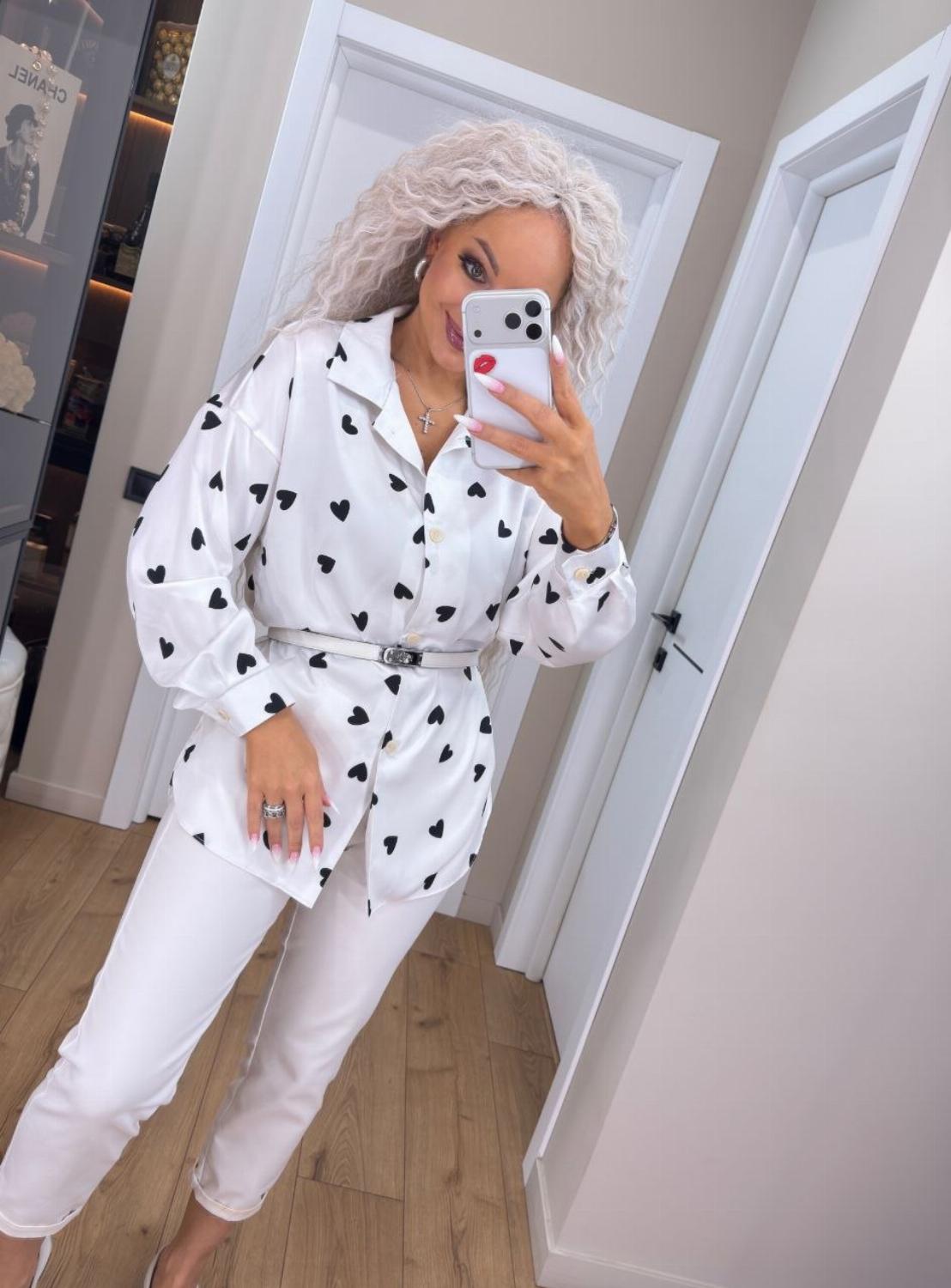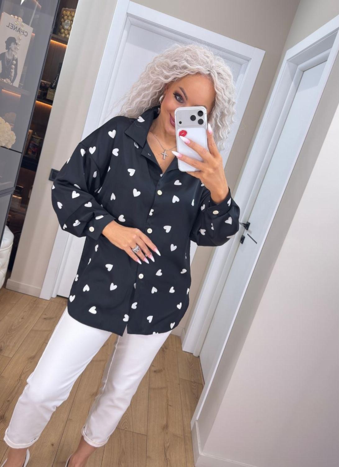 Дизайн: Грайливий принт у сердечко додає образу романтичності, а класичний крой дозволяє поєднувати блузу як з джинсами, так і з елегантними брюками.