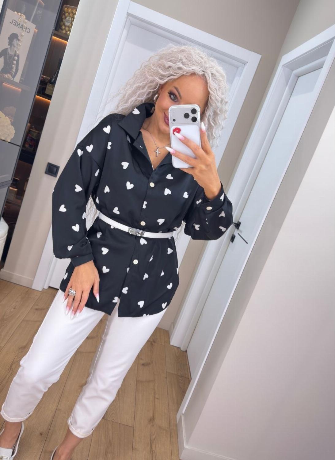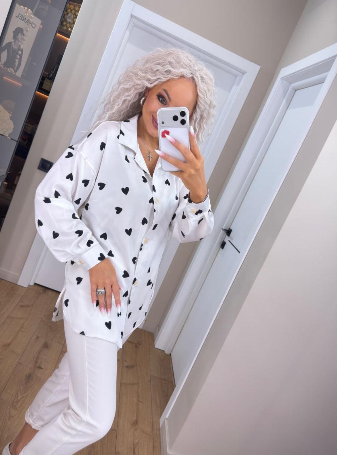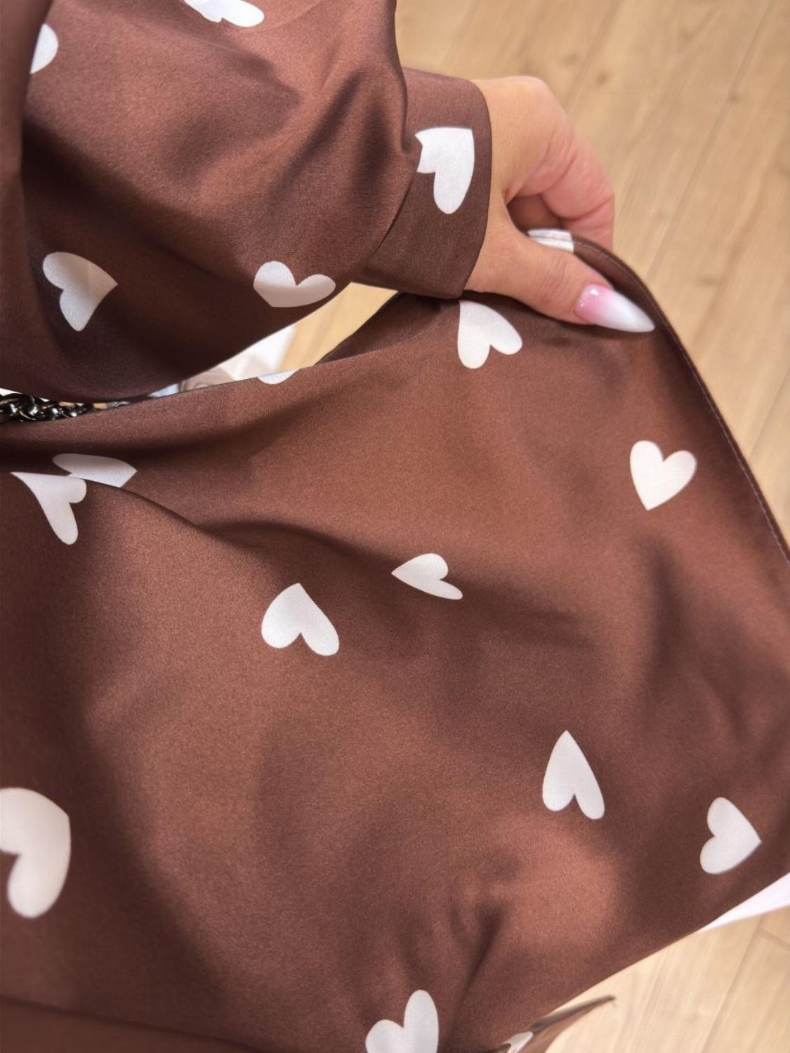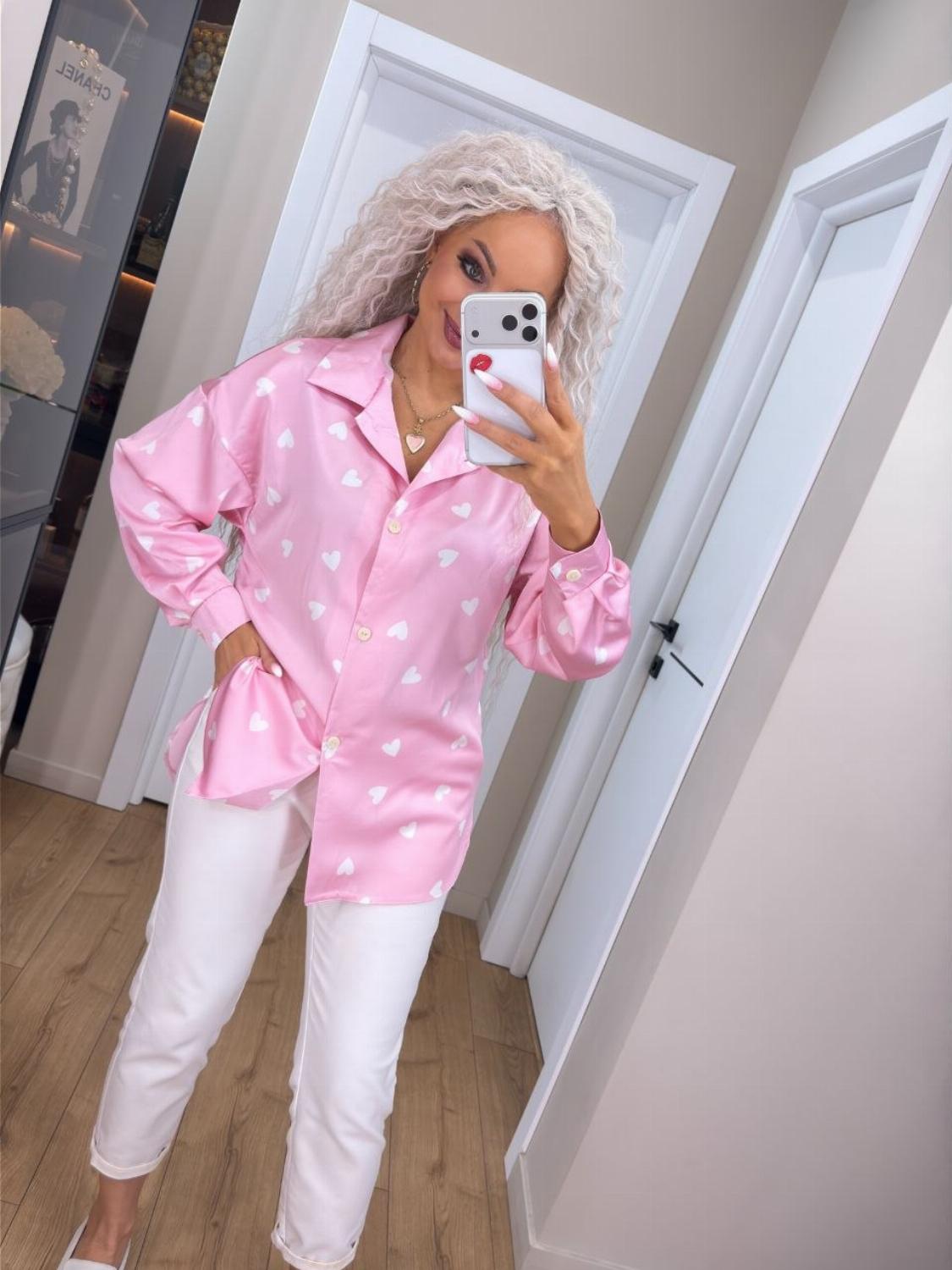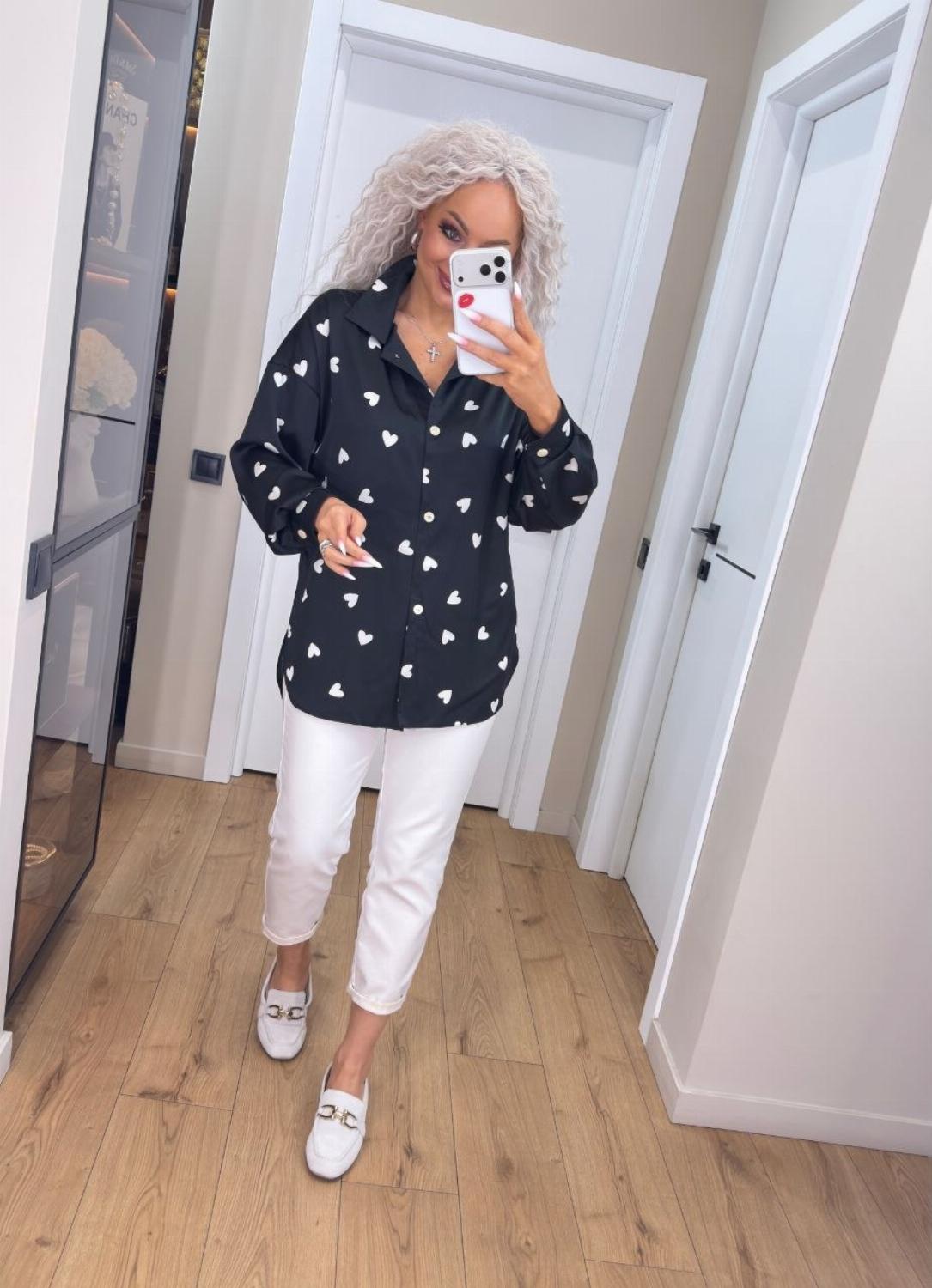 Дизайн: Грайливий принт у сердечко додає образу романтичності, а класичний крой дозволяє поєднувати блузу як з джинсами, так і з елегантними брюками.