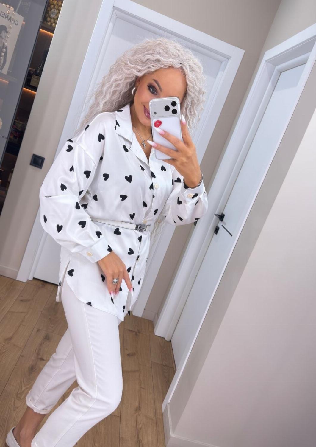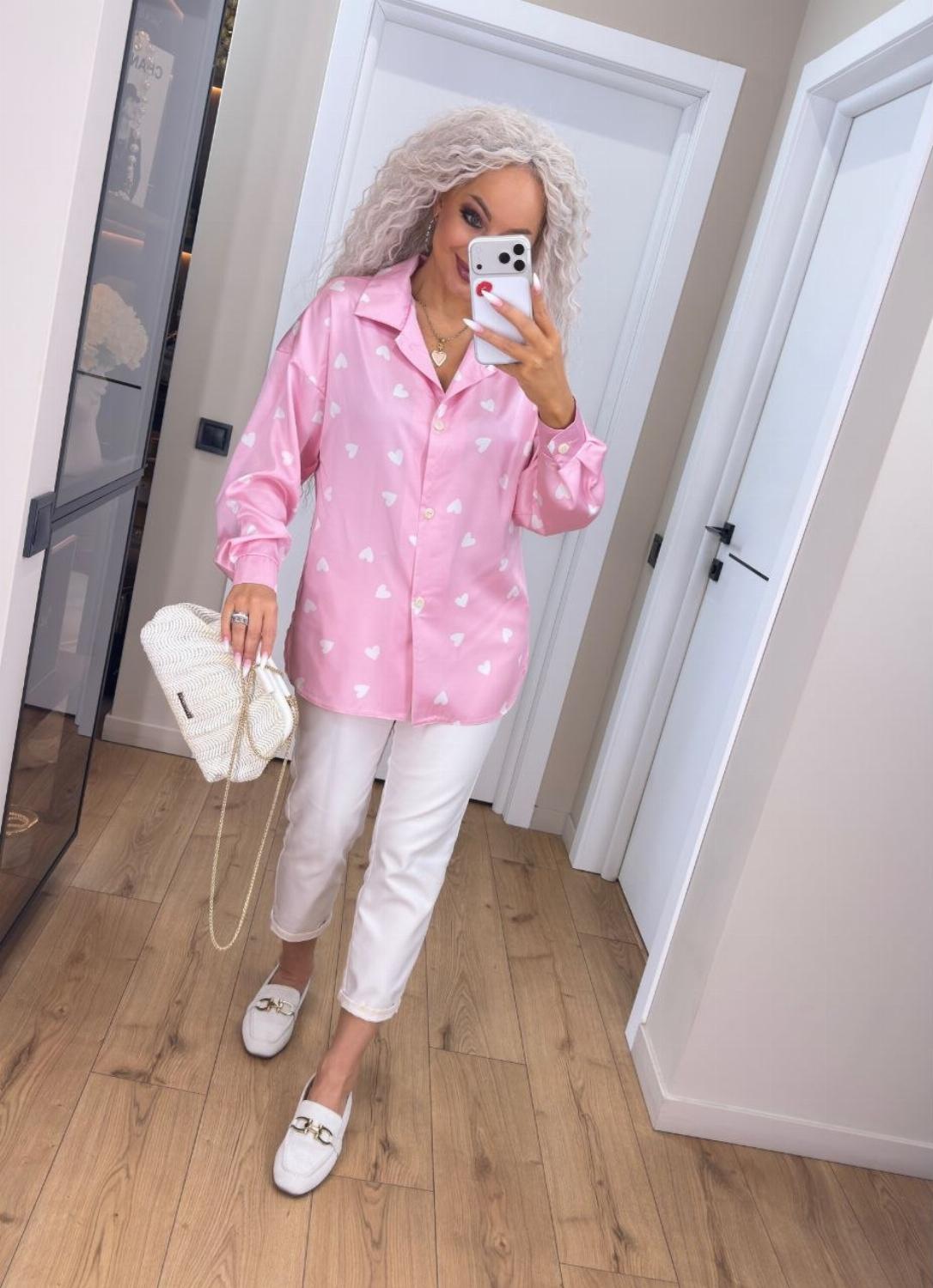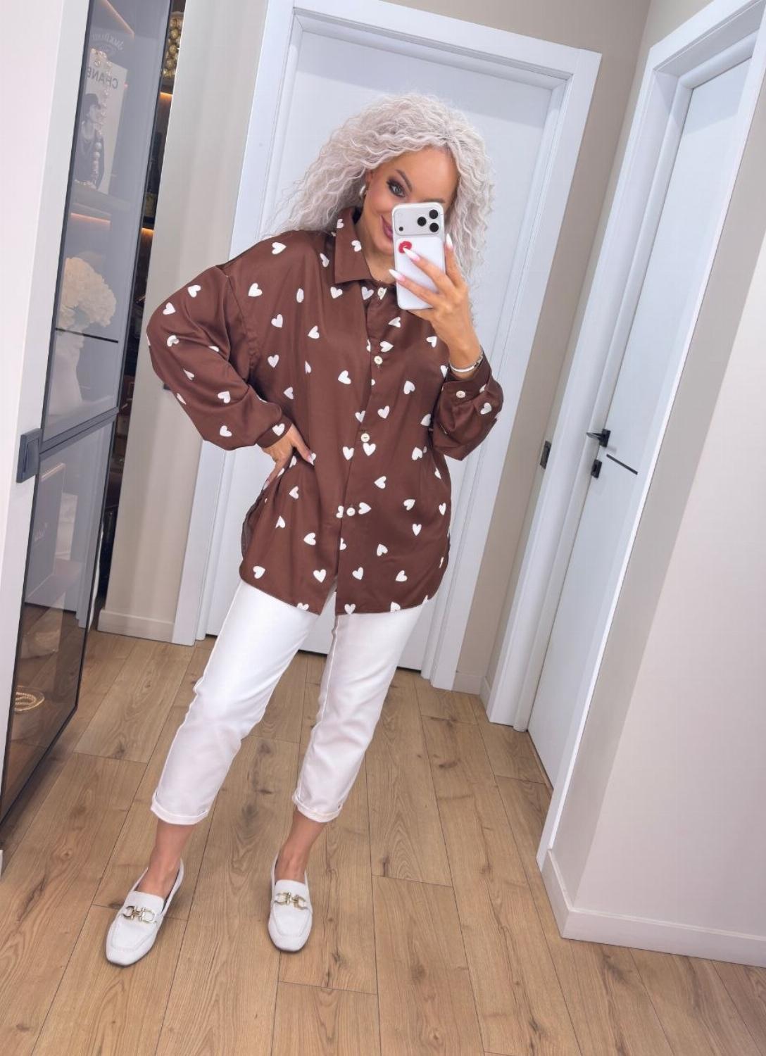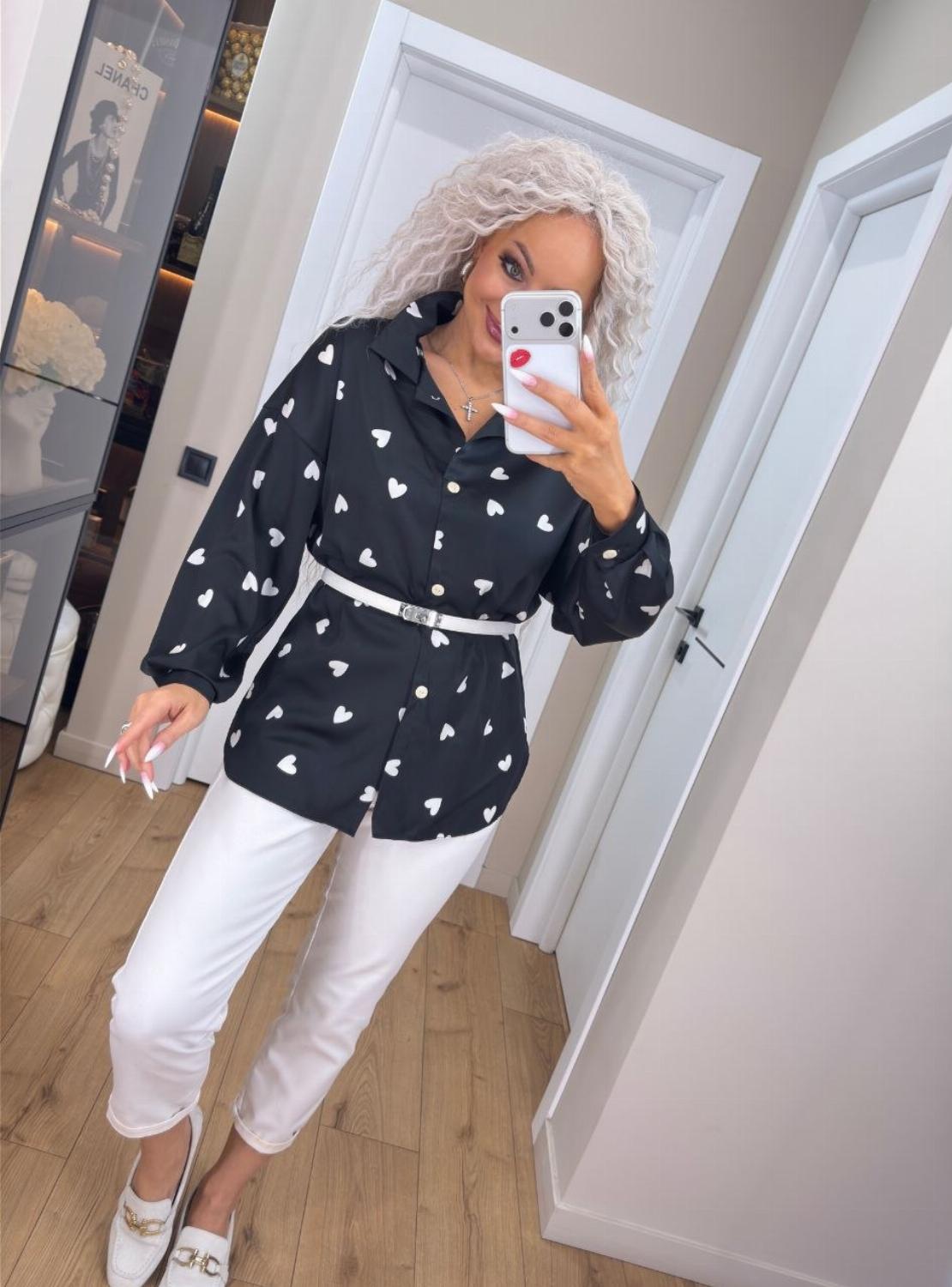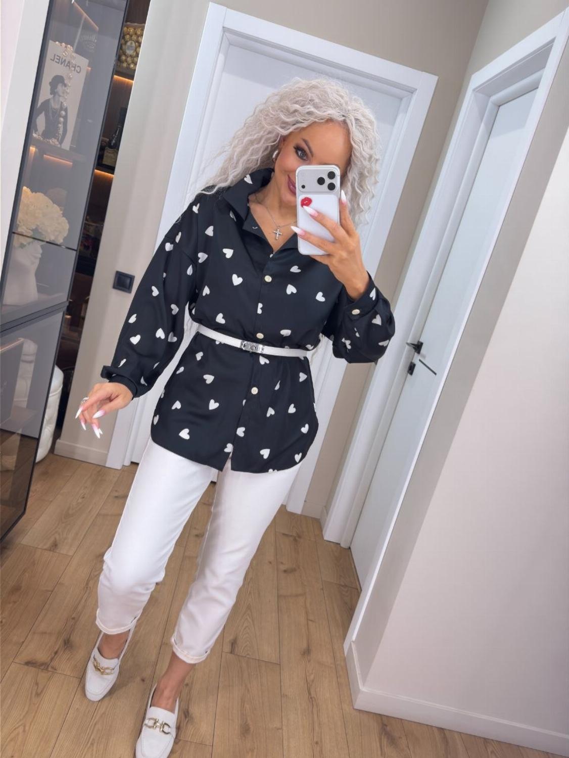 Дизайн: Грайливий принт у сердечко додає образу романтичності, а класичний крой дозволяє поєднувати блузу як з джинсами, так і з елегантними брюками.