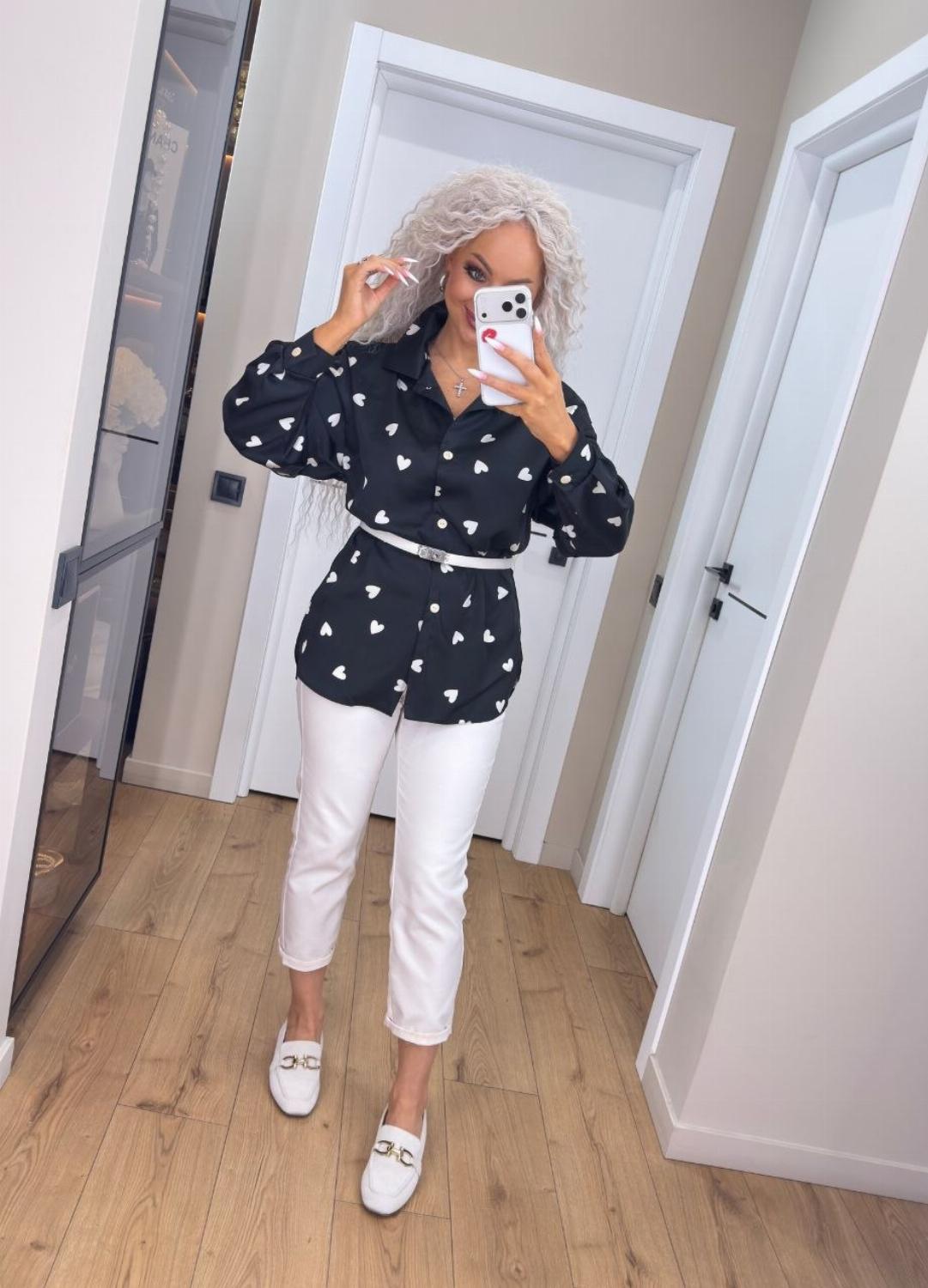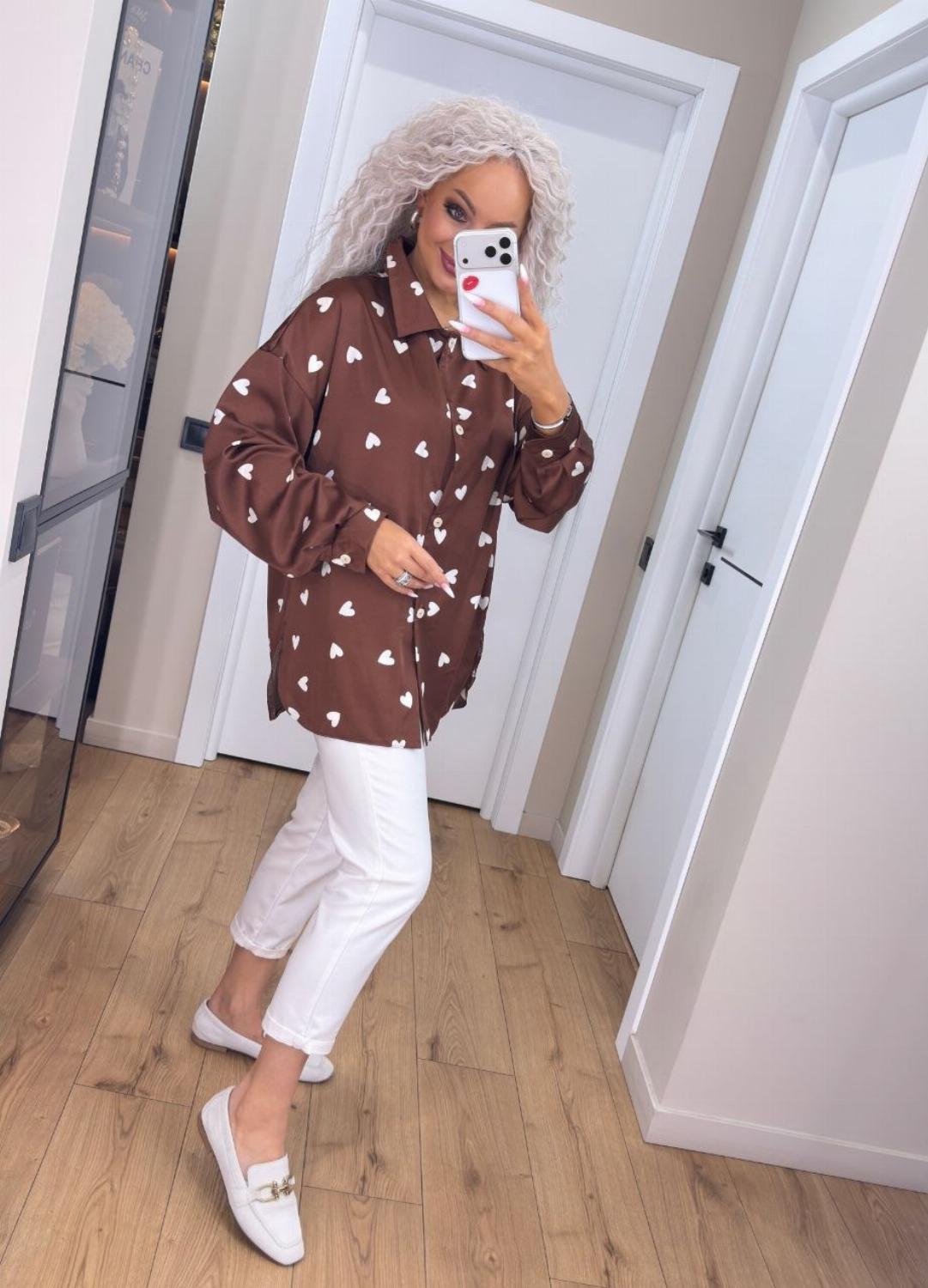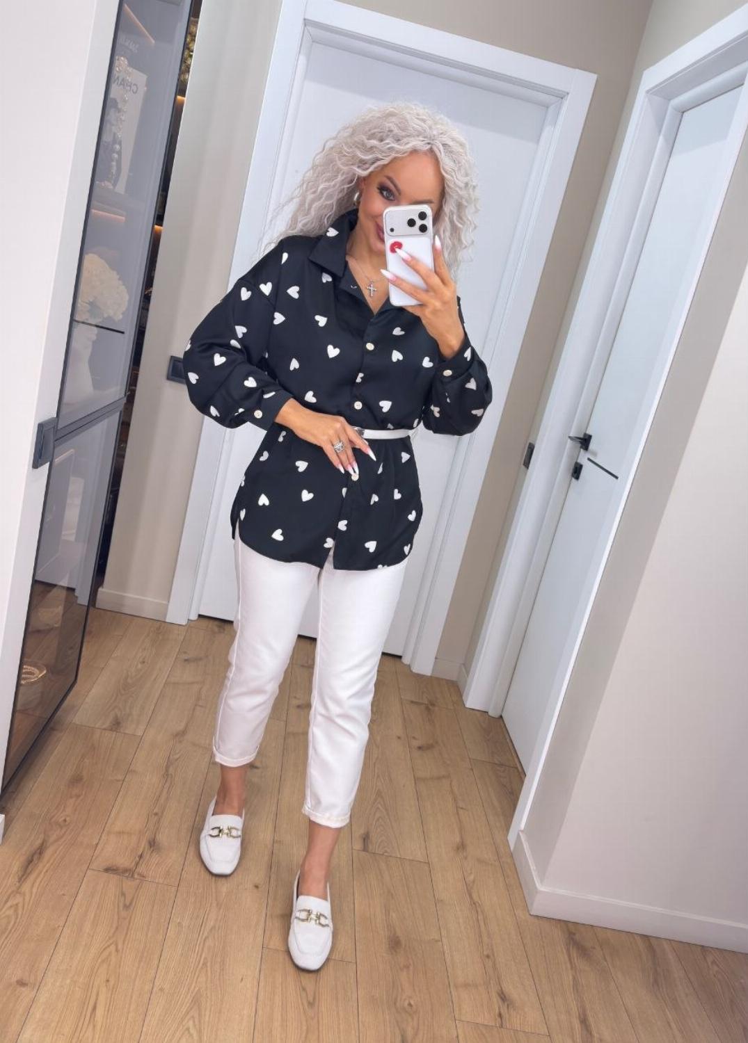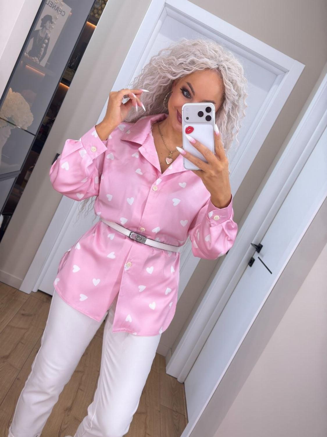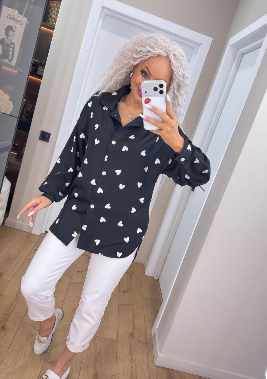 Дизайн: Грайливий принт у сердечко додає образу романтичності, а класичний крой дозволяє поєднувати блузу як з джинсами, так і з елегантними брюками.