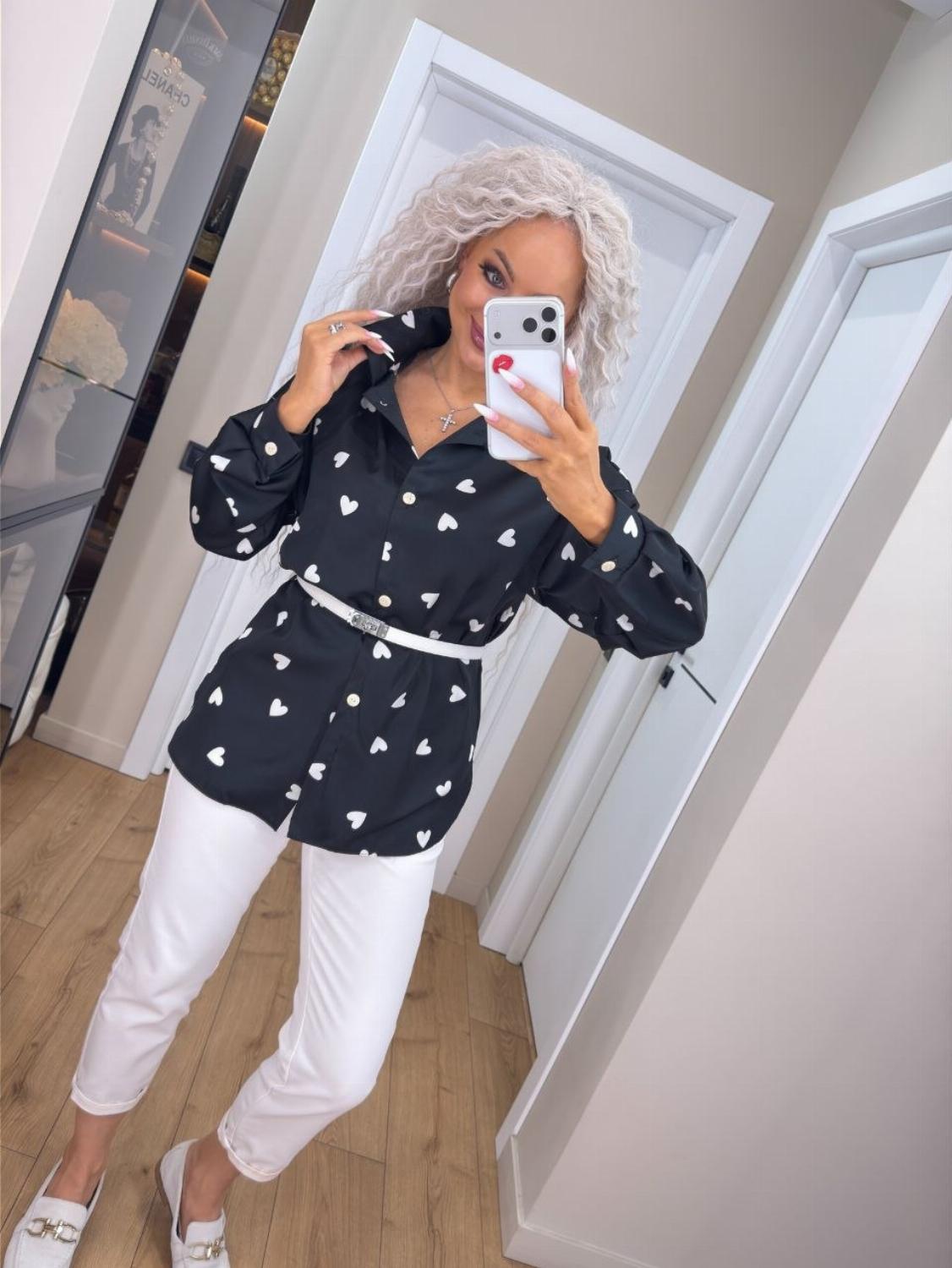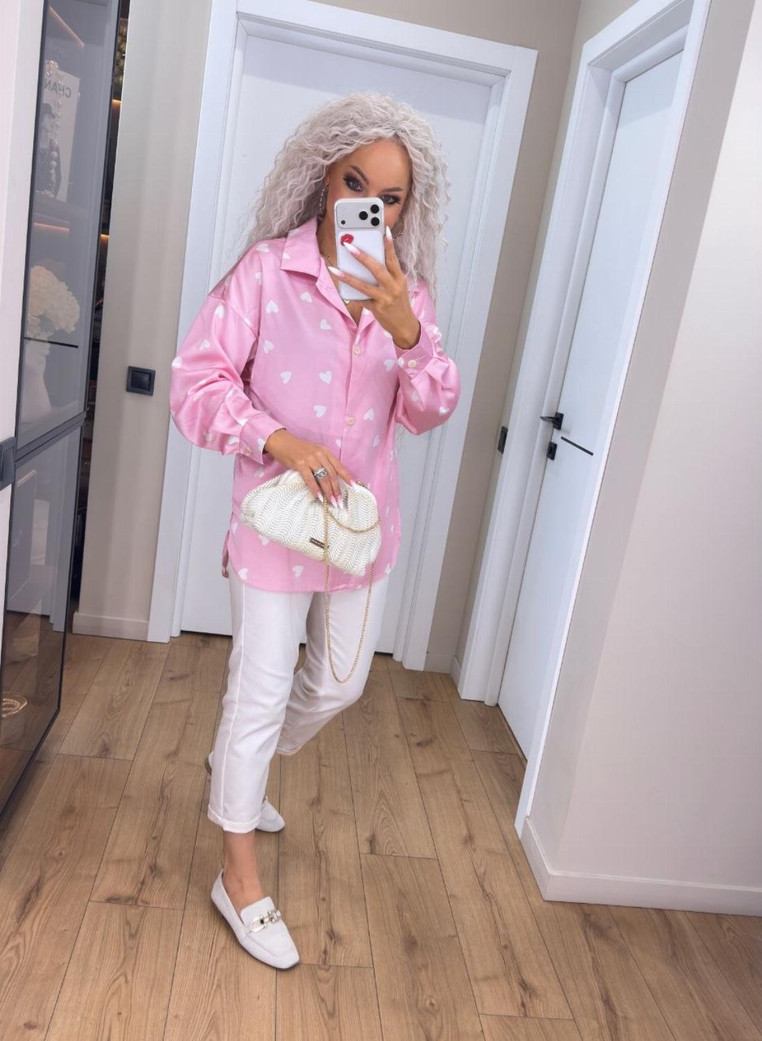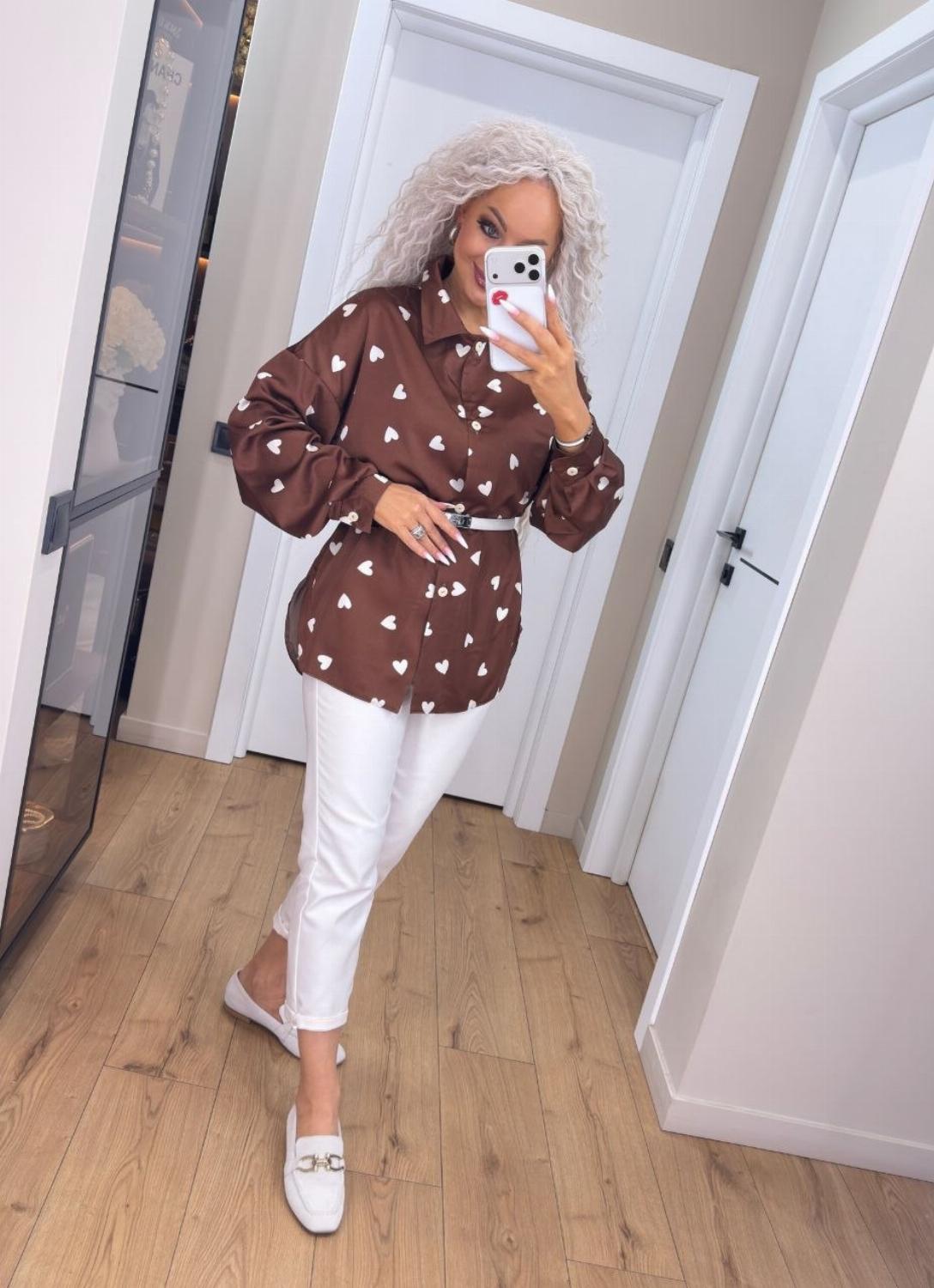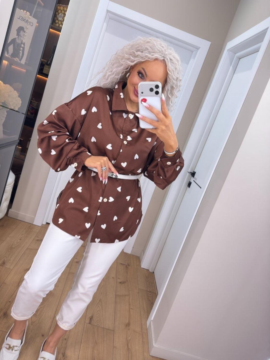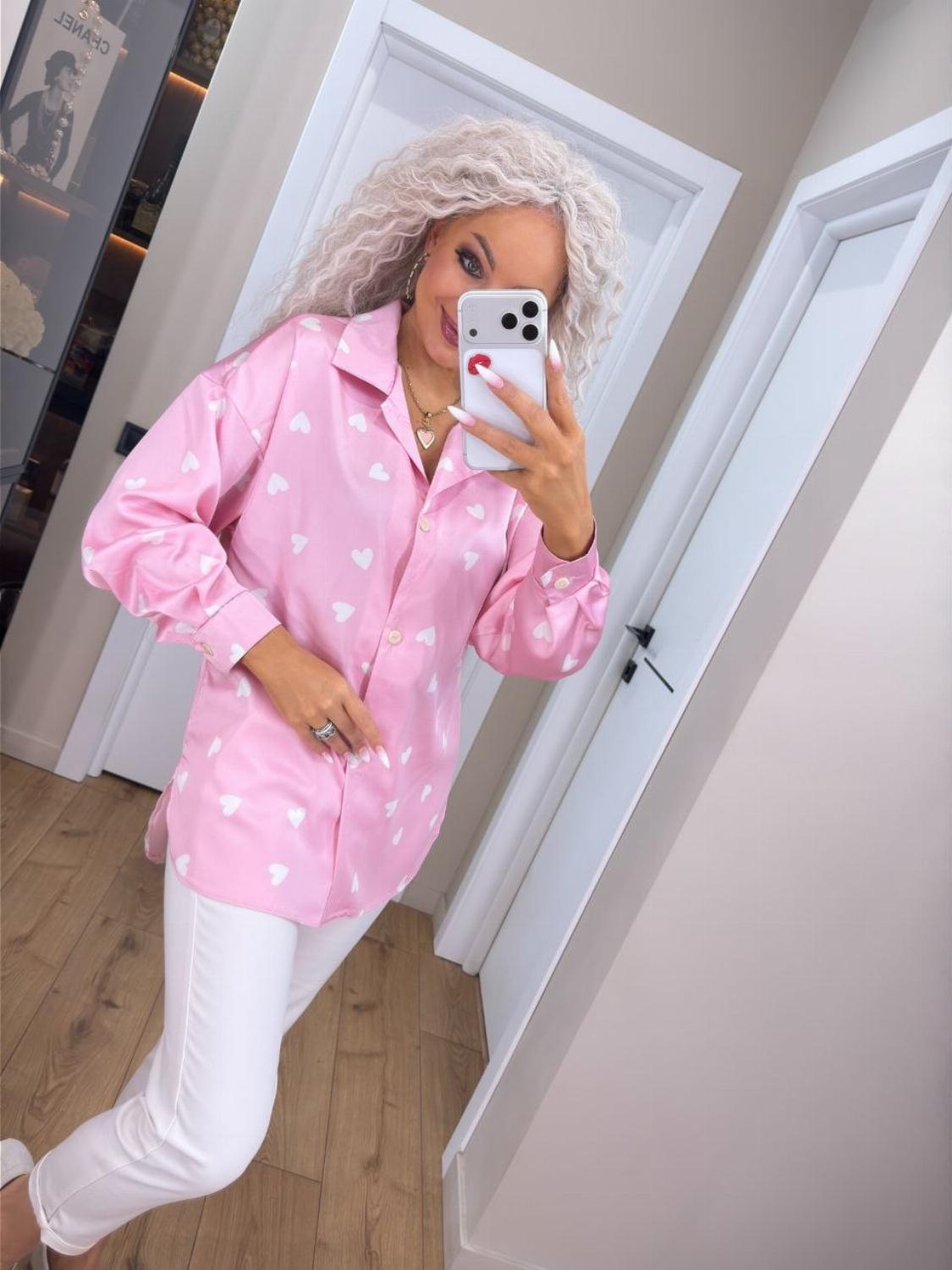 Дизайн: Грайливий принт у сердечко додає образу романтичності, а класичний крой дозволяє поєднувати блузу як з джинсами, так і з елегантними брюками.