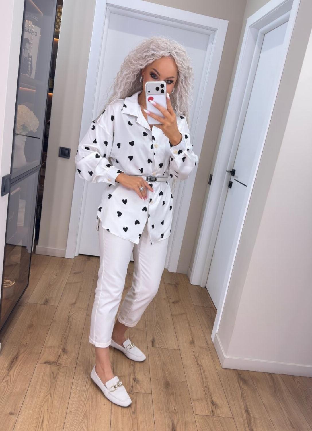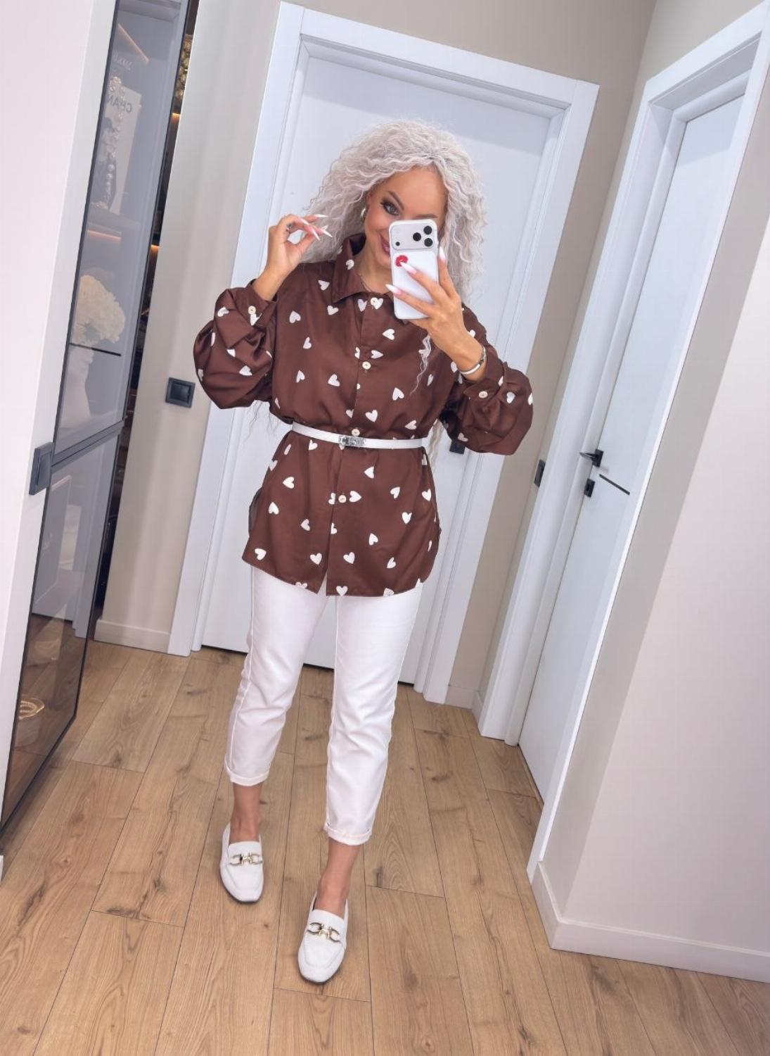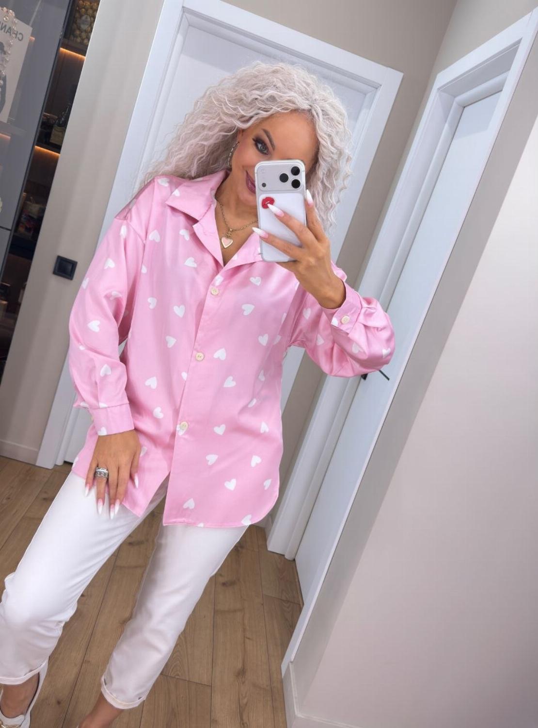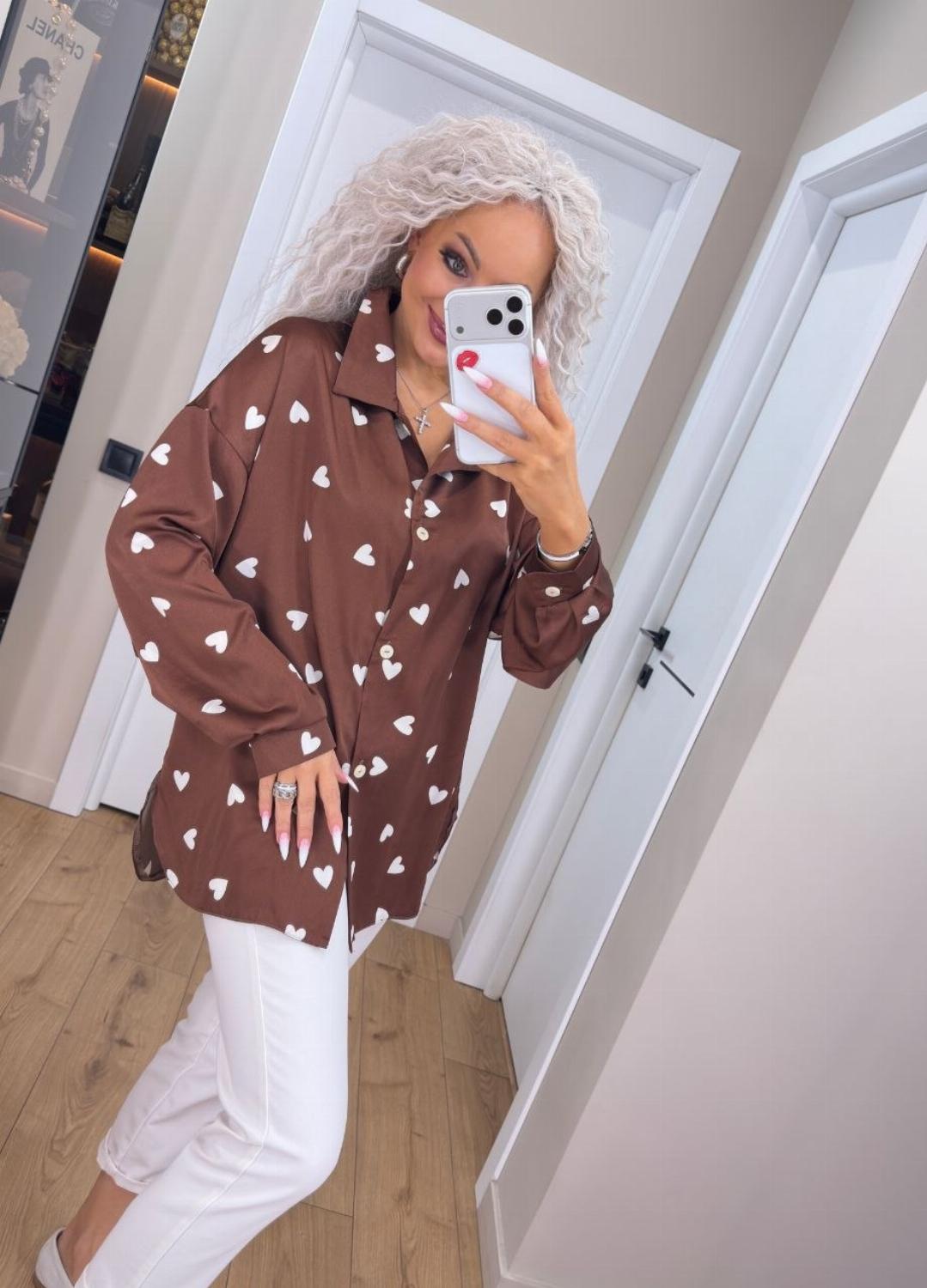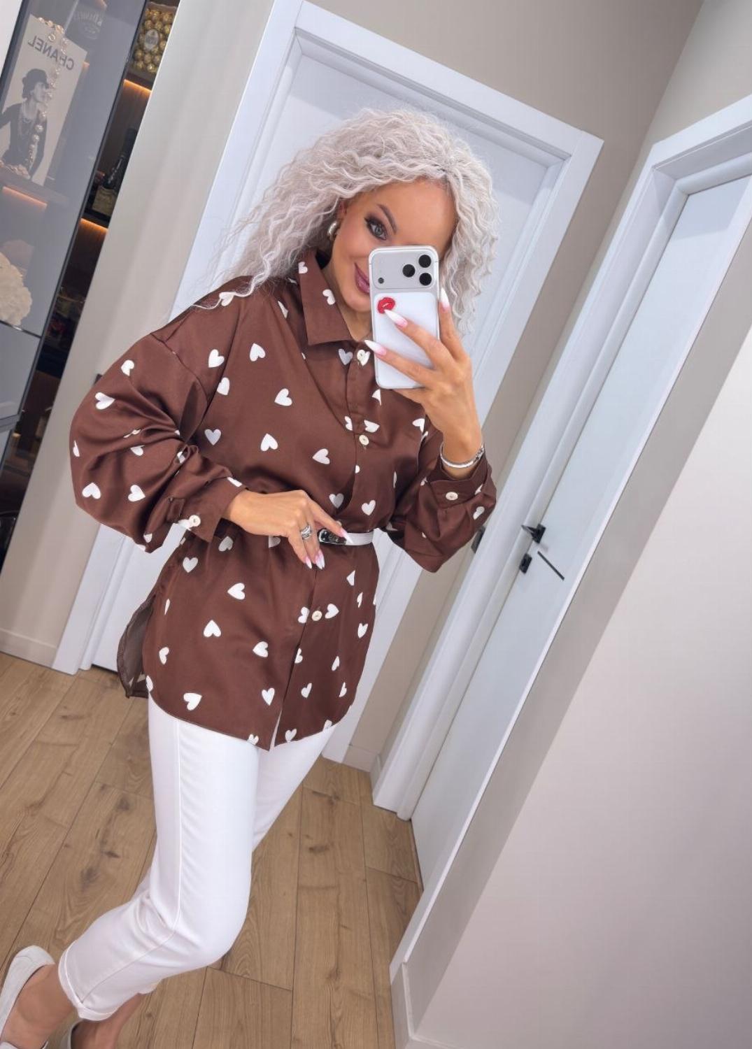 Дизайн: Грайливий принт у сердечко додає образу романтичності, а класичний крой дозволяє поєднувати блузу як з джинсами, так і з елегантними брюками.