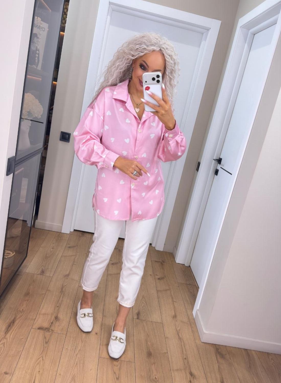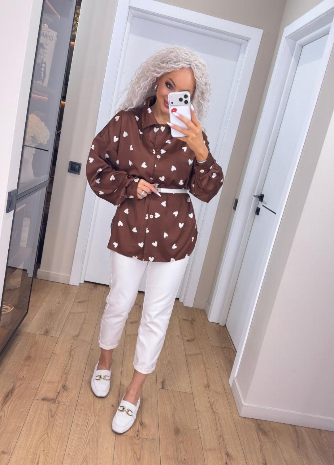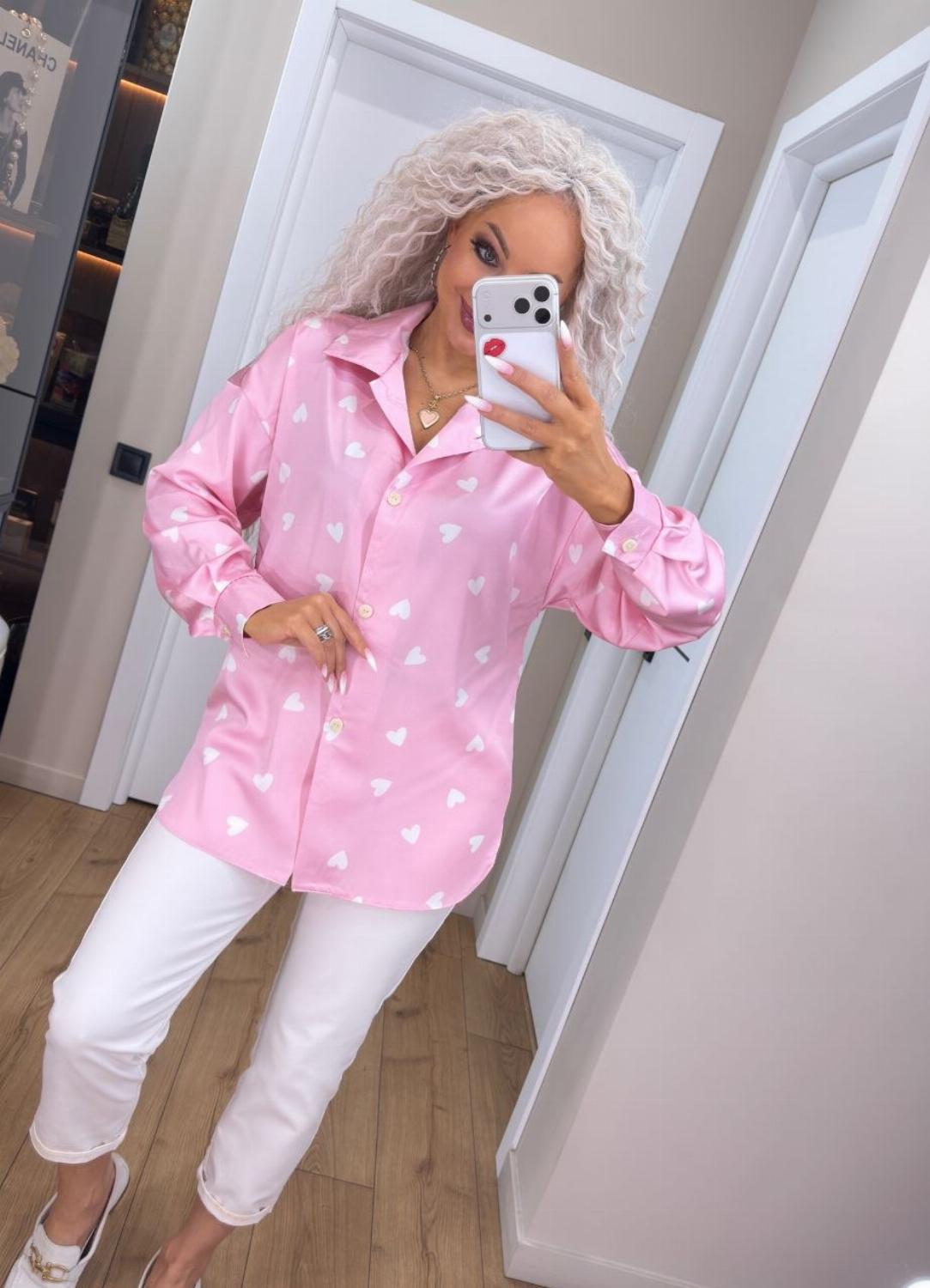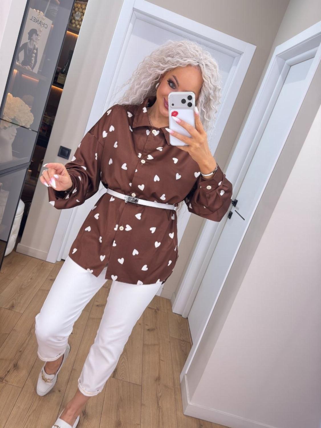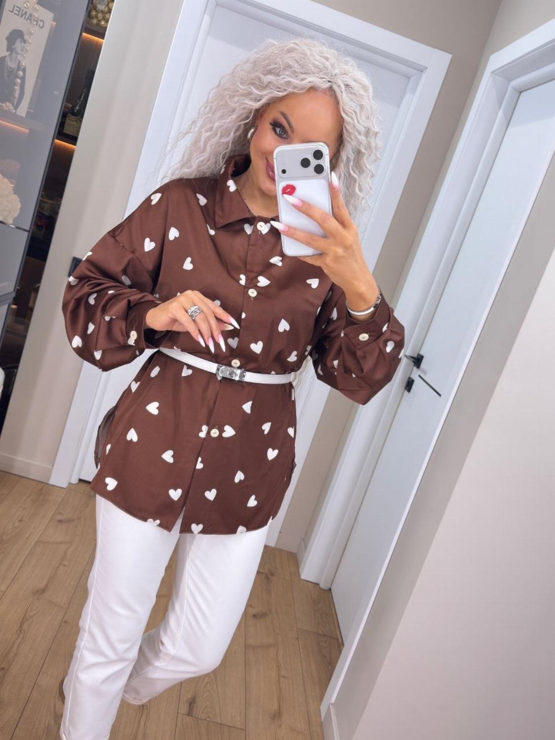 Дизайн: Грайливий принт у сердечко додає образу романтичності, а класичний крой дозволяє поєднувати блузу як з джинсами, так і з елегантними брюками.