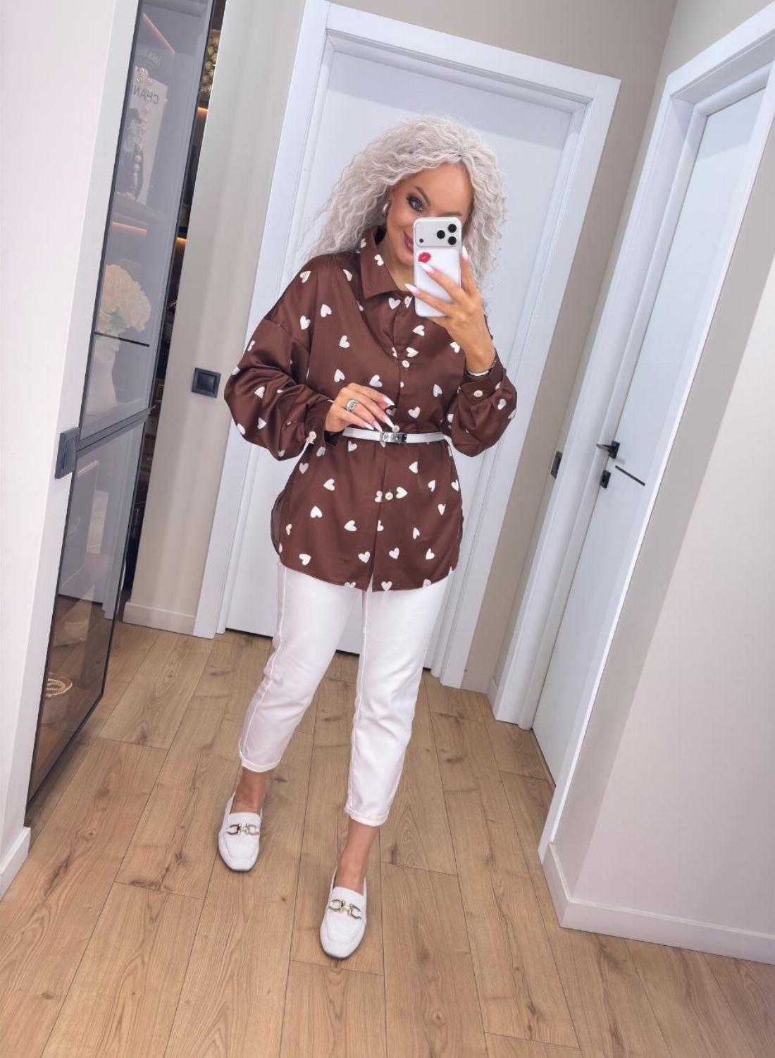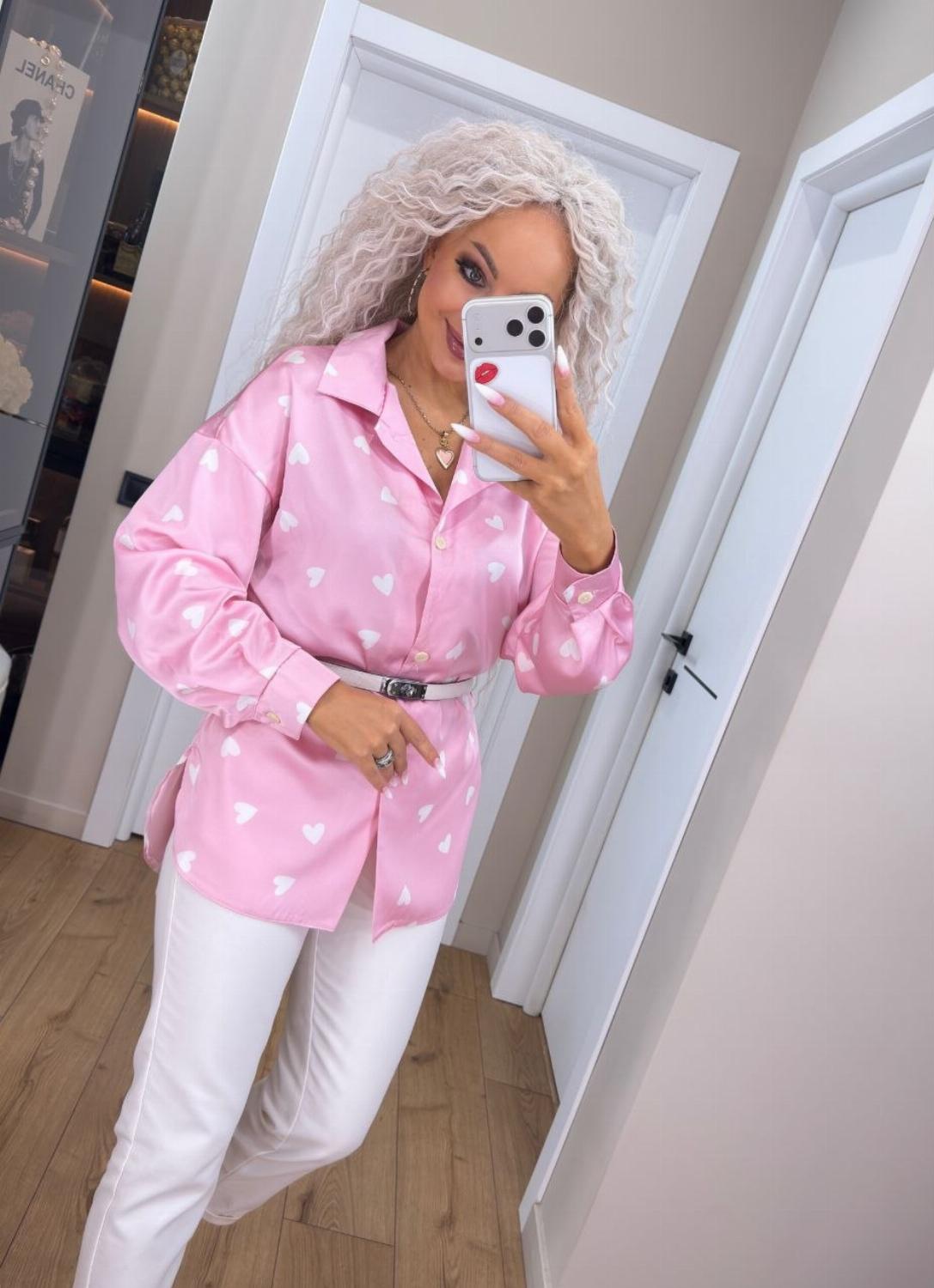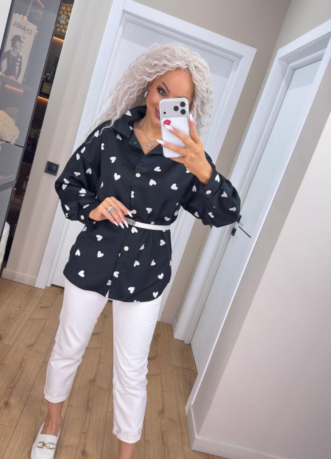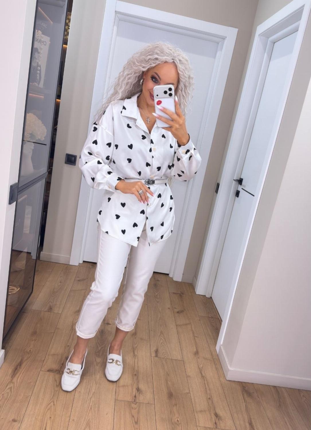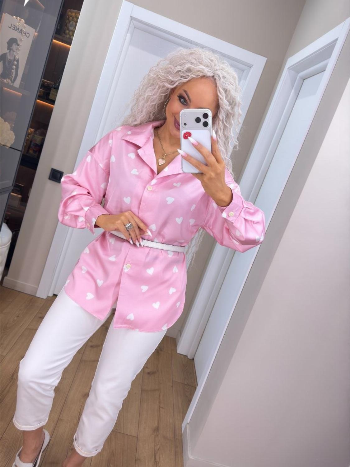 Дизайн: Грайливий принт у сердечко додає образу романтичності, а класичний крой дозволяє поєднувати блузу як з джинсами, так і з елегантними брюками.