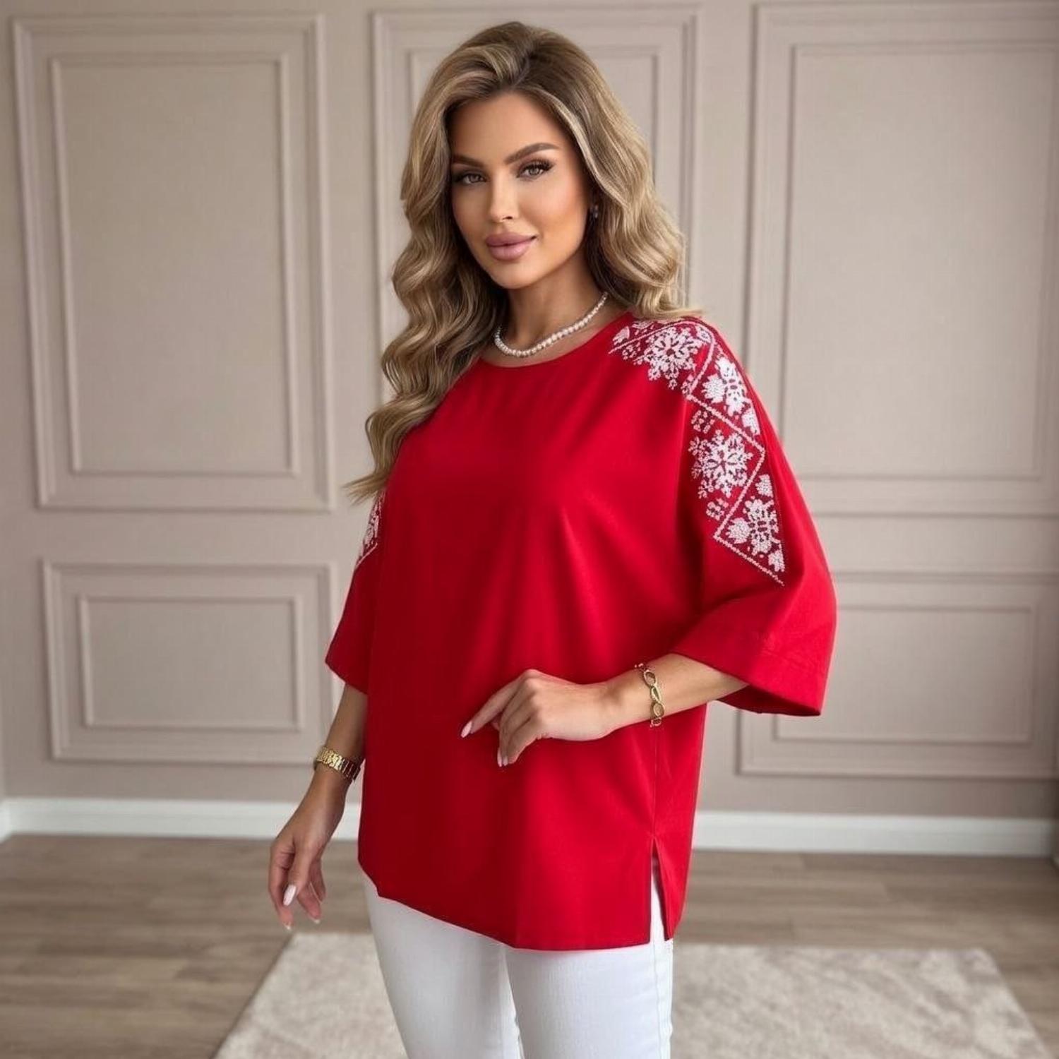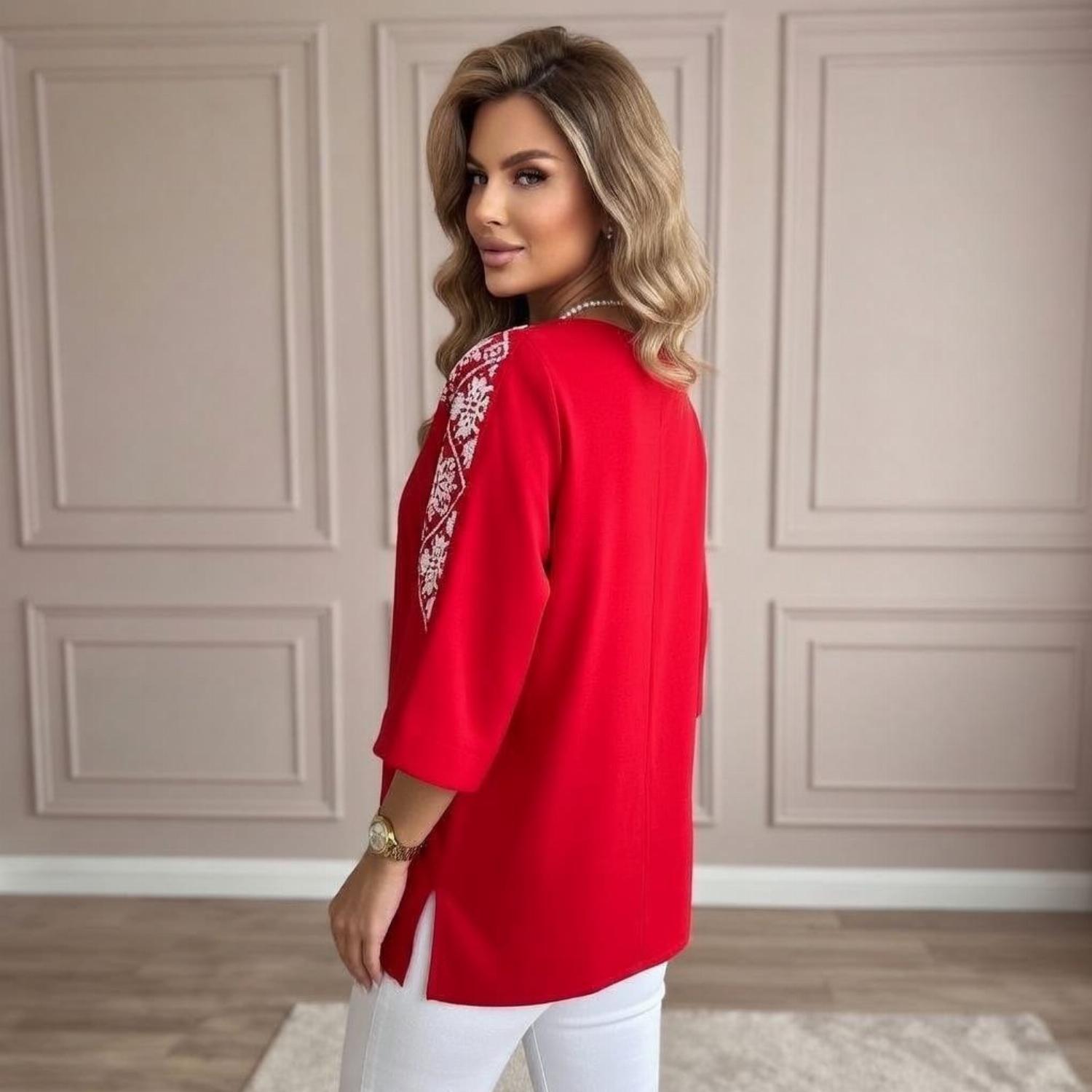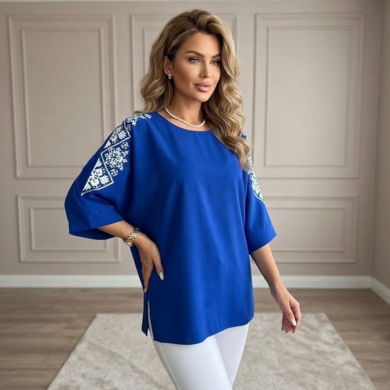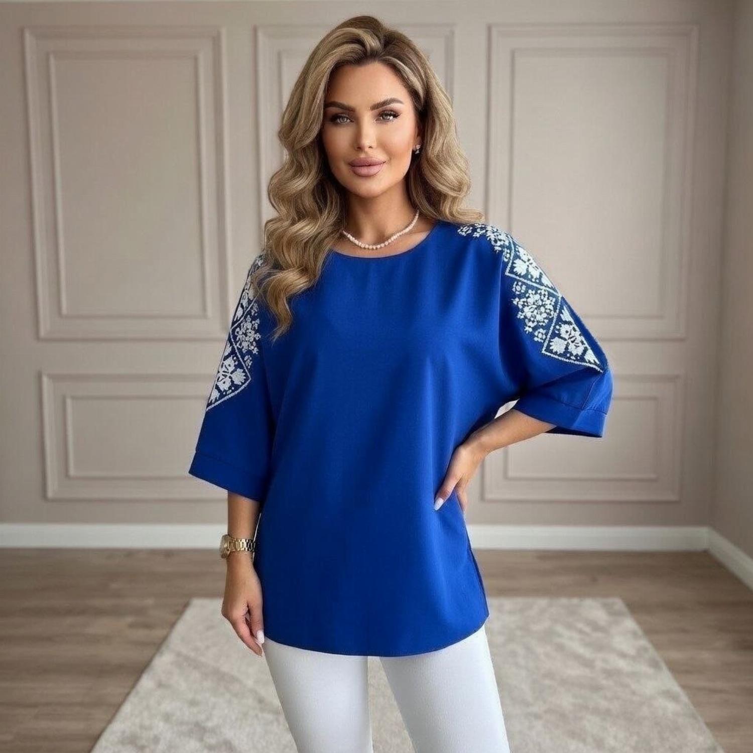 Представляємо вашій увазі хітову новинку і безсумнівний маст-хев сезону - светр з рукавом 3/4 «Vlasta». Модель виконана з суперсофту, прикрашена якісним та яскравим принтом на рукавах у вигляді візерунка української вишивки. Завдяки стриманому крою з круглою горловиною і простому дизайну, таку кофту можна сміливо надягати на роботу, будь-який захід або прогулянку. Кофта «Vlasta» відмінно поєднується з будь-яким низом - брюками, джинсами, легінсами і спідницями, що дозволить створювати різноманітні і стильні образи.