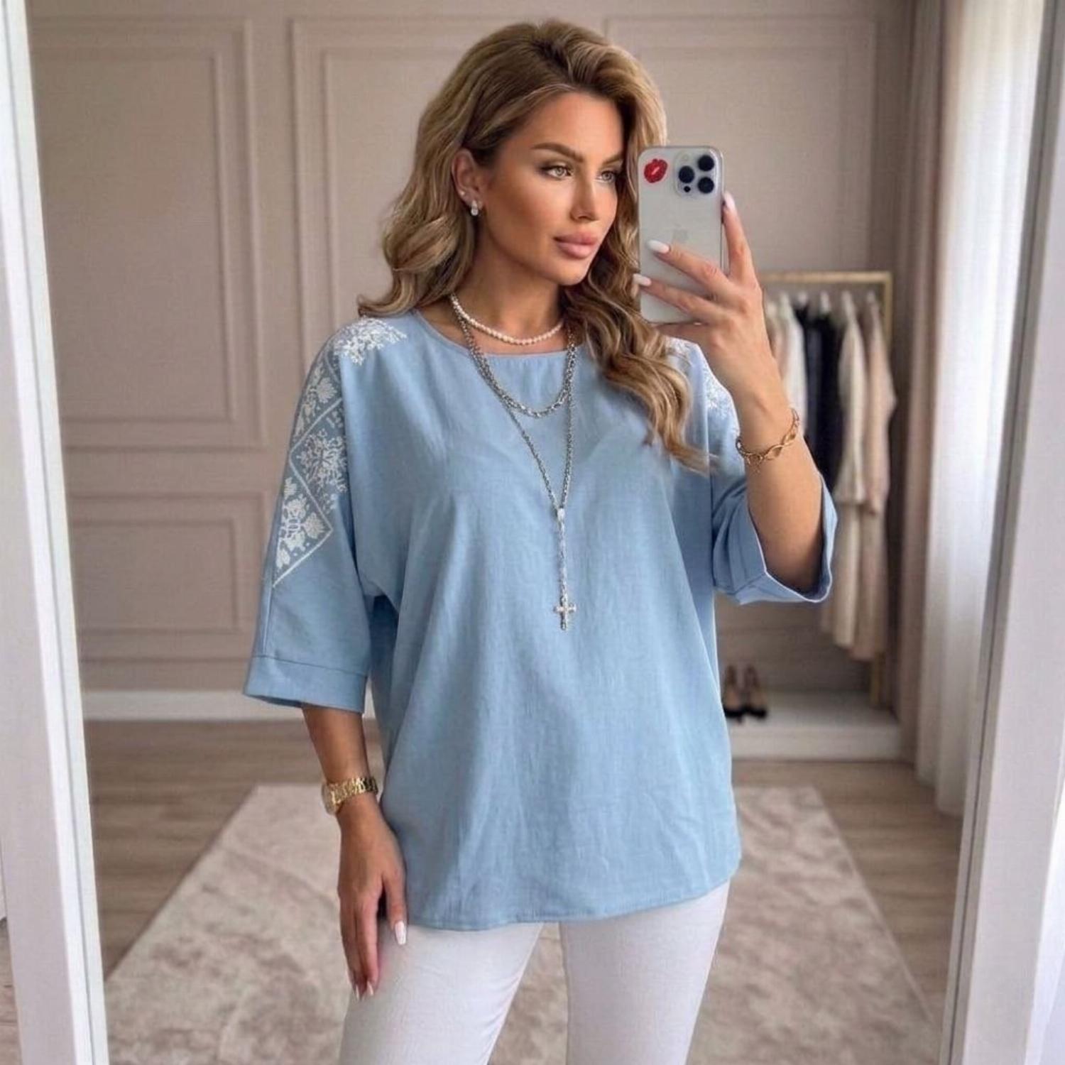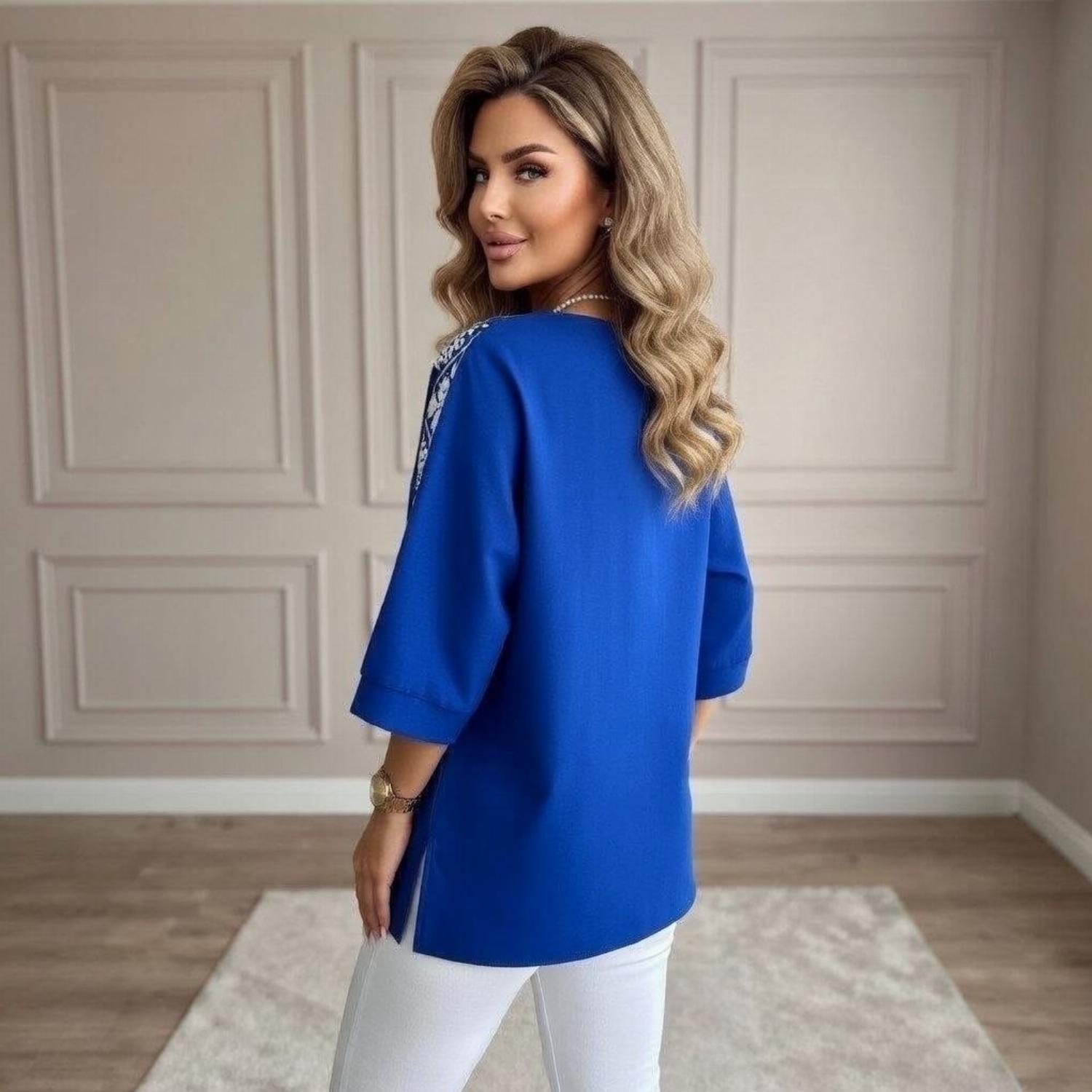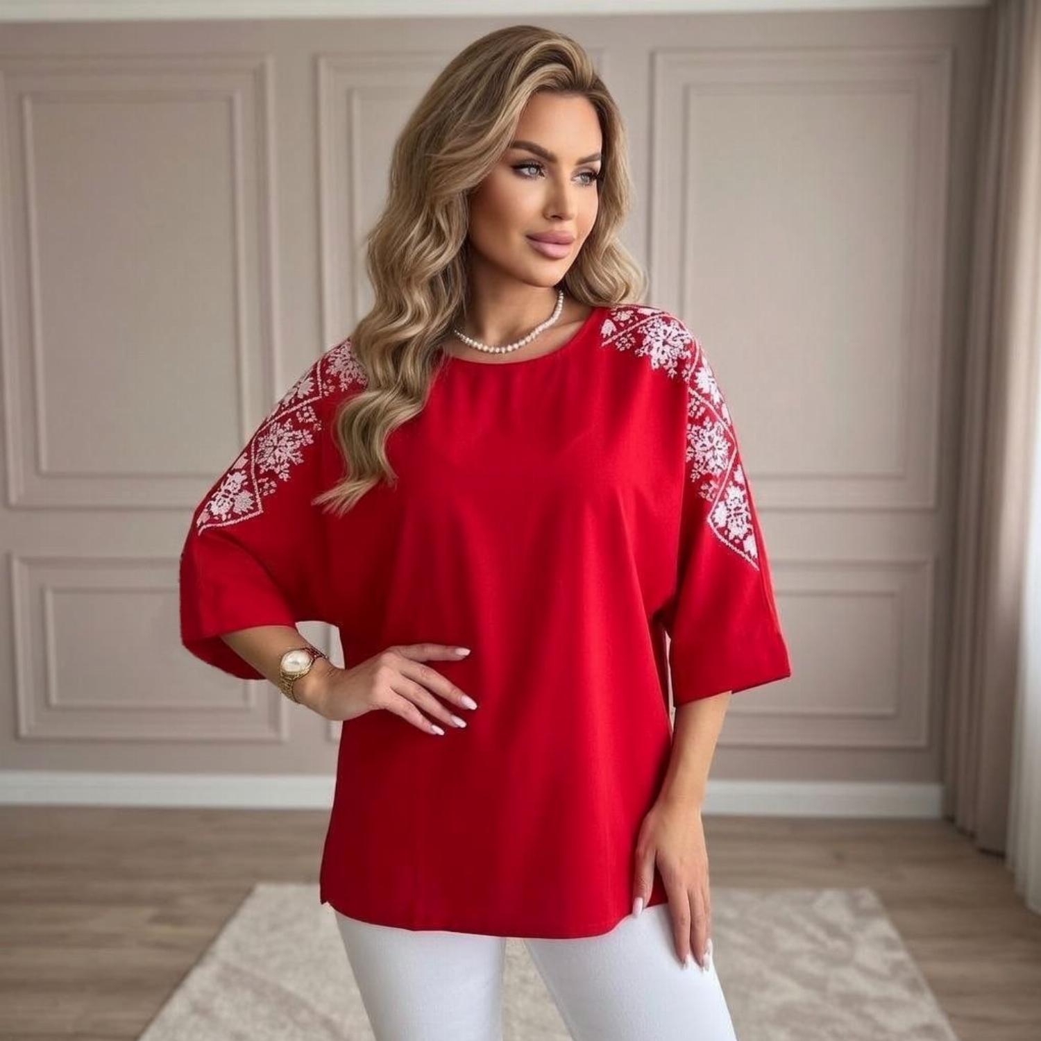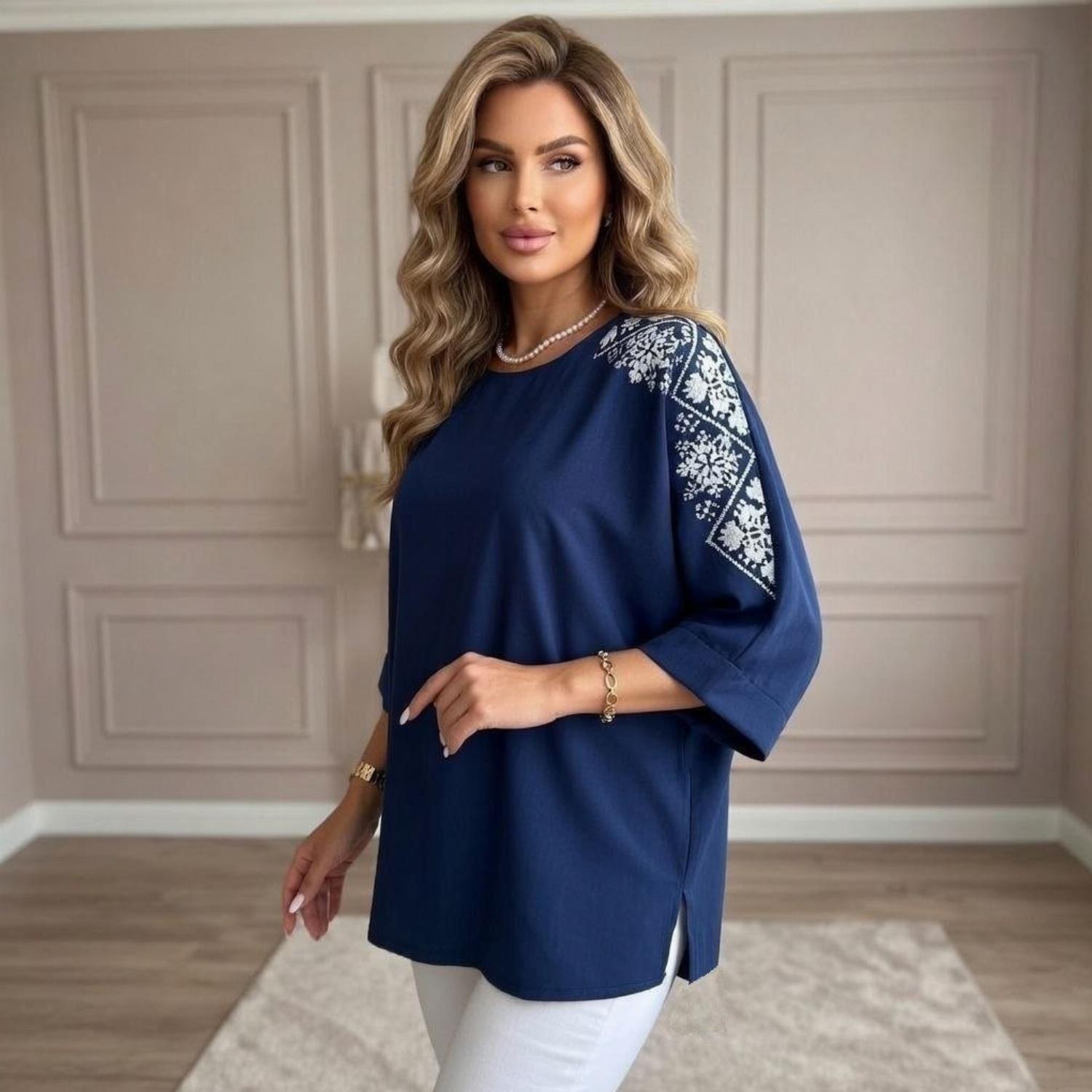 Представляємо вашій увазі хітову новинку і безсумнівний маст-хев сезону - светр з рукавом 3/4 «Vlasta». Модель виконана з суперсофту, прикрашена якісним та яскравим принтом на рукавах у вигляді візерунка української вишивки. Завдяки стриманому крою з круглою горловиною і простому дизайну, таку кофту можна сміливо надягати на роботу, будь-який захід або прогулянку. Кофта «Vlasta» відмінно поєднується з будь-яким низом - брюками, джинсами, легінсами і спідницями, що дозволить створювати різноманітні і стильні образи.