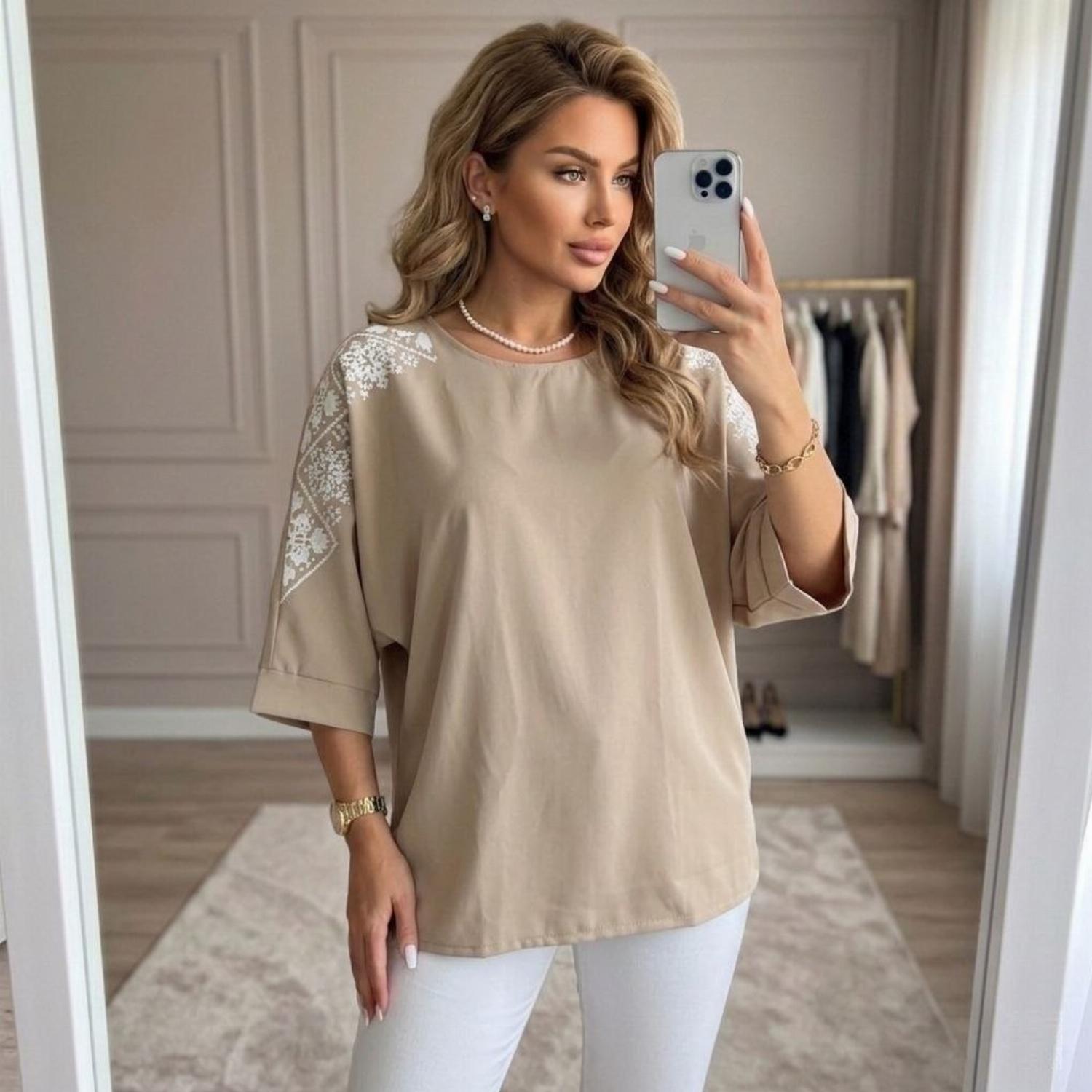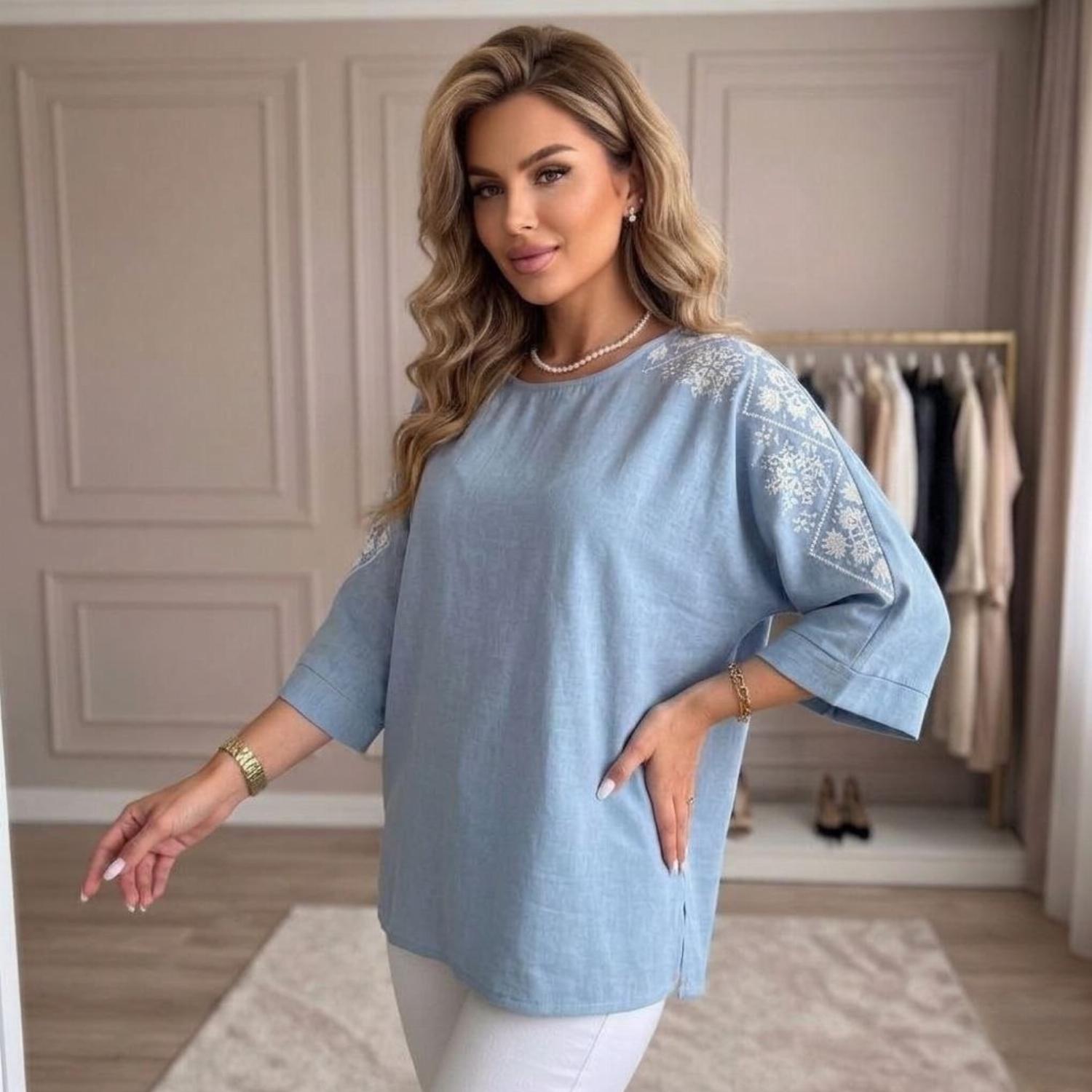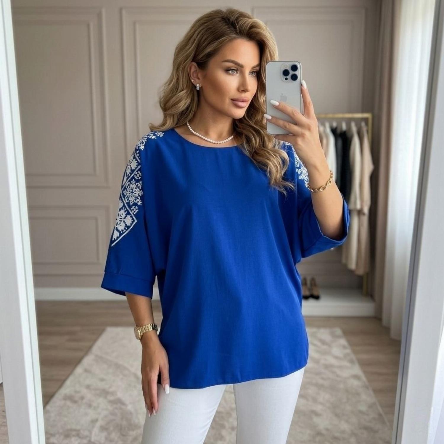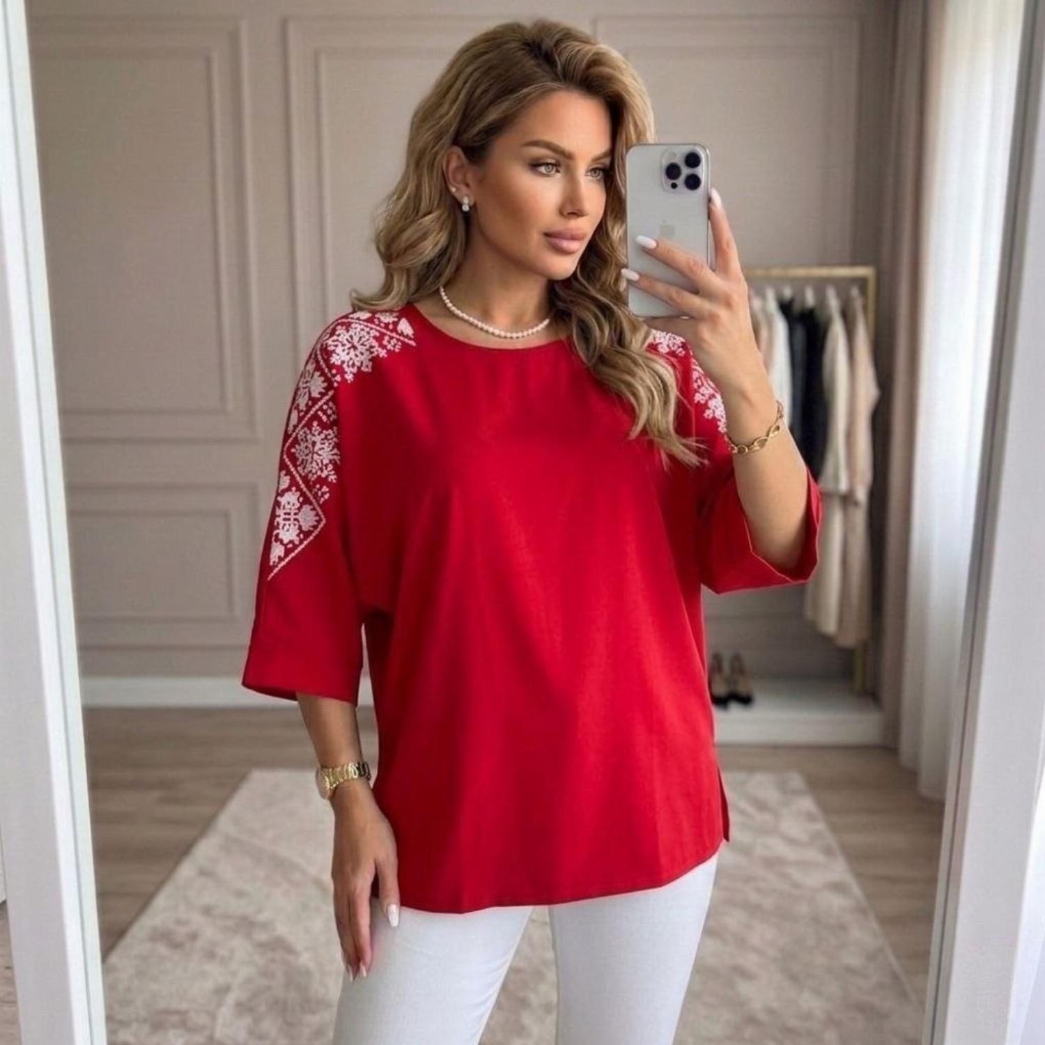 Представляємо вашій увазі хітову новинку і безсумнівний маст-хев сезону - светр з рукавом 3/4 «Vlasta». Модель виконана з суперсофту, прикрашена якісним та яскравим принтом на рукавах у вигляді візерунка української вишивки. Завдяки стриманому крою з круглою горловиною і простому дизайну, таку кофту можна сміливо надягати на роботу, будь-який захід або прогулянку. Кофта «Vlasta» відмінно поєднується з будь-яким низом - брюками, джинсами, легінсами і спідницями, що дозволить створювати різноманітні і стильні образи.