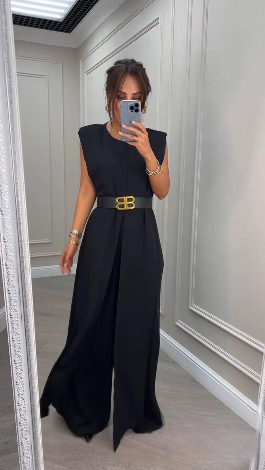 Пропонуємо елегантний жіночий костюм з легкої літньої костюмної тканини — чудовий вибір на спекотну погоду, коли хочеться виглядати стильно та почуватися комфортно. Модель без рукавів із акцентованими плечима та модним розрізом візуально подовжує силует.