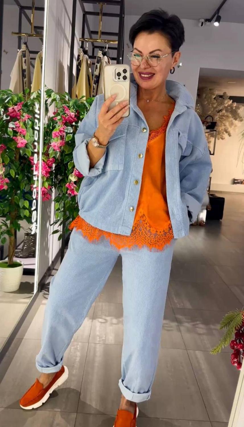 Зустрічайте нашу весняну новинку: костюм-двійку, у якому ідеально все. Ніжна текстура мікровельвету в поєднанні з соковитими відтінками створить образ, який притягує погляди.