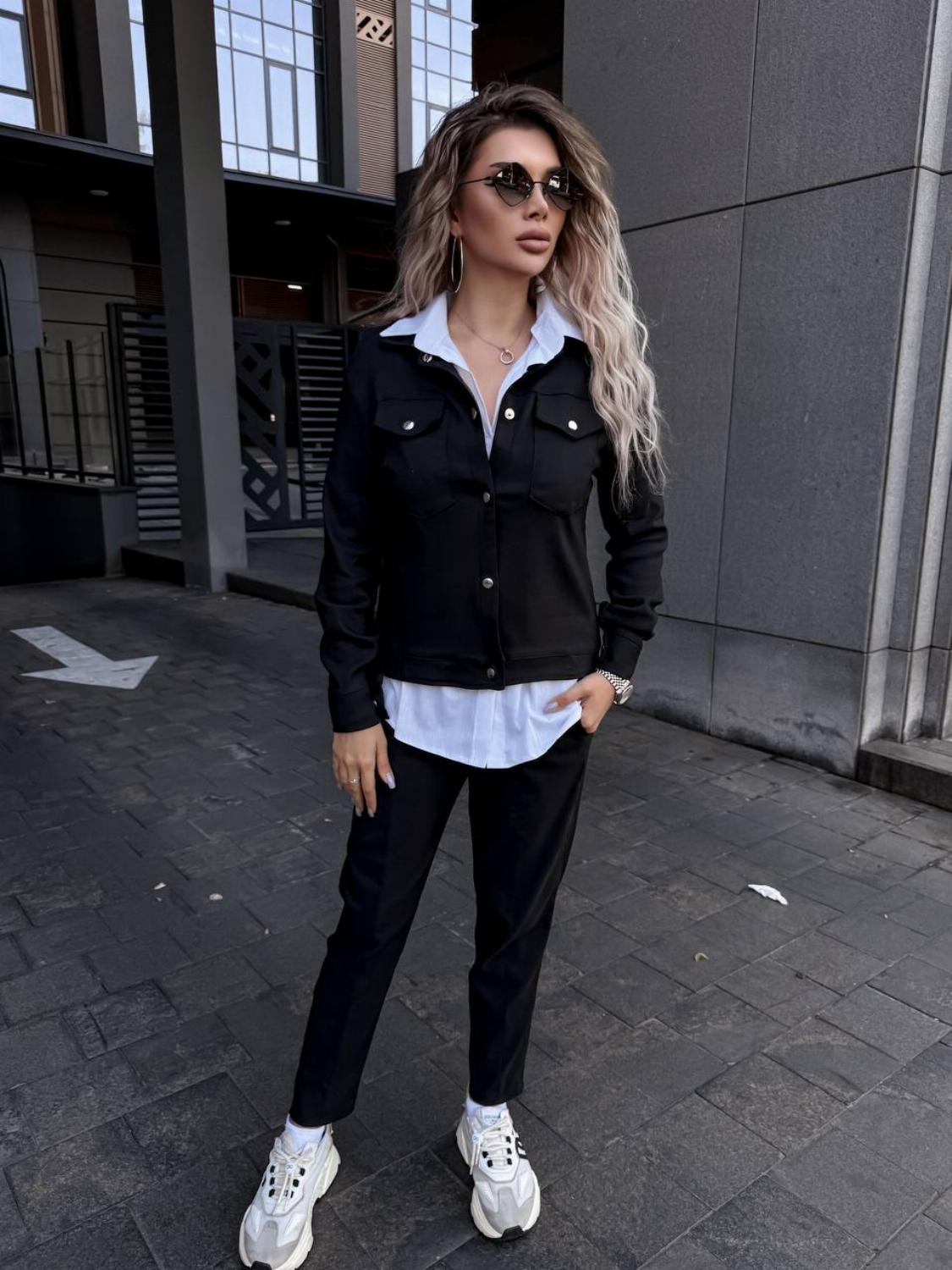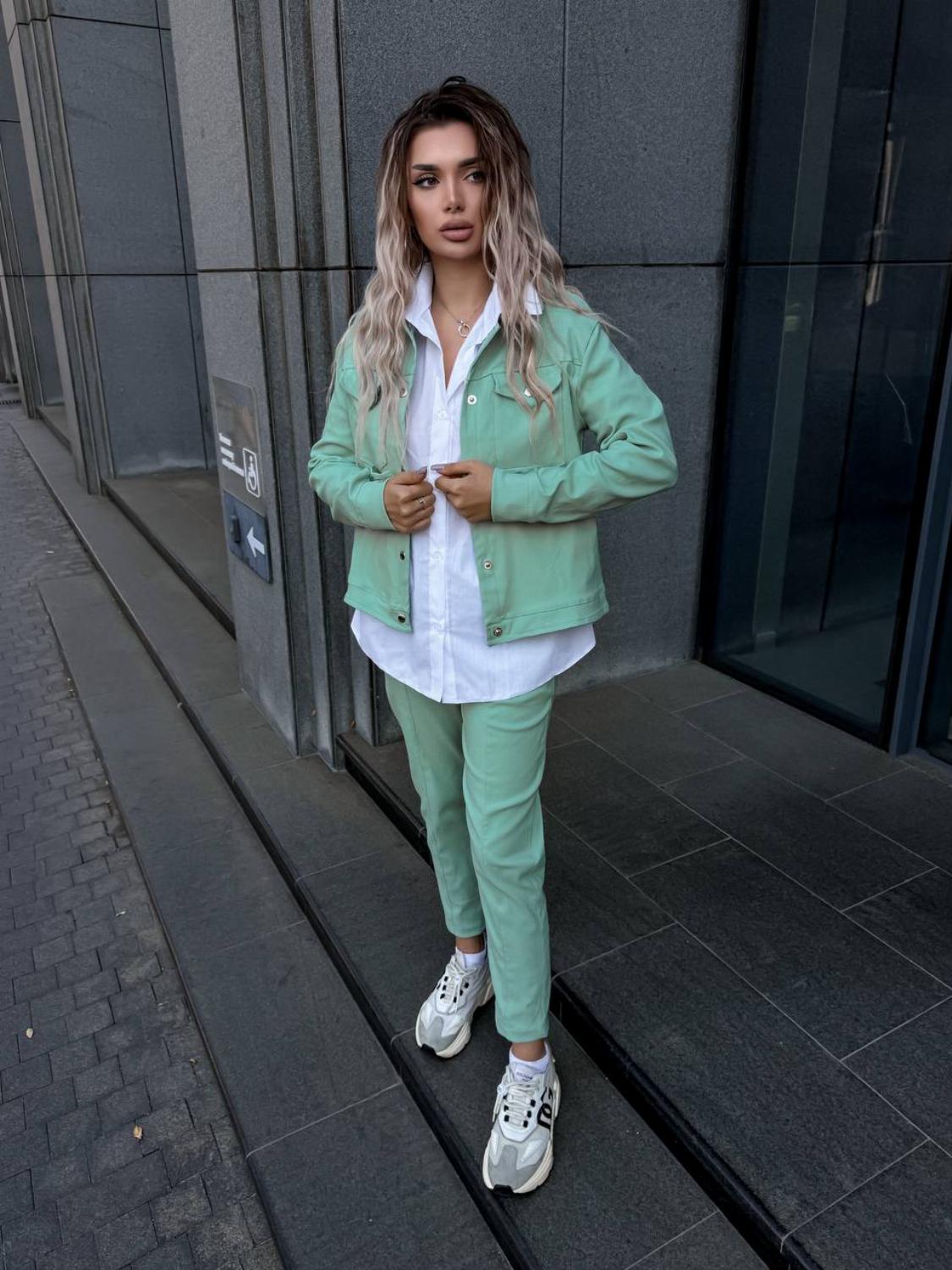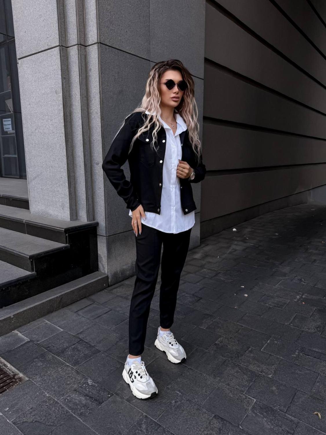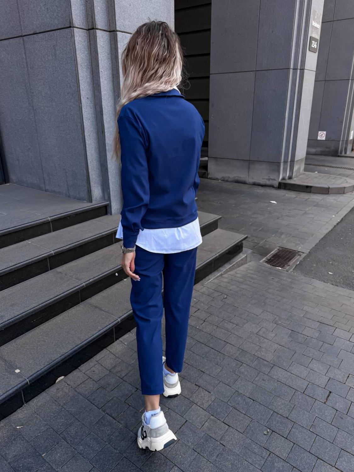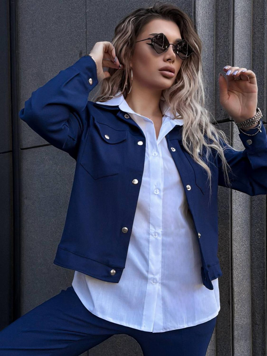 Стильний жіночий джинсовий брючний костюм-трійка з сорочкою «New York» - це вдале поєднання спортивних і класичних елементів. Костюм виконаний з дорогих і якісних матеріалів, складається з трендових котонових куртки з брюками 7/8 і модної сорочки з бенгаліну. Завдяки оригінальному дизайну він ідеально підходить для виходів в стилі кежуал і смарт-кежуал. Кожен елемент костюма можна носити окремо і поєднувати з іншими речами.
