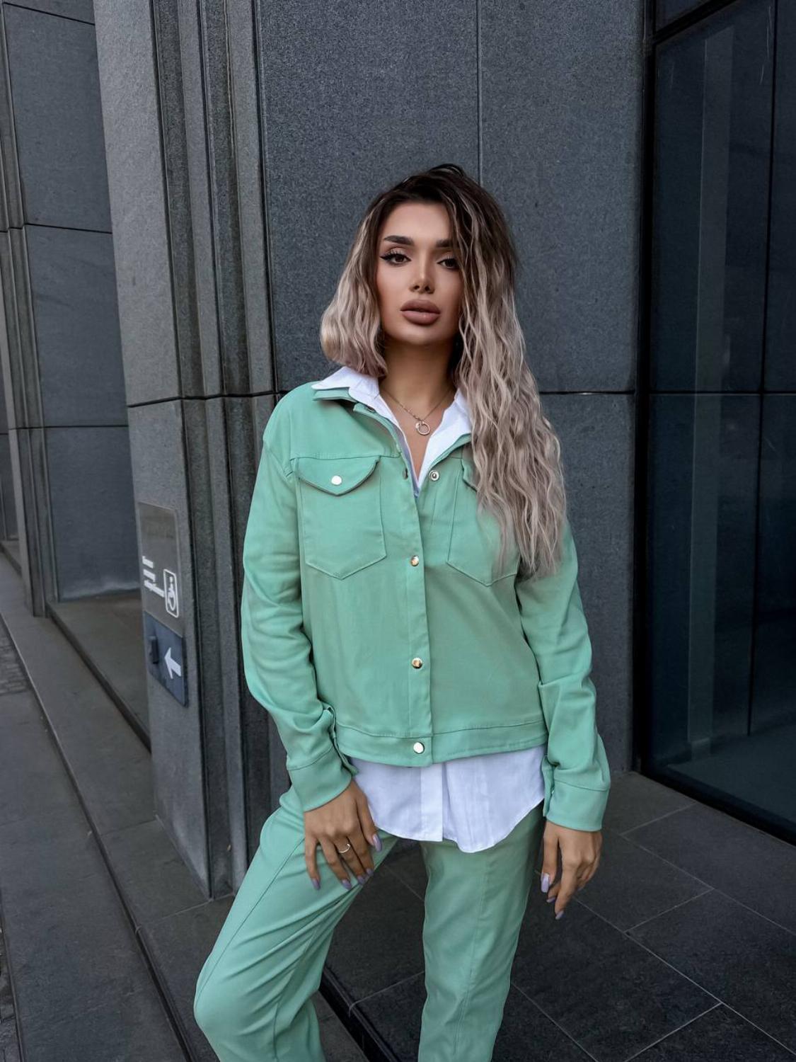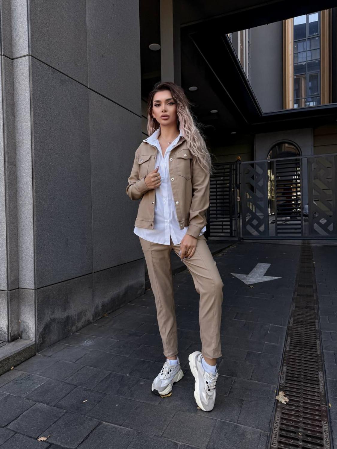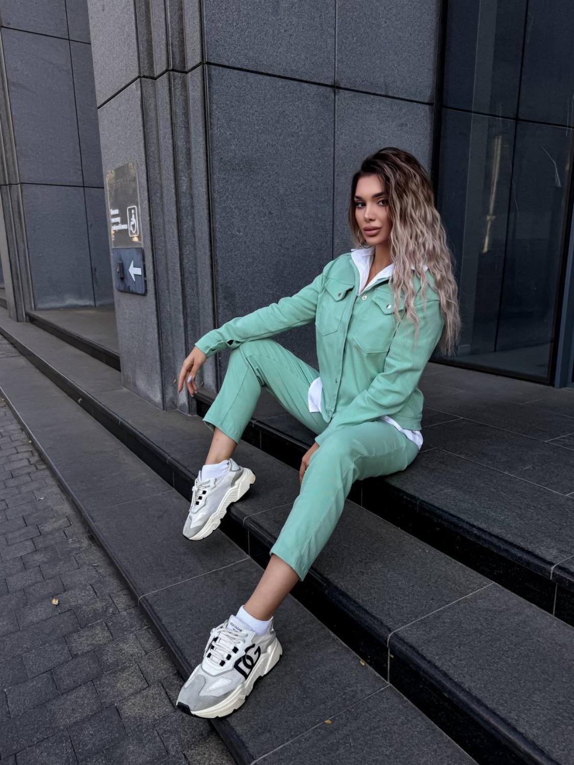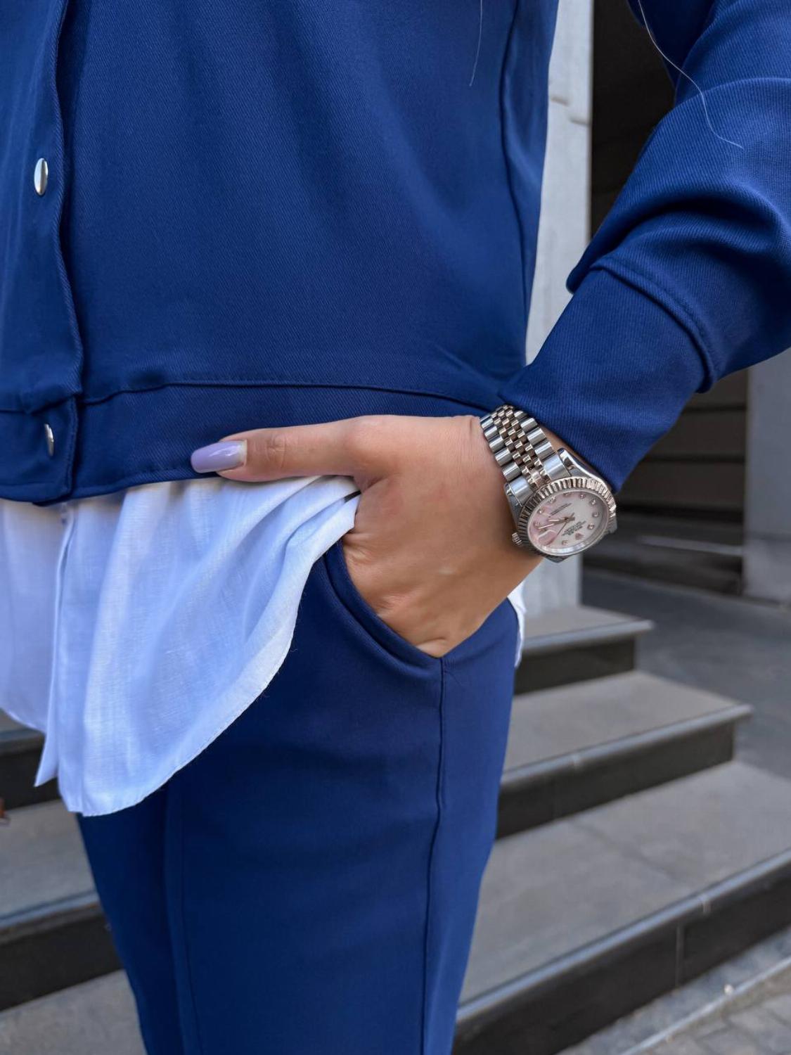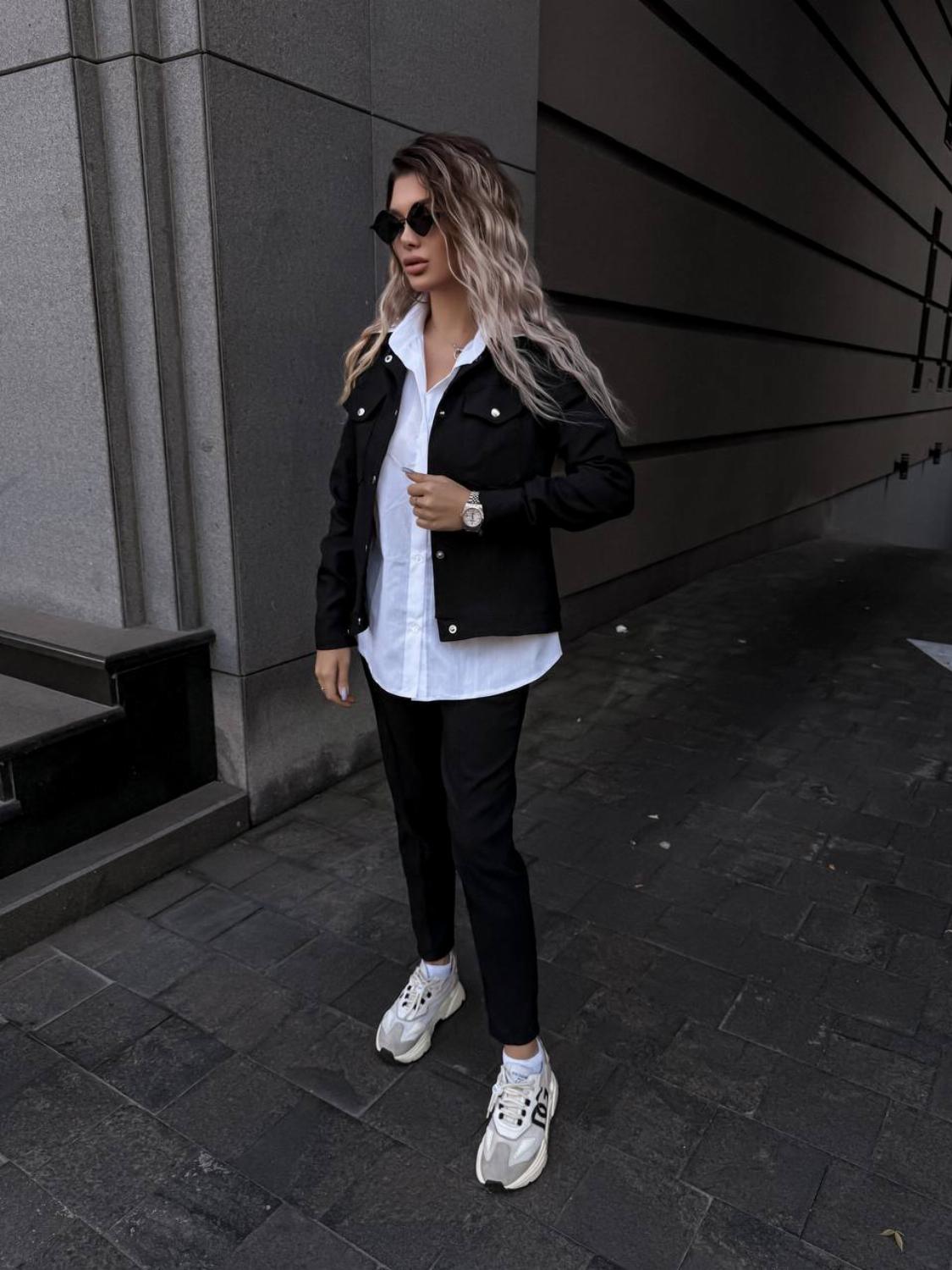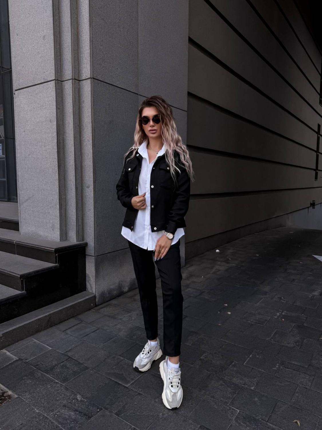 Стильний жіночий джинсовий брючний костюм-трійка з сорочкою «New York» - це вдале поєднання спортивних і класичних елементів. Костюм виконаний з дорогих і якісних матеріалів, складається з трендових котонових куртки з брюками 7/8 і модної сорочки з бенгаліну. Завдяки оригінальному дизайну він ідеально підходить для виходів в стилі кежуал і смарт-кежуал. Кожен елемент костюма можна носити окремо і поєднувати з іншими речами.