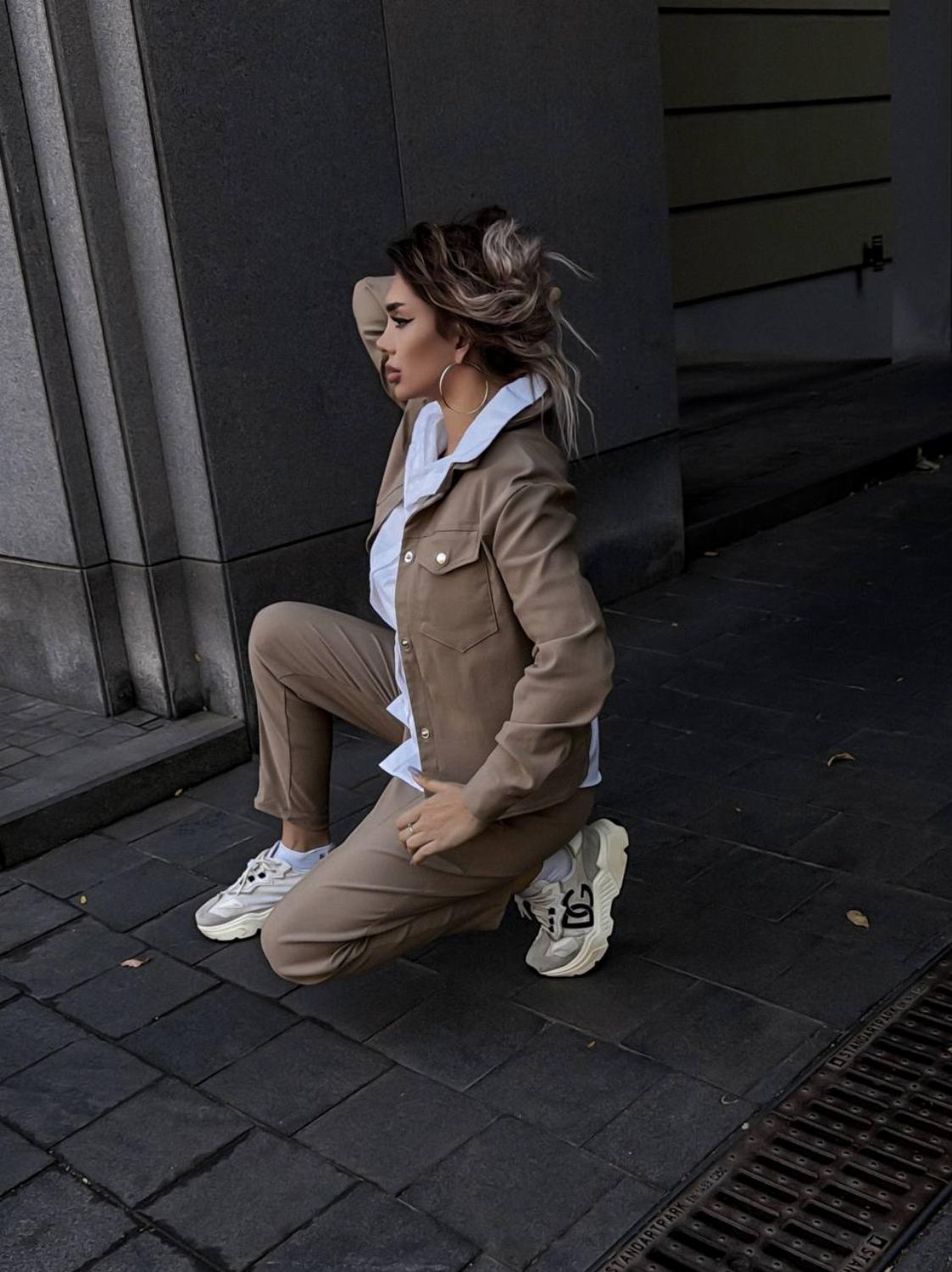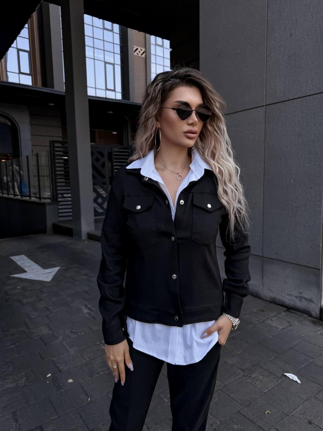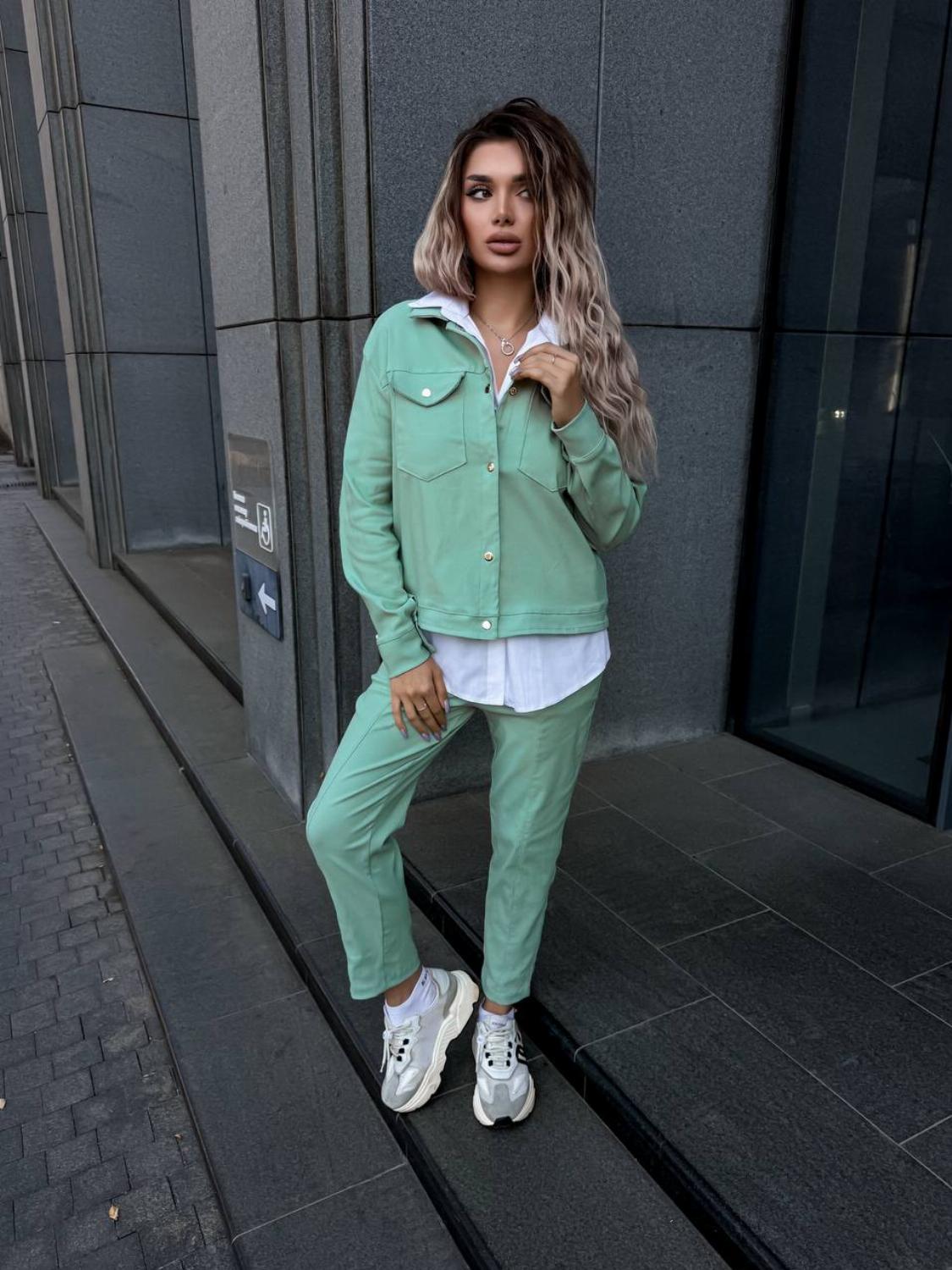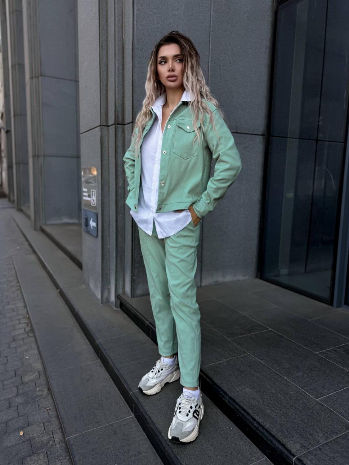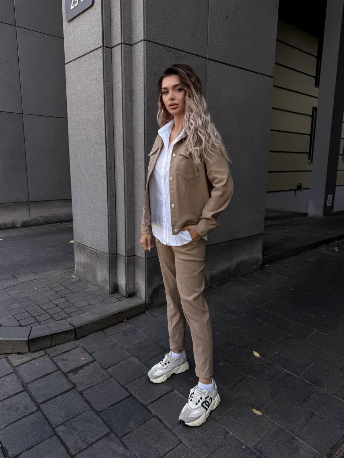 Стильний жіночий джинсовий брючний костюм-трійка з сорочкою «New York» - це вдале поєднання спортивних і класичних елементів. Костюм виконаний з дорогих і якісних матеріалів, складається з трендових котонових куртки з брюками 7/8 і модної сорочки з бенгаліну. Завдяки оригінальному дизайну він ідеально підходить для виходів в стилі кежуал і смарт-кежуал. Кожен елемент костюма можна носити окремо і поєднувати з іншими речами.