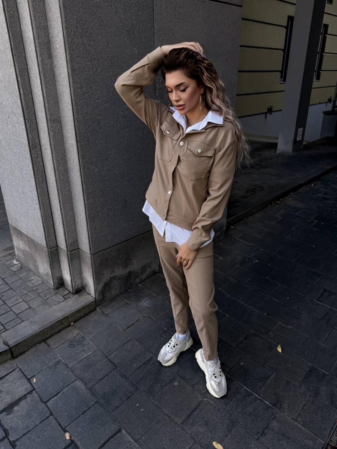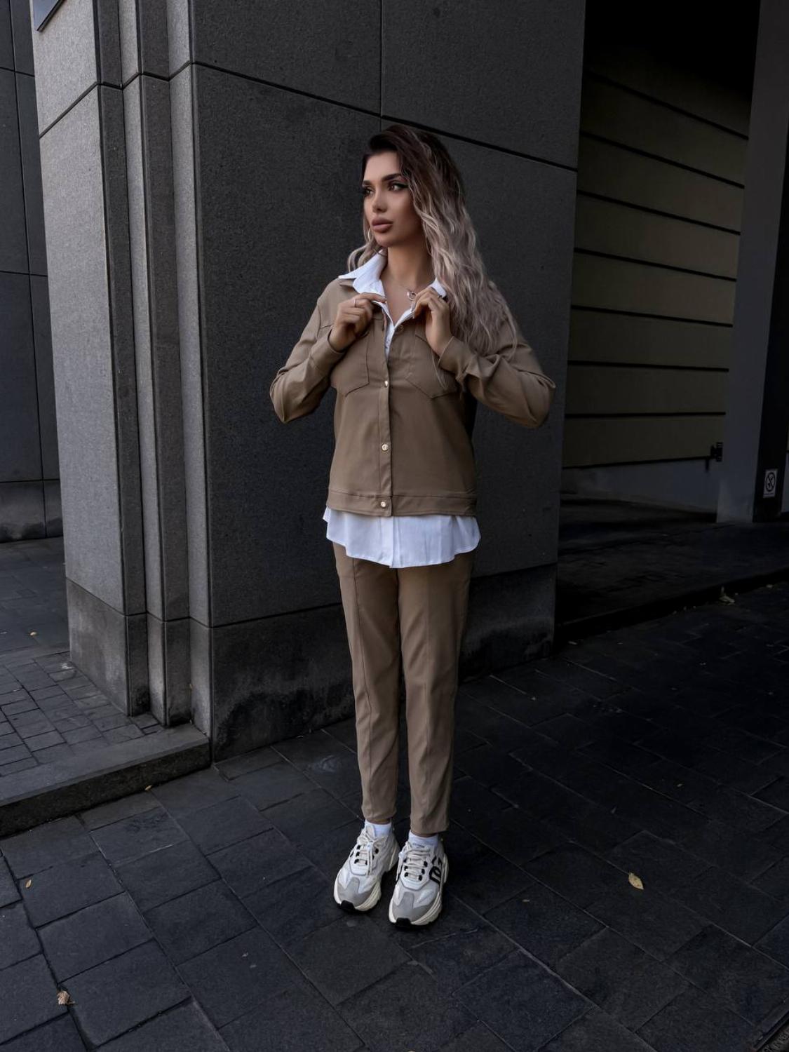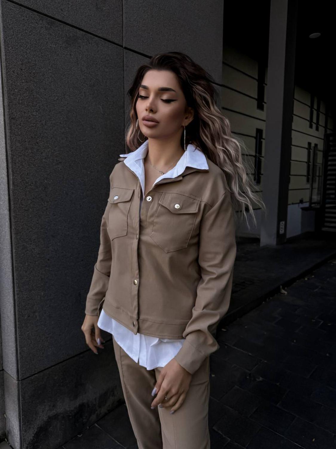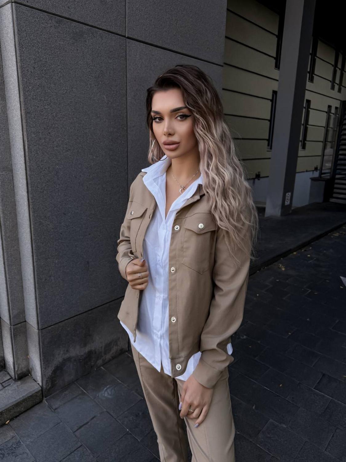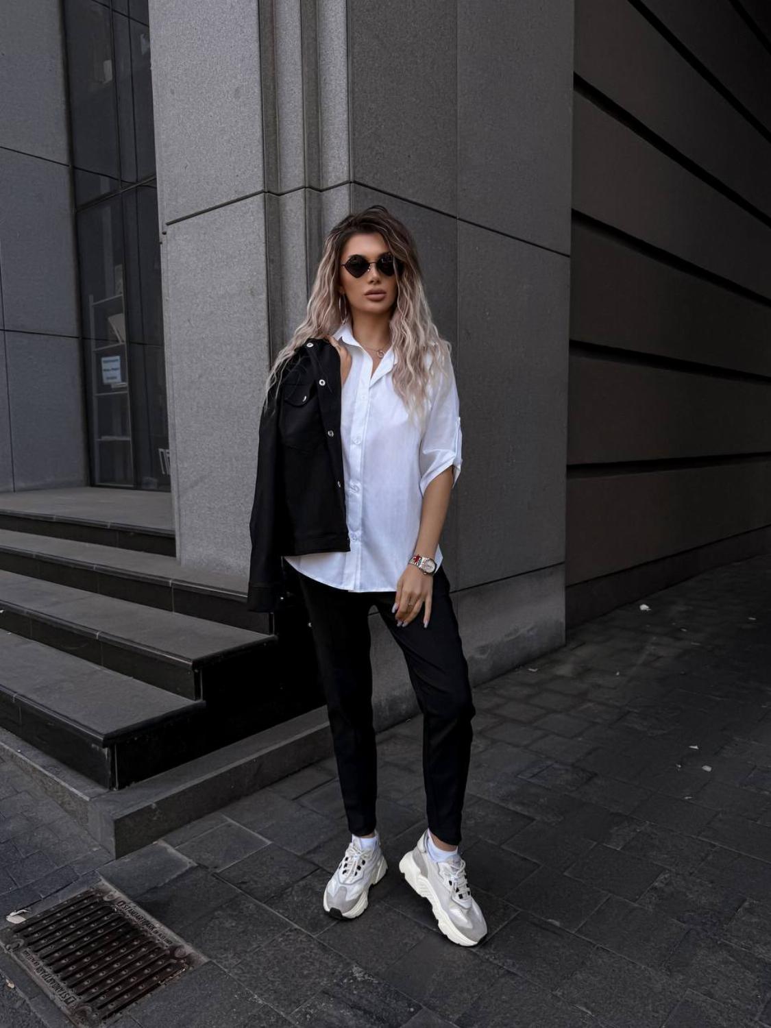 Стильний жіночий джинсовий брючний костюм-трійка з сорочкою «New York» - це вдале поєднання спортивних і класичних елементів. Костюм виконаний з дорогих і якісних матеріалів, складається з трендових котонових куртки з брюками 7/8 і модної сорочки з бенгаліну. Завдяки оригінальному дизайну він ідеально підходить для виходів в стилі кежуал і смарт-кежуал. Кожен елемент костюма можна носити окремо і поєднувати з іншими речами.