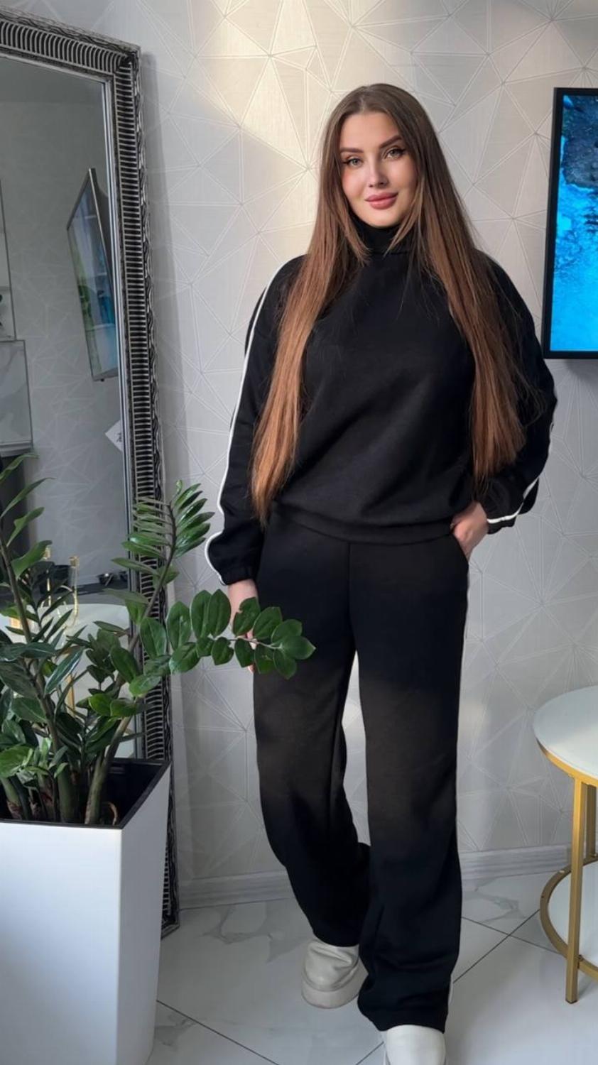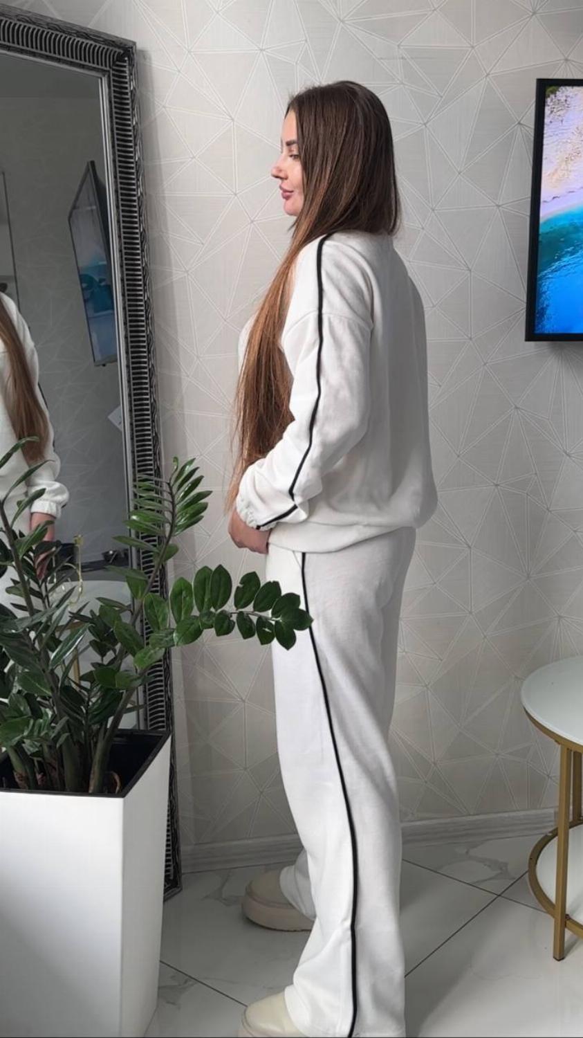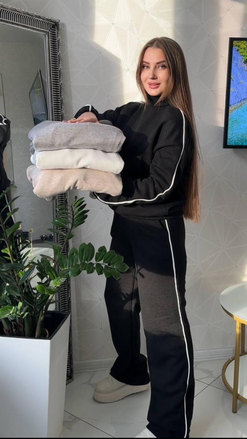 Зручний костюм Daffy виконаний з якісної та приємної тканини - ангора класу люкс. Виглядає дуже стильно, добре зберігає зовнішній вигляд навіть після численних прань. Така тканина відрізняється особливою ніжністю, хорошою зносостійкістю і гіпоалергенними властивостями. Костюм зі штанами можна носити хоч кожен день, а також його легко поєднувати окремо і з іншими речами. Змінюйте свій образ швидко та без зусиль.