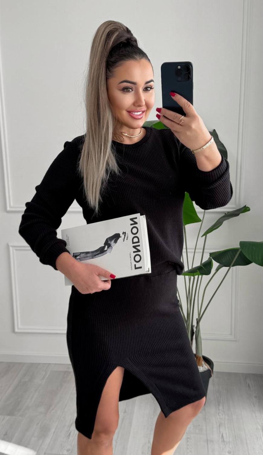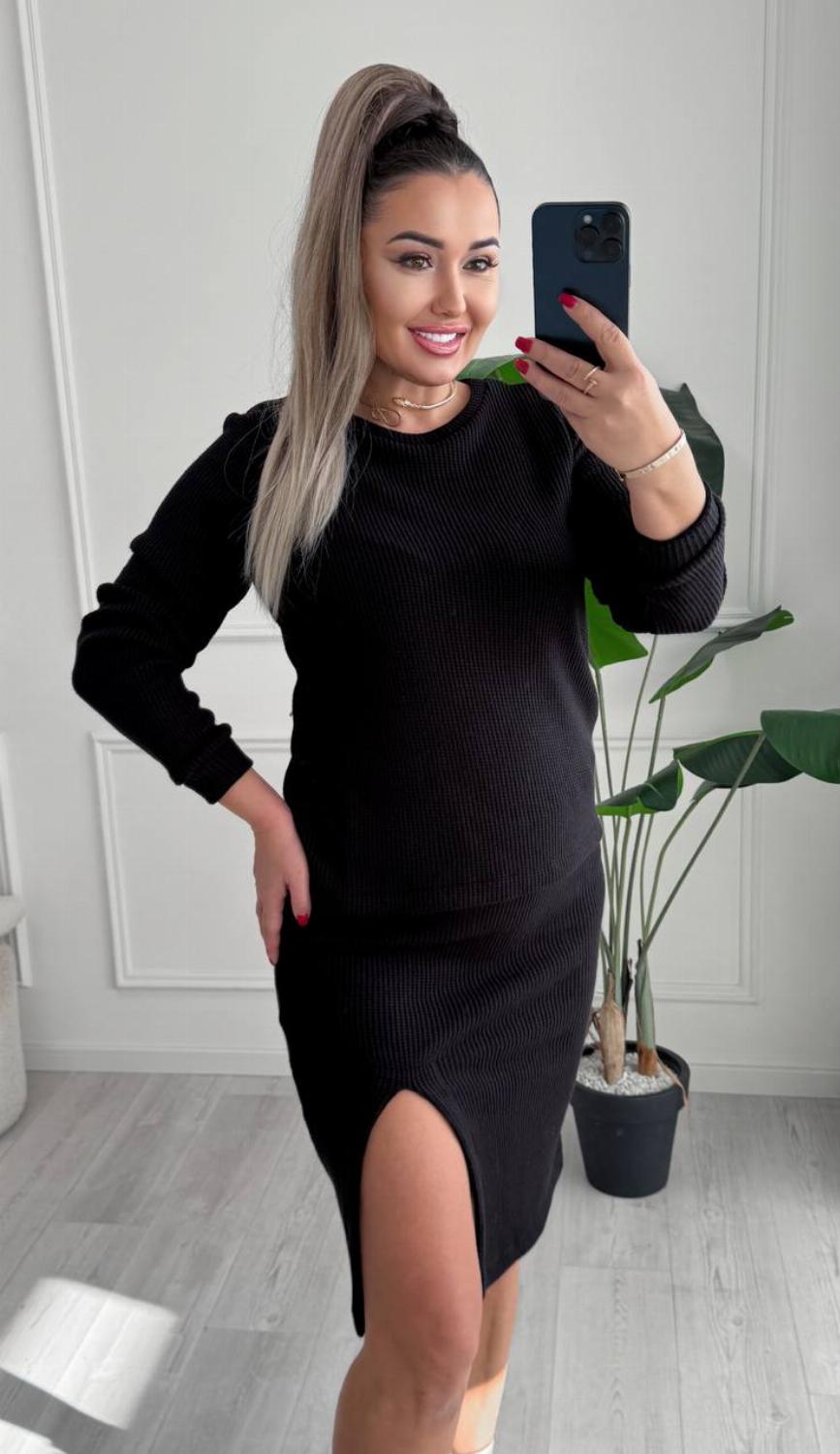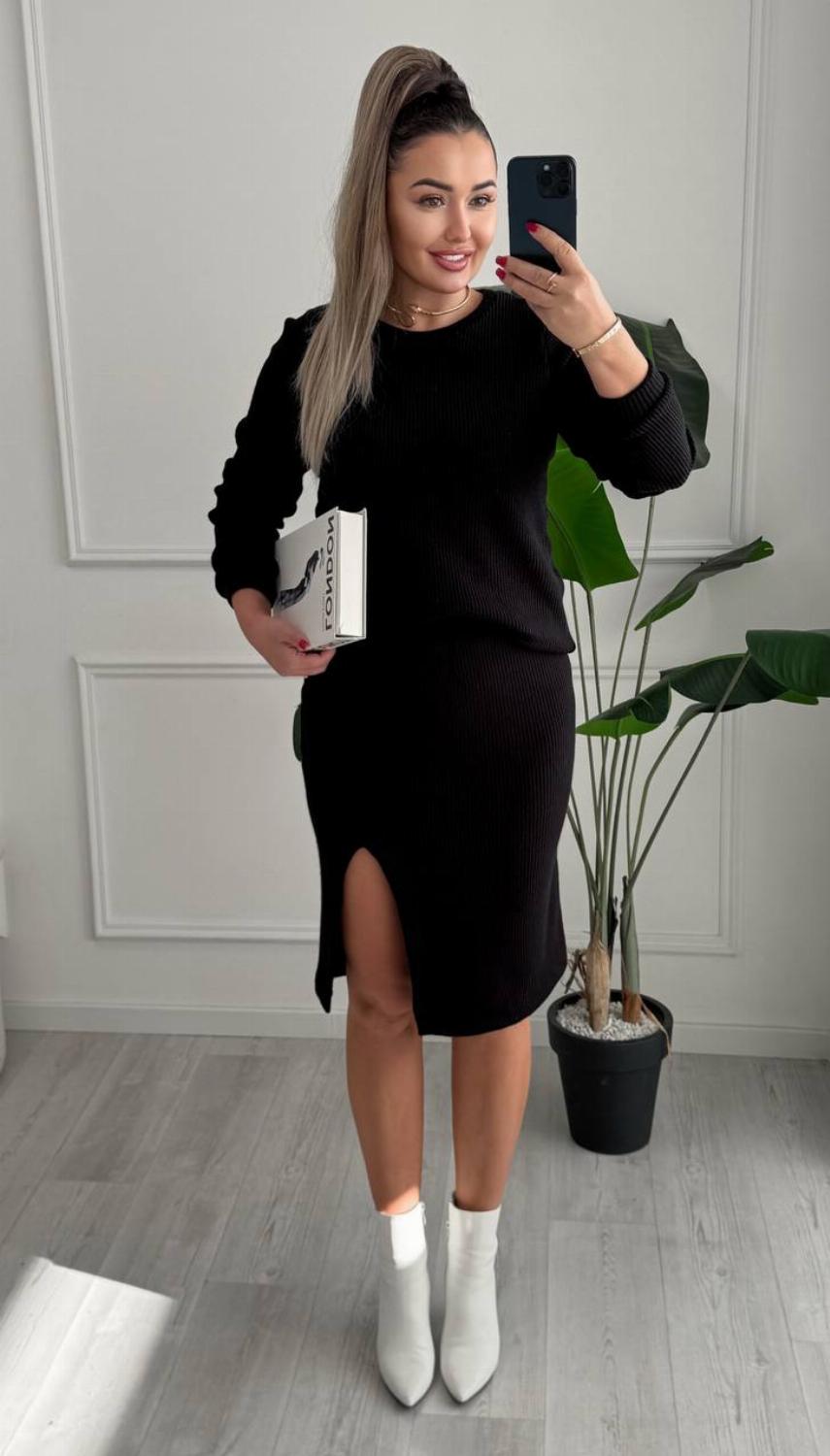 Акцентні деталі: спідниця довжини міді з грайливим розрізом додає впевненості та легкості кожному кроку.