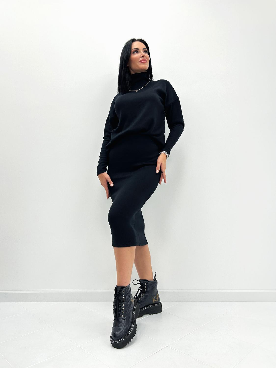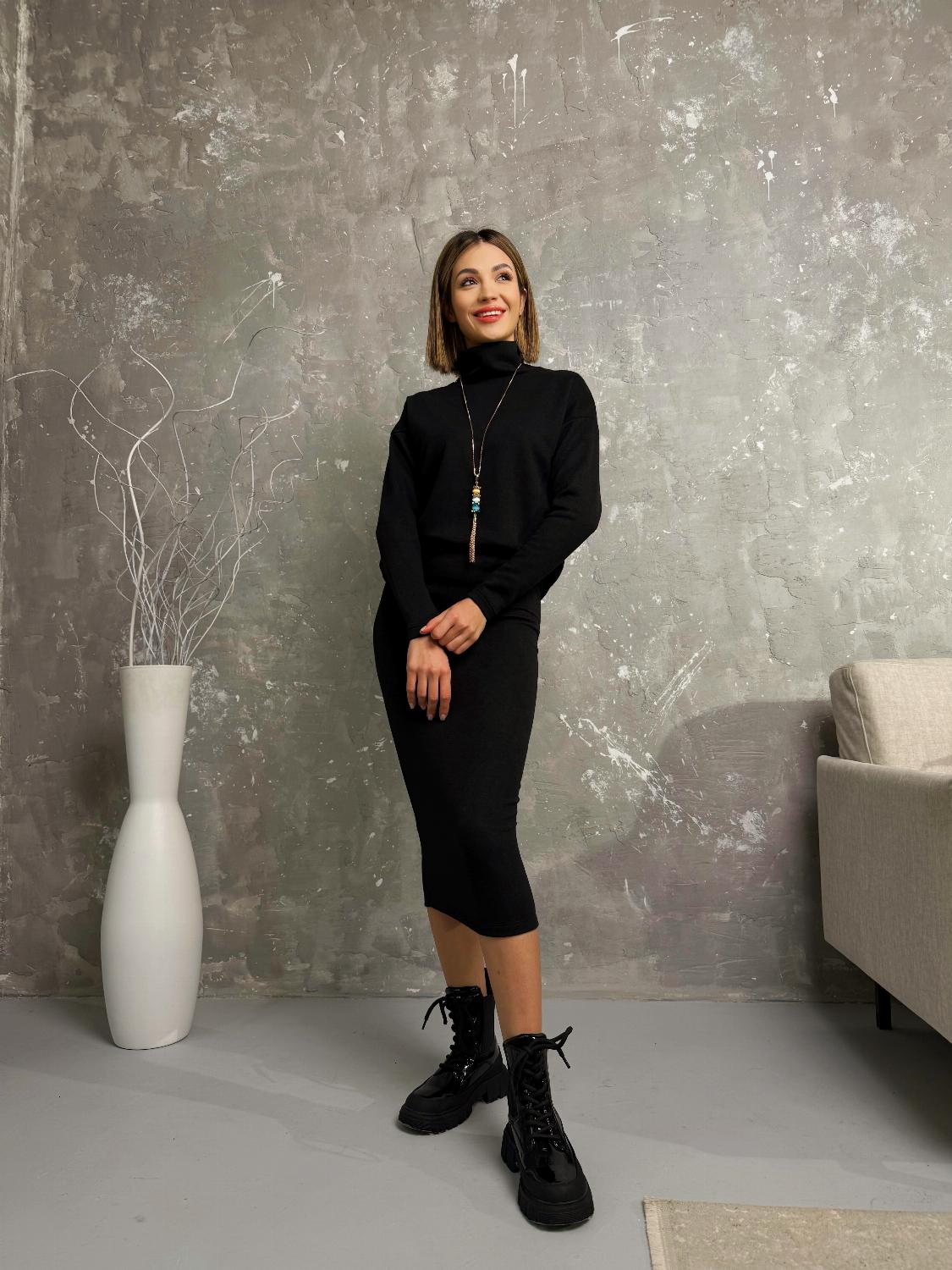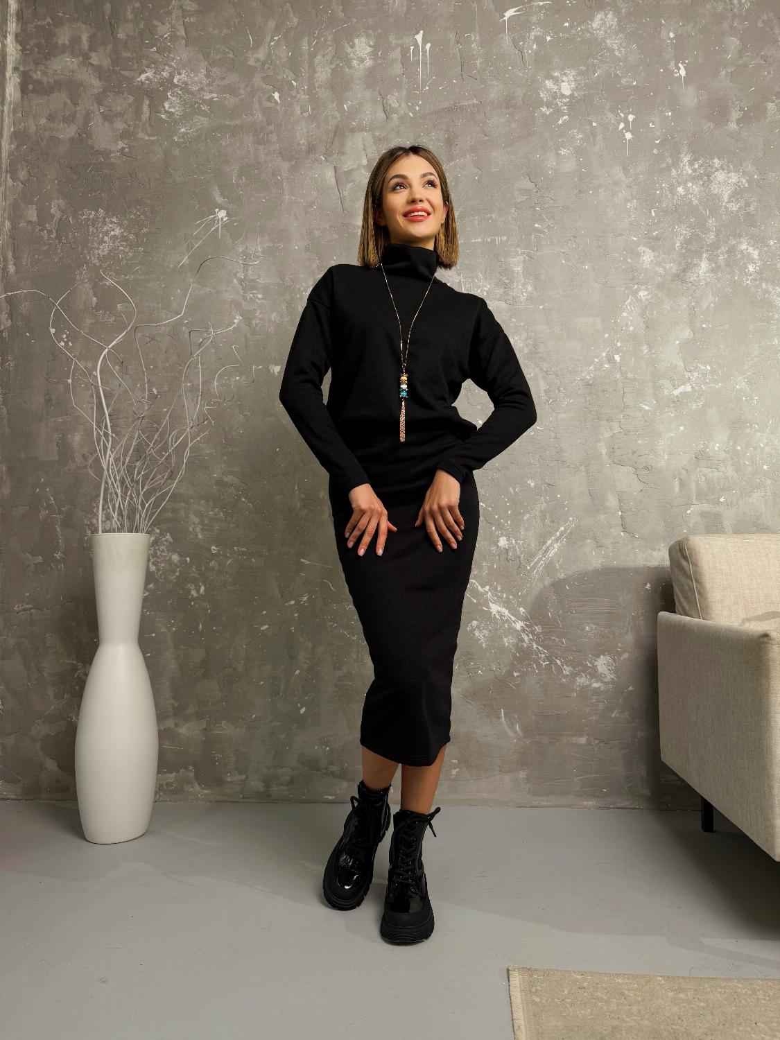 Актуальна новинка – жіночий ангоровий костюм "Valion". Стильний комплект-двійка складається зі спідниці та гольфу. Кофта з високим коміром вільно сідає по фігурі та добре захищає від холоду. Облягаюча спідниця міді підкреслює жіночний силует, але не сковує рухів. Низ костюма має високу посадку та м'який пояс на резинці.