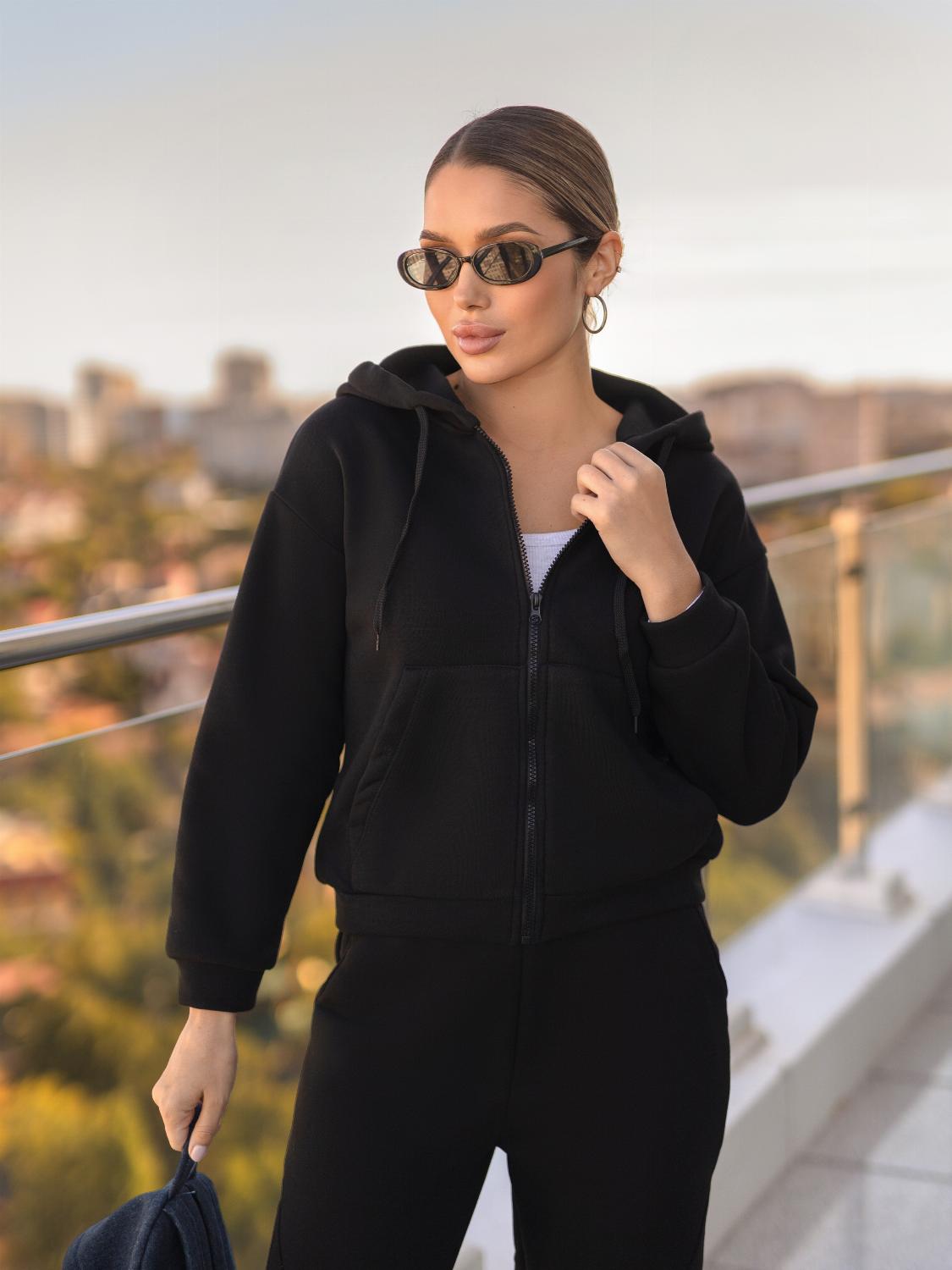 - Вільне худі на блискавці з великою кишенею «кенгуру» та капюшоном на шнурках — практично, стильно й комфортно для щоденного носіння.