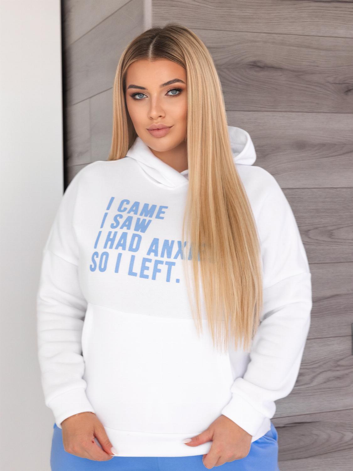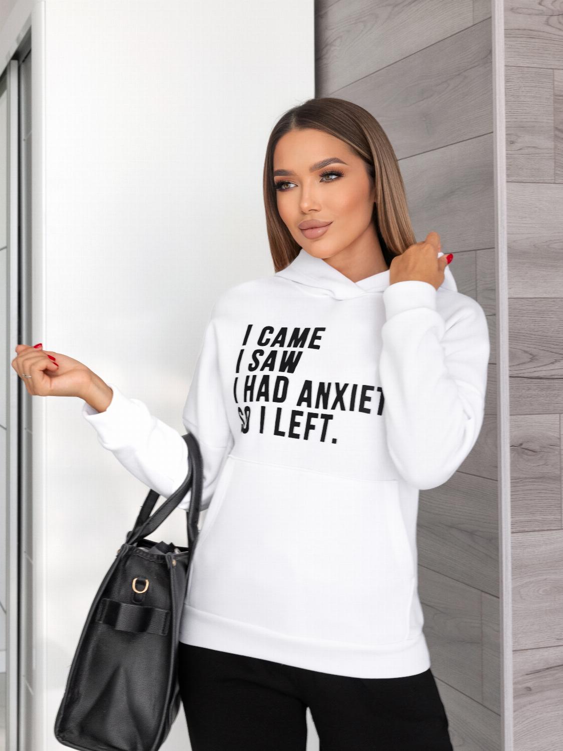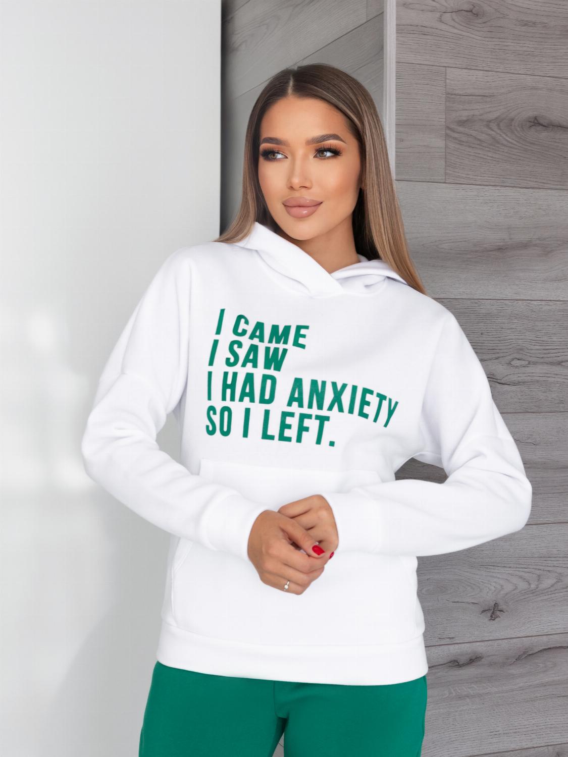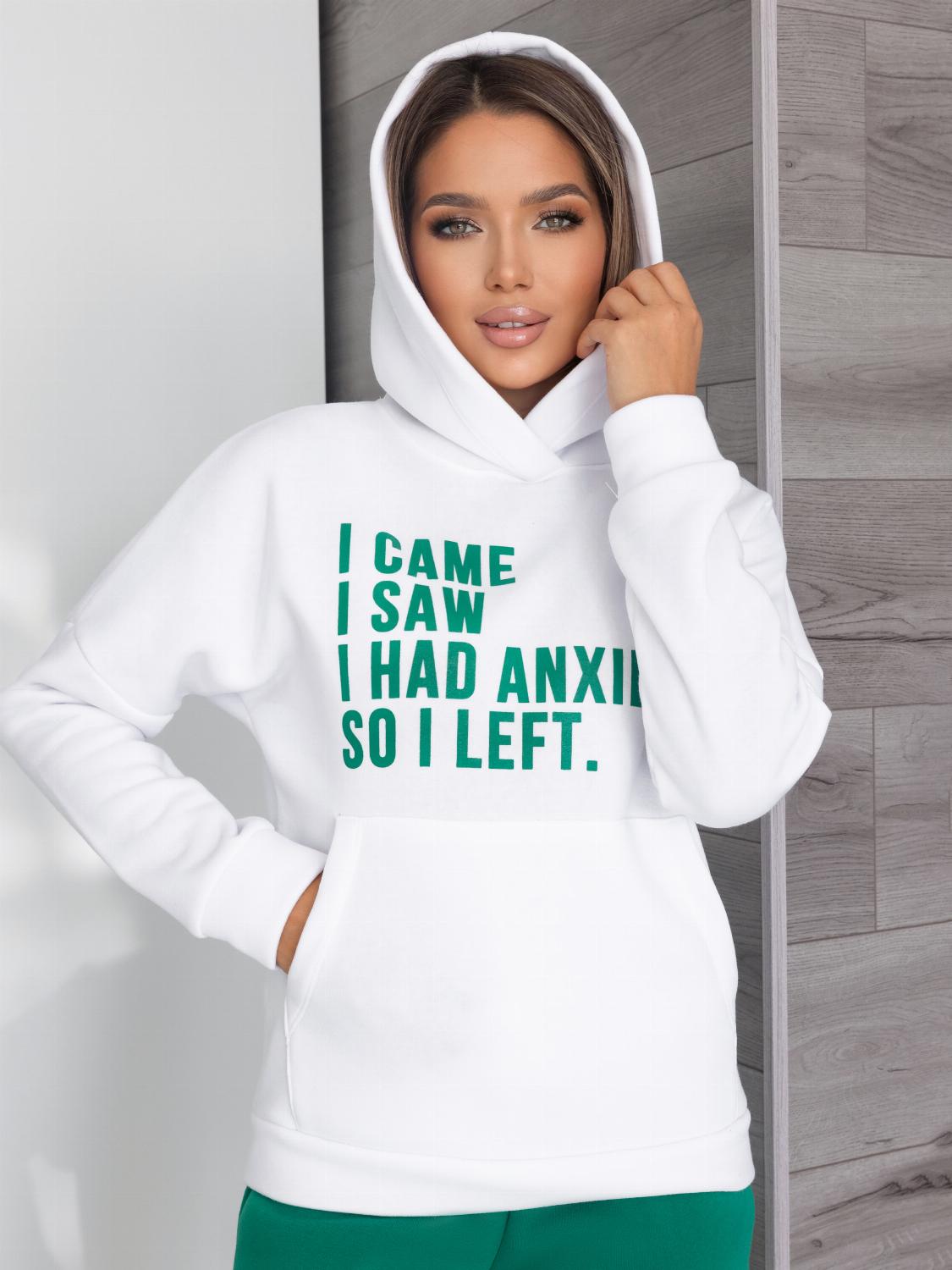 - Кофта виконана у форматі худі з об’ємним капюшоном та кишенею «кенгуру», яка додає не тільки зручності, а й стильності образу. Декорований сучасним принтом-написом, що підкреслює індивідуальність.
