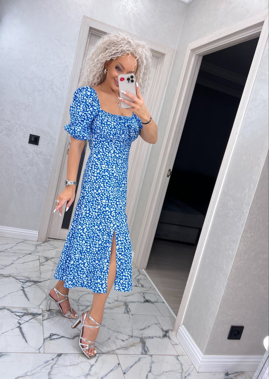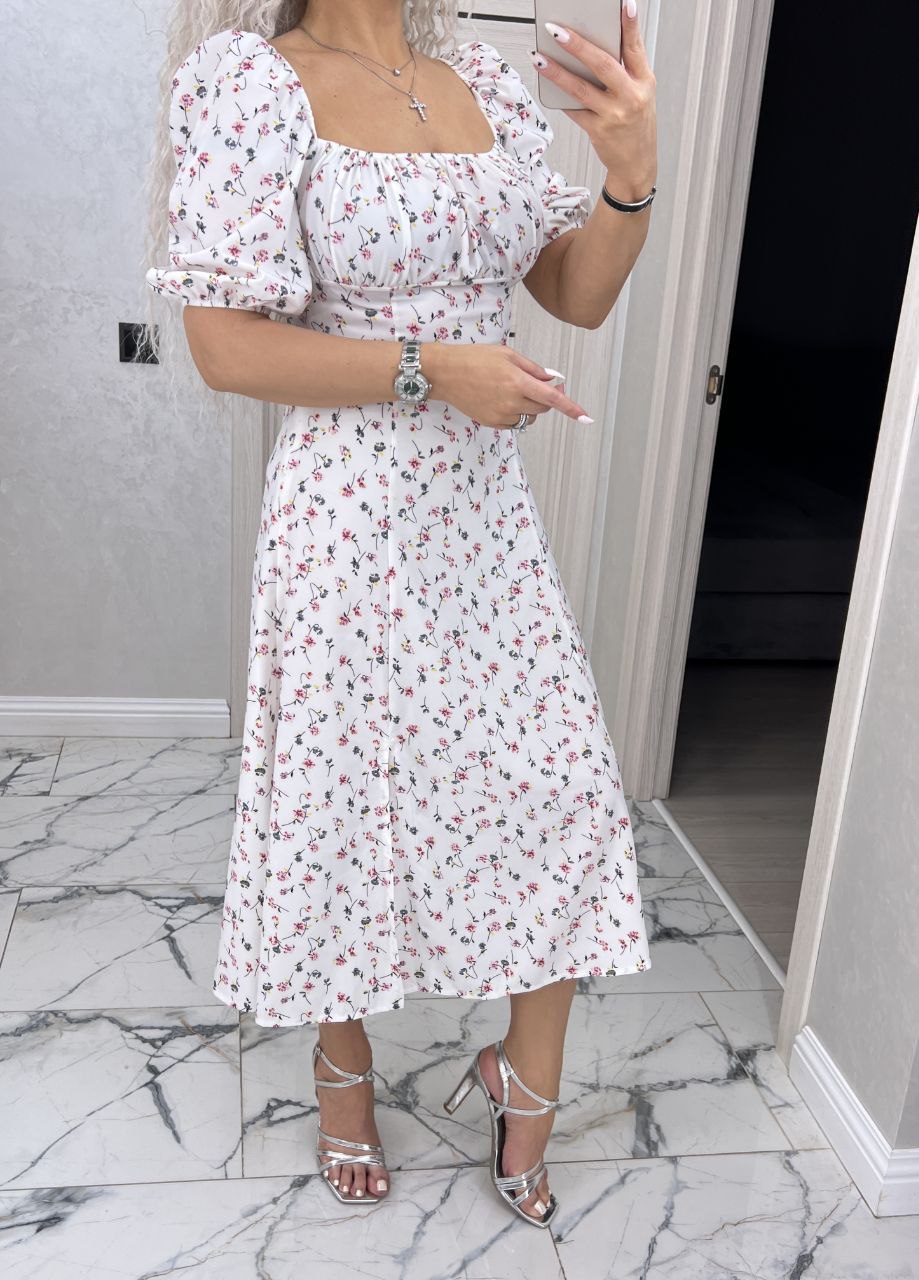 Красива романтична літня легка сукня міді з відкритими плечима "Catherine" – відмінний варіант для комфортного повсякденного носіння. Модель поєднує в собі практичність та лаконічний дизайн: крій А-силует, розріз збоку, довжина нижче коліна, можливість носити з відкритими плечима. Така модель відмінно поєднуватиметься з сандалями або босоніжками на невеликому і високому підборах. Легка сукня з квітковим принтом виготовлена із софту. Повітряний матеріал приємний до тіла і не викликає дискомфортних відчуттів у спеку.