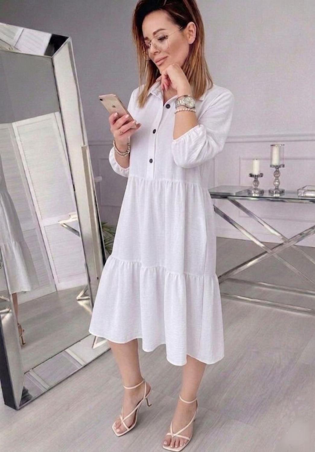 Стильна однотонна сукня з об'ємними рукавами батал "Mirabel" чудово підкреслить ваш неповторний, незабутній образ. Така сукня ідеально сидить на будь-якому типу фігури, не сковує рухів. Такий крій сукні трендовий в цьому сезоні, тому будьте на хвилі стилю! Дана модель пошита з якісного матеріалу, не линяє та не вигоряє на сонці. Вироби з такої тканини відмінно підійдуть для носіння в літню спеку. Родзинка сукні - об'ємні рукави-ліхтарики.