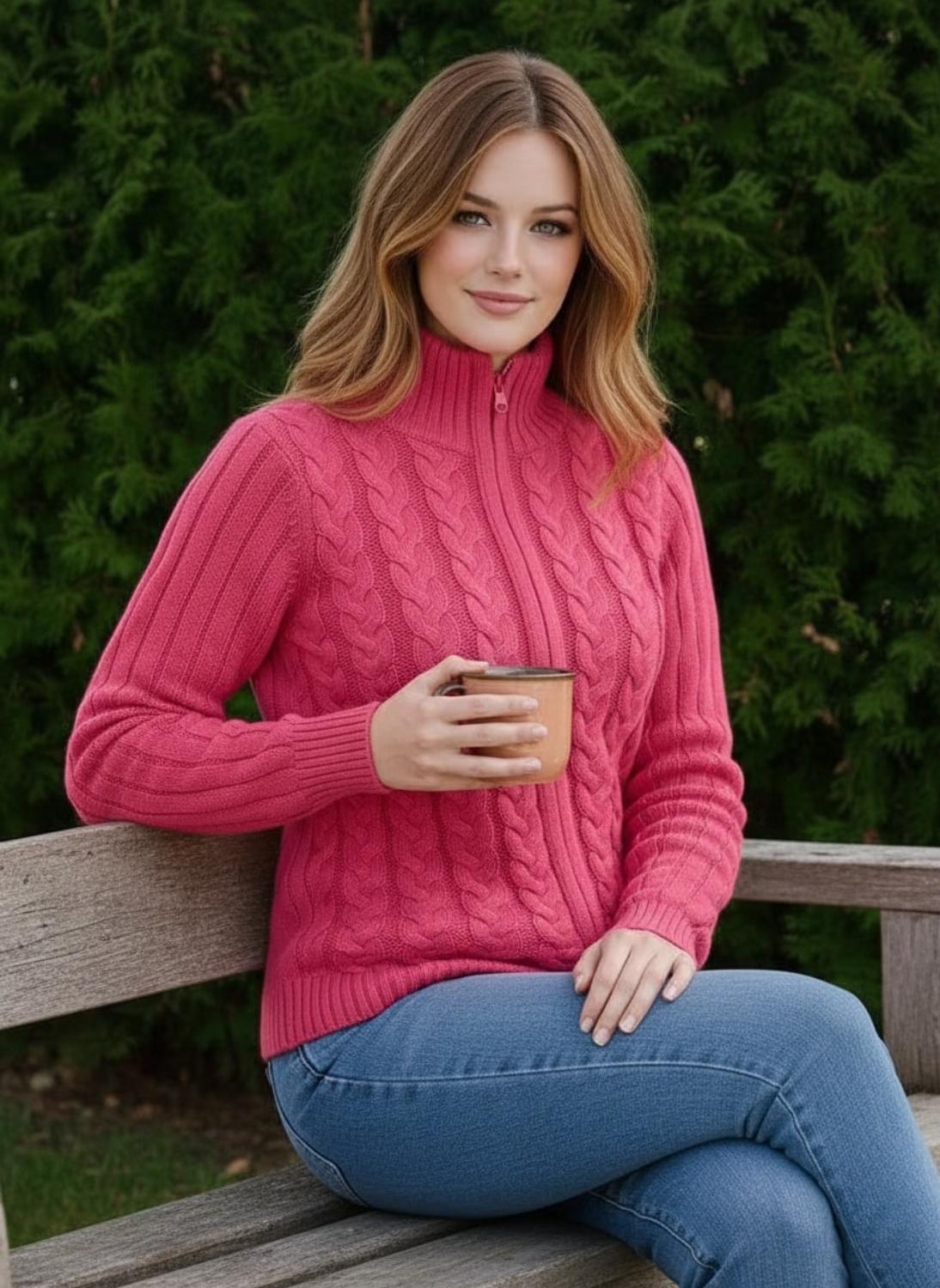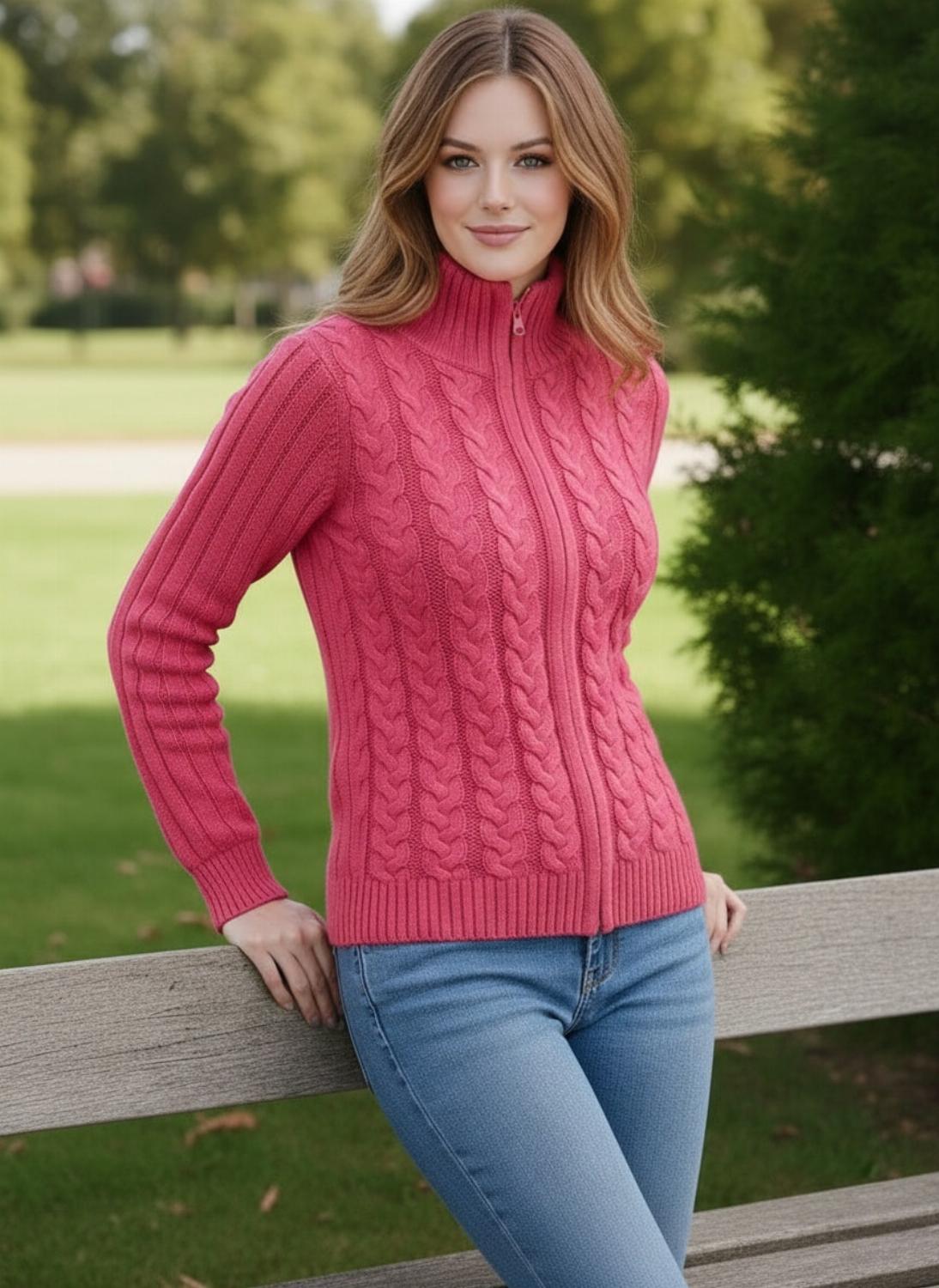 Зустрічайте новинку, що зігріє цієї зими та додасть яскравості вашому гардеробу. Цей кардиган-кофта на блискавці — ідеальне поєднання класичного візерунка «коси» та сучасного комфорту.
