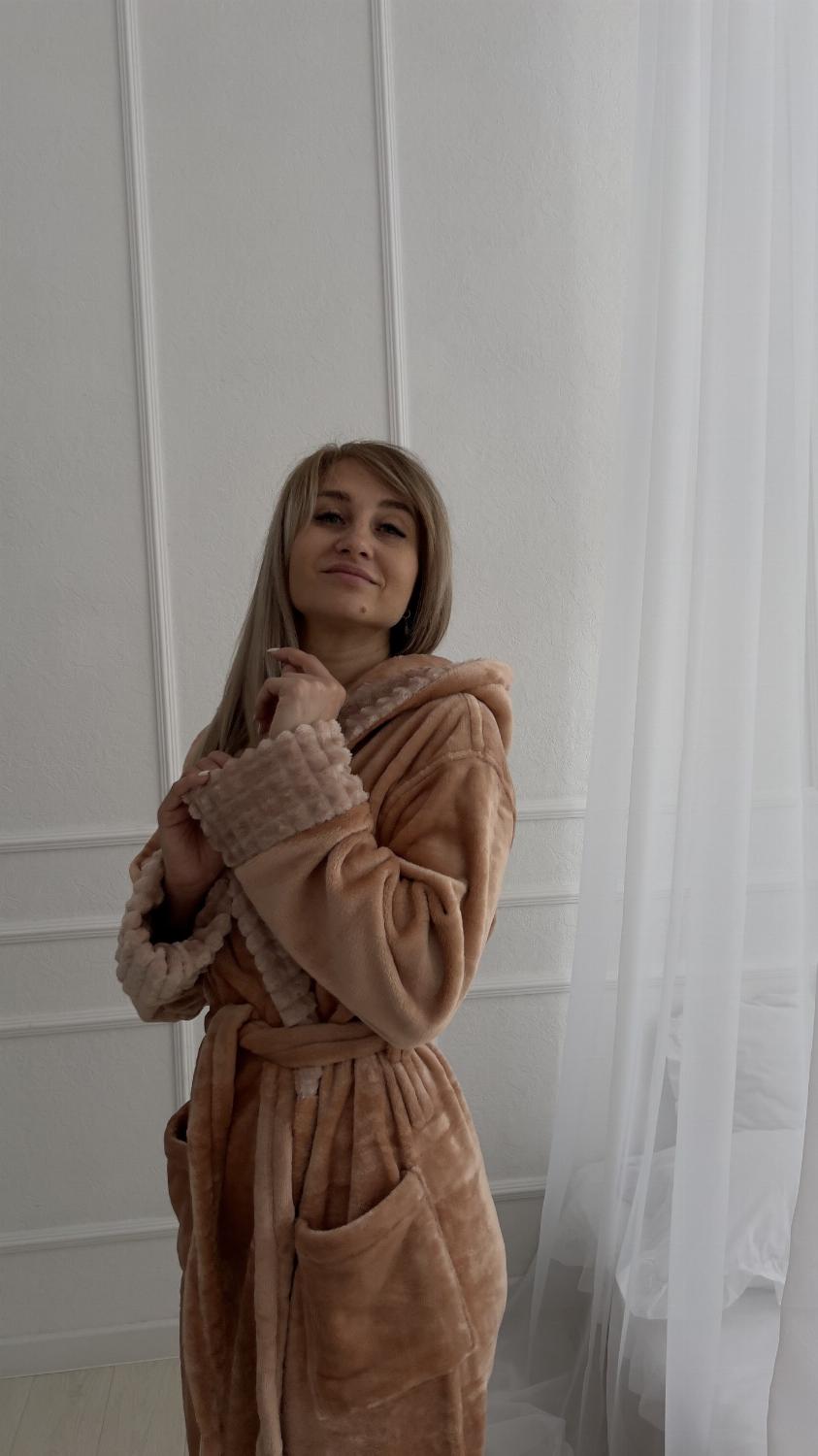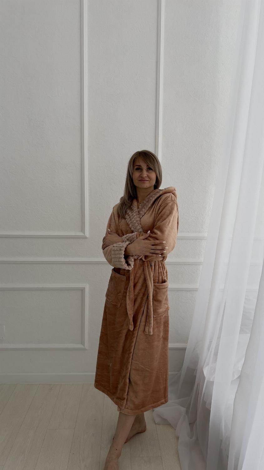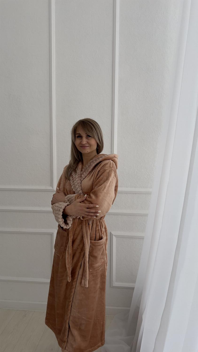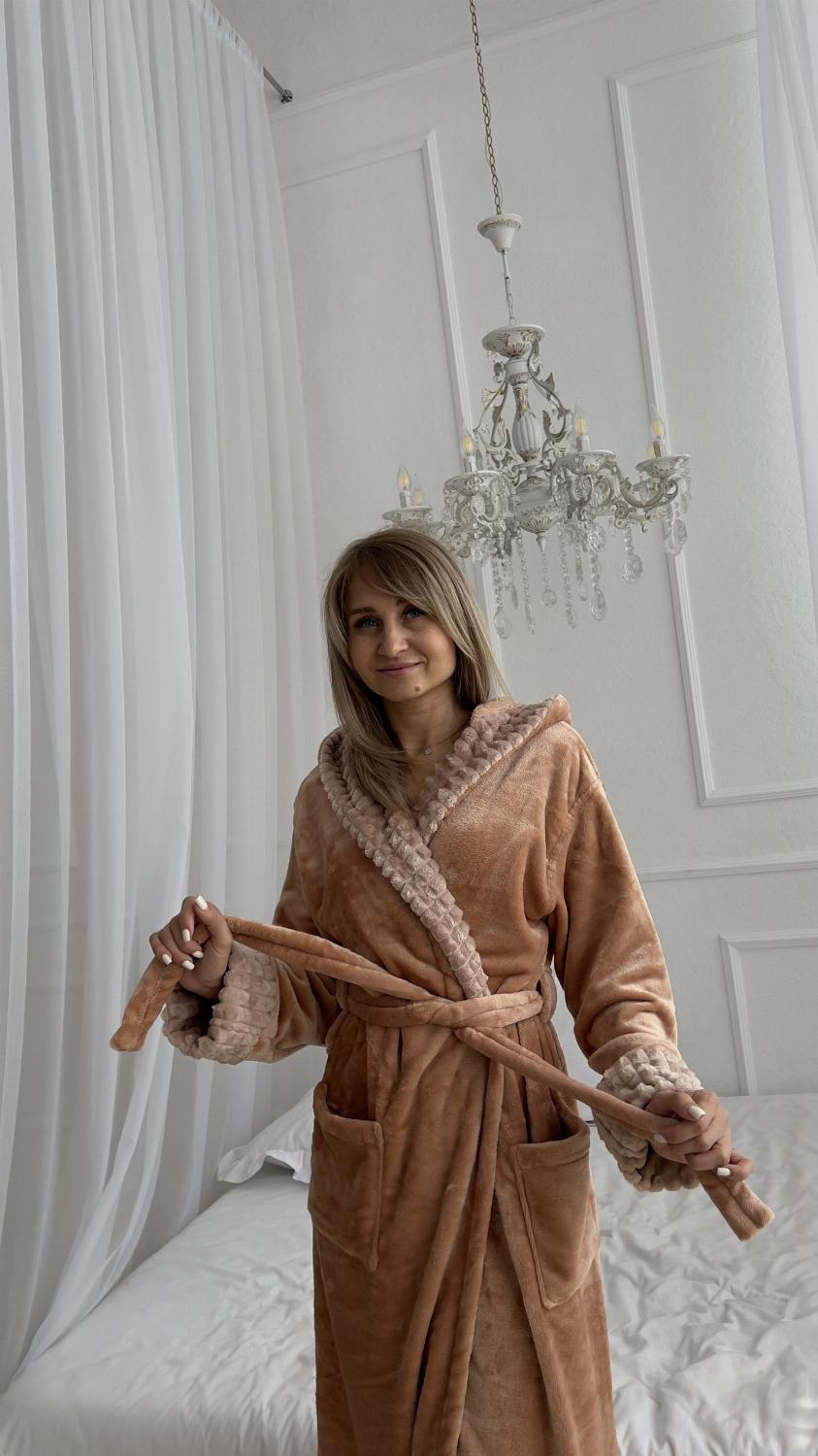Стильний жіночий плюшевий халат з капюшоном із турецької махри - це незамінна річ у домашньому побуті. Такий халатик нагоді на кожен день як просто для носіння будинку, так і після ванни. Дуже м'який і приємний до тіла, зав'язується на поясок, з боків є кишені. Розмір регулюється завдяки запаху, що дозволяє моделі сидіти ідеально на дівчат будь-якої комплекції.
