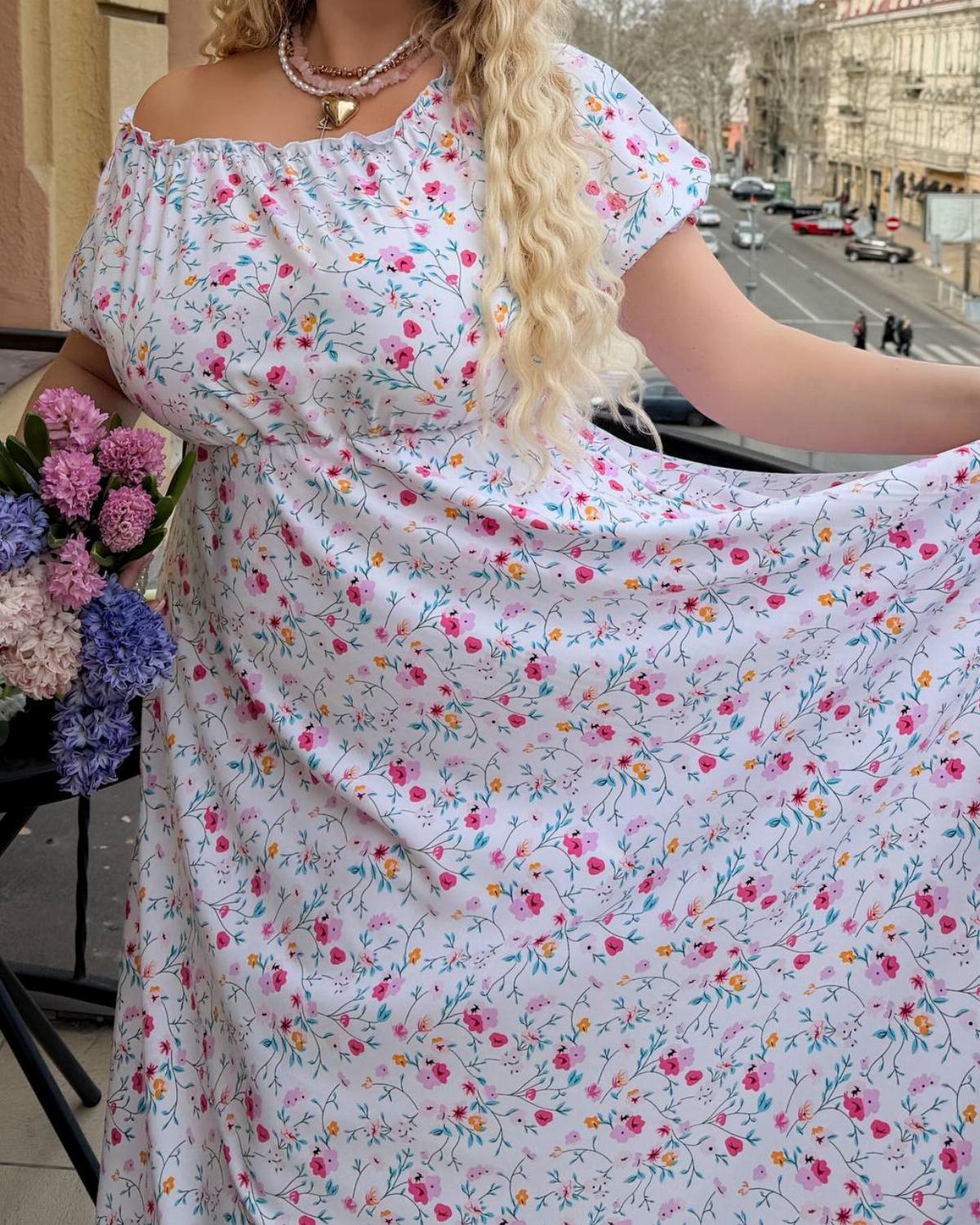 Ідеальна посадка: Еластична резинка на талії та плечах дозволяє носити сукню у двох варіантах — кокетливо відкривши плечі або у класичному стилі.