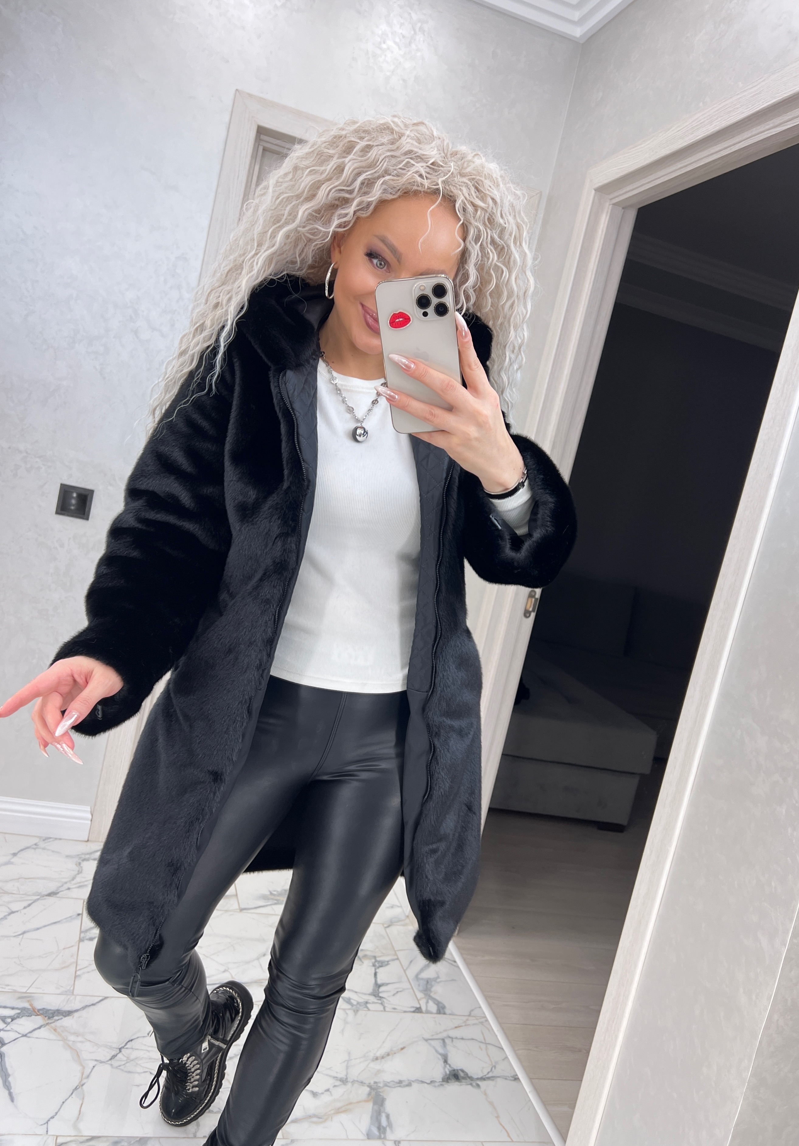 Чудова шуба з високоякісного екохутра під канадську гладку норку. Модель має прямий крій, прекрасний теплий капюшон і місткі прорізні кишені з боків. Виріб застібається на практичну і зручну блискавку. Побалуйте себе теплою і стильною новинкою!