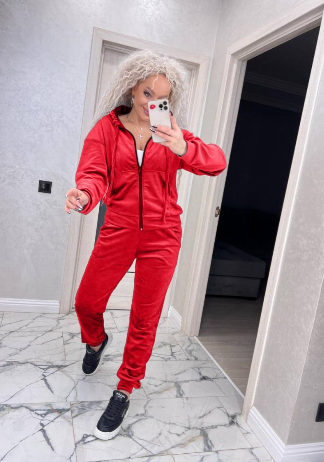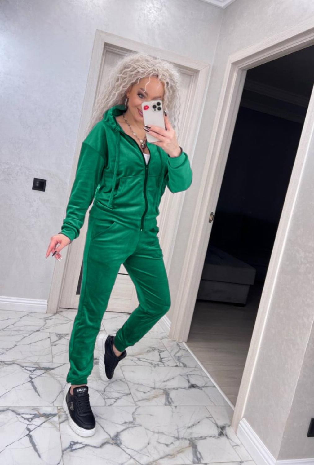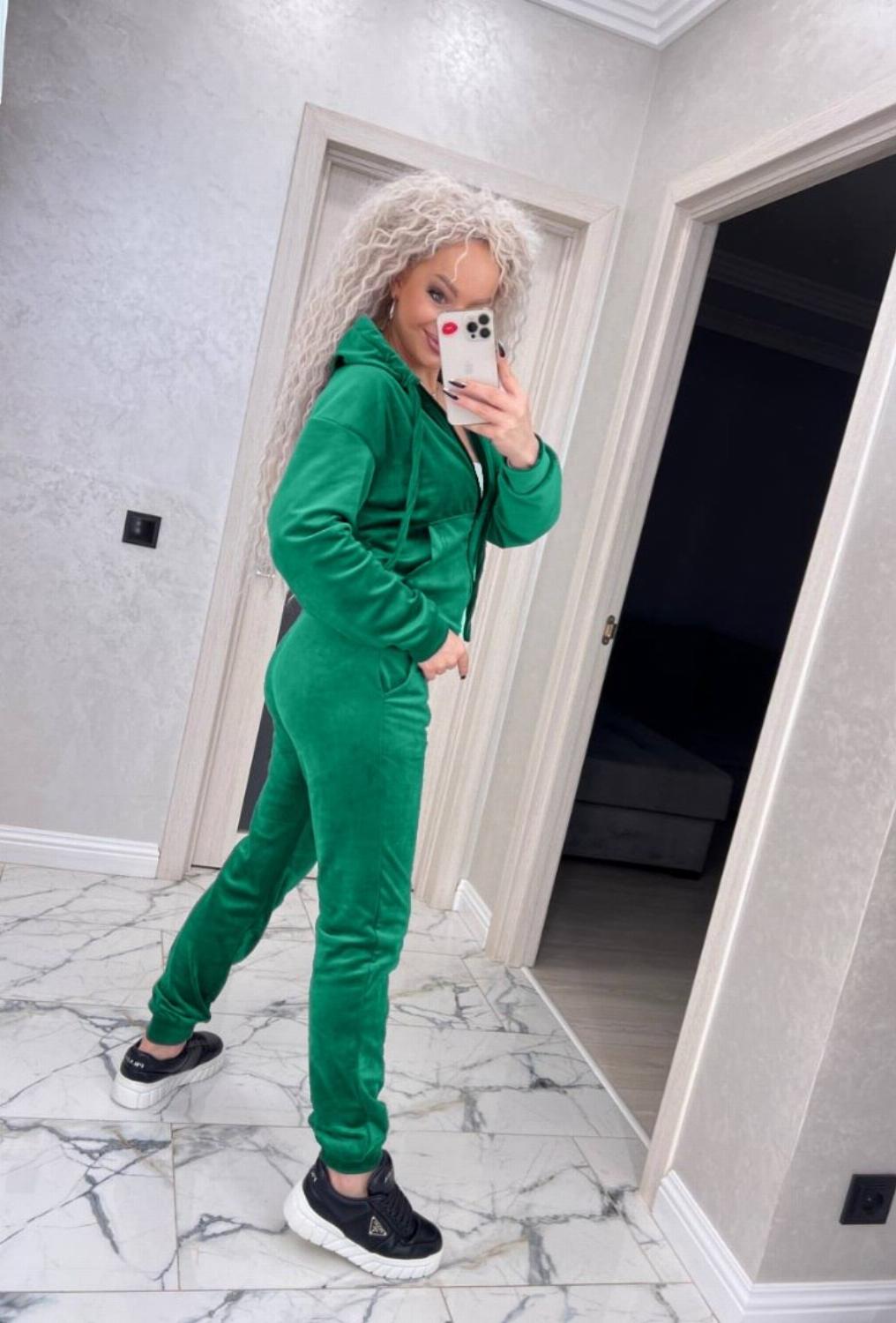 Велюровий жіночий спортивний костюм на блискавці «Делюкс» – тренд цього сезону. Костюм складається з кофти з капюшоном на блискавці, кишень з боків і брюк на резинці. Виготовлений з королівського оксамиту, м'який і приємний до тіла. Дуже зручний і практичний, підходить на кожен день.