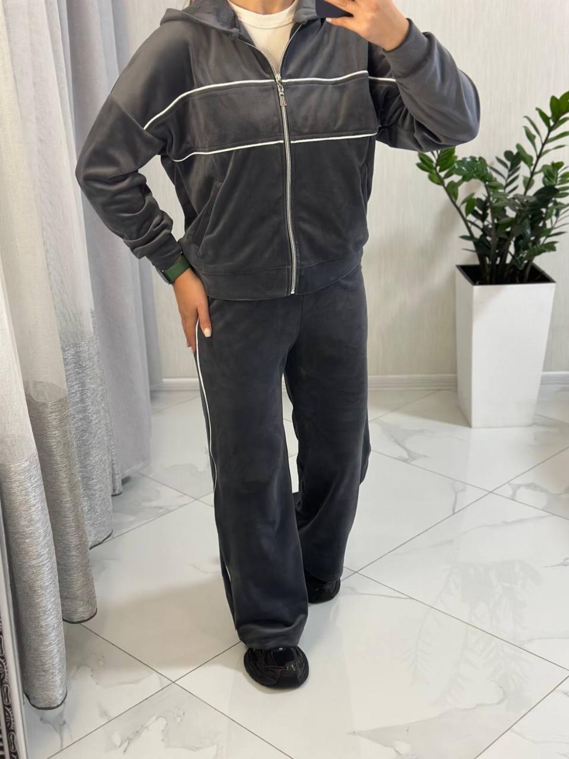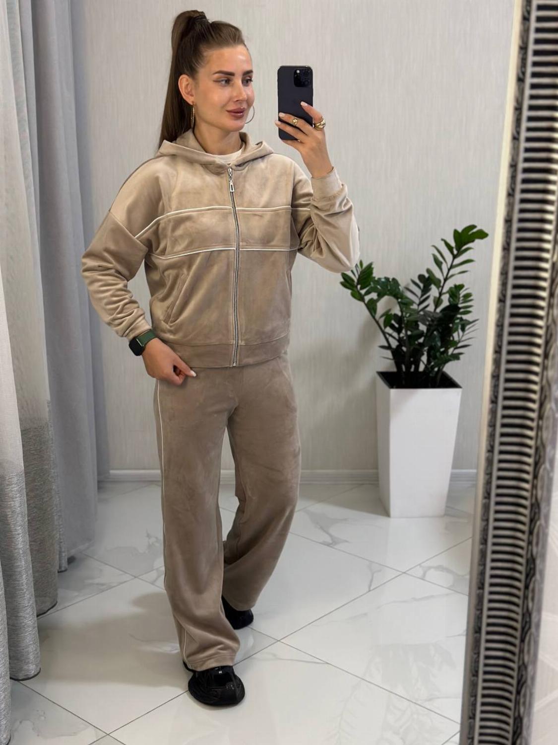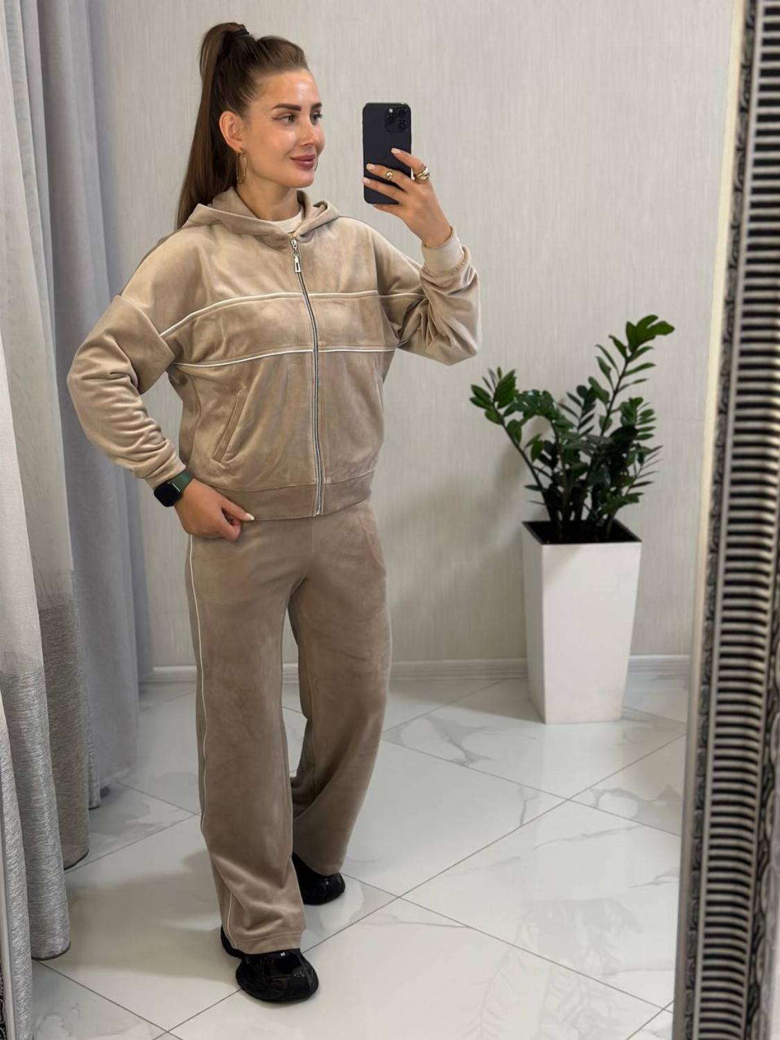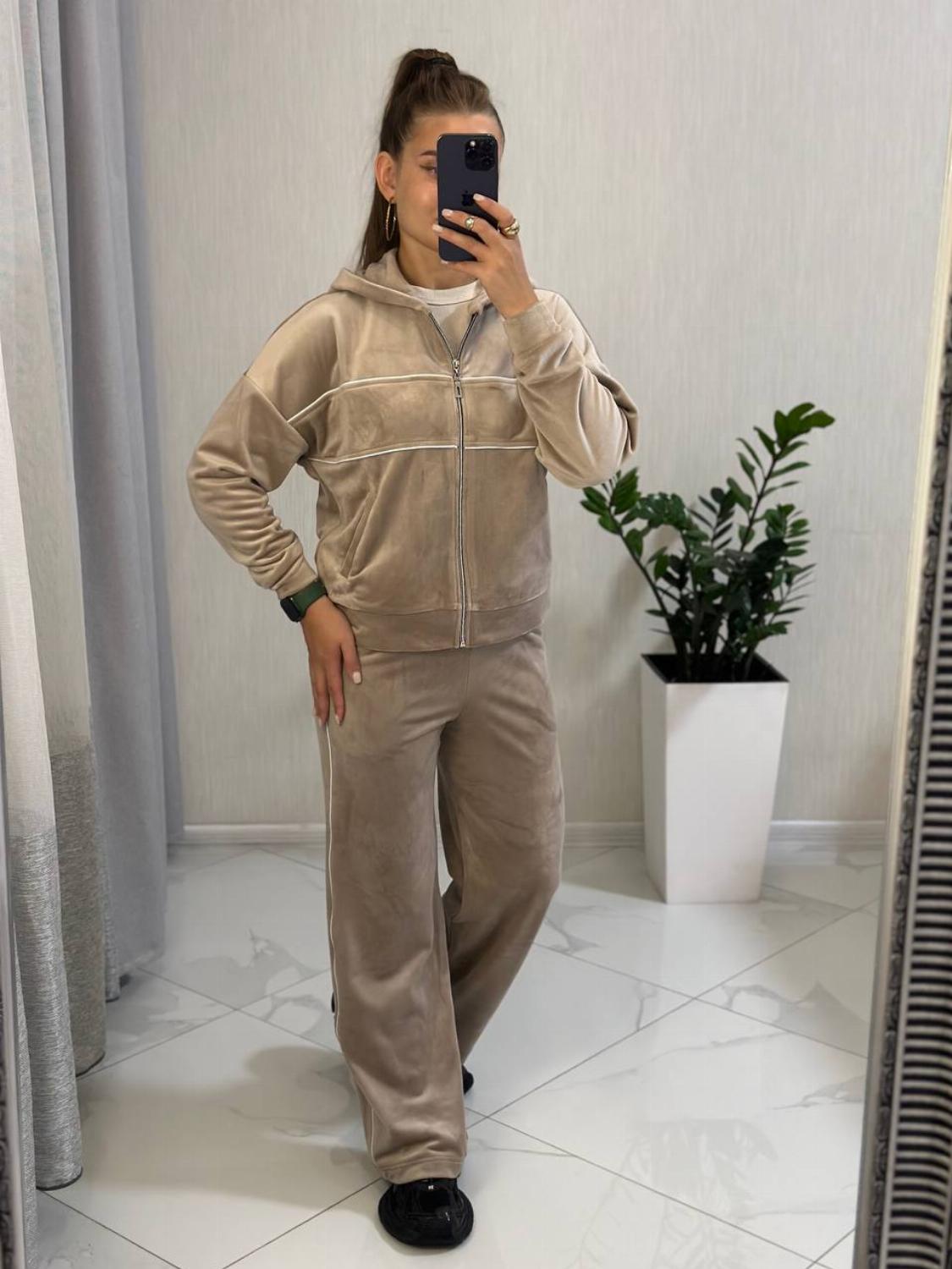 Велюровий костюм на хутрі – ідеальний вибір для прохолодних днів. Ніжний і м’який матеріал зігріває, а сучасний фасон підкреслює фігуру. Куртка на блискавці та вільні штани створюють гармонійний ансамбль, який зручно носити щодня, на прогулянки чи подорожі.