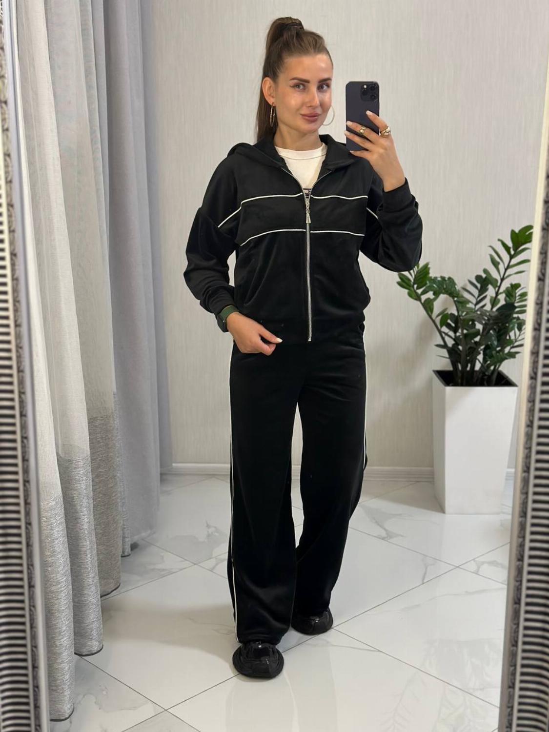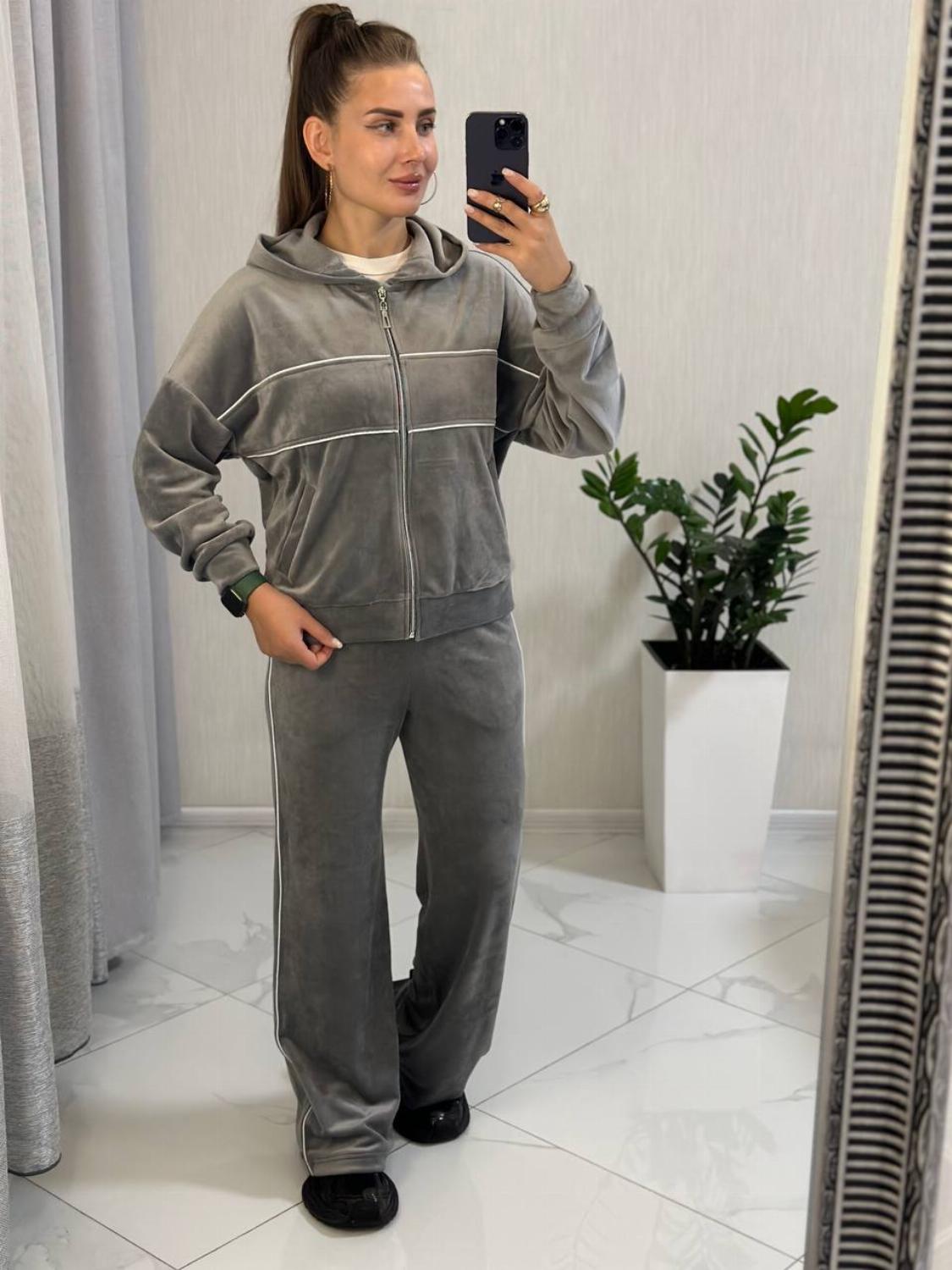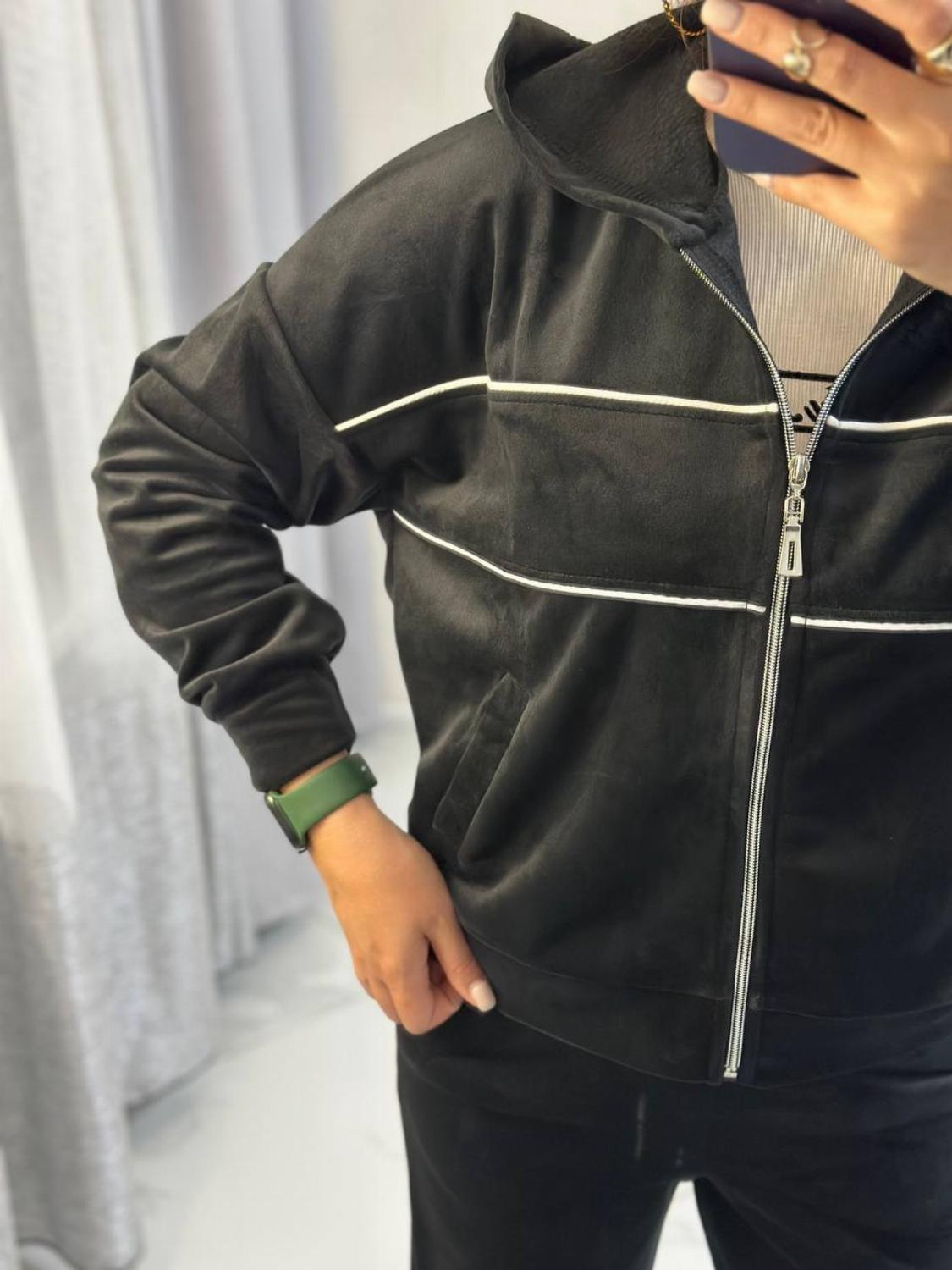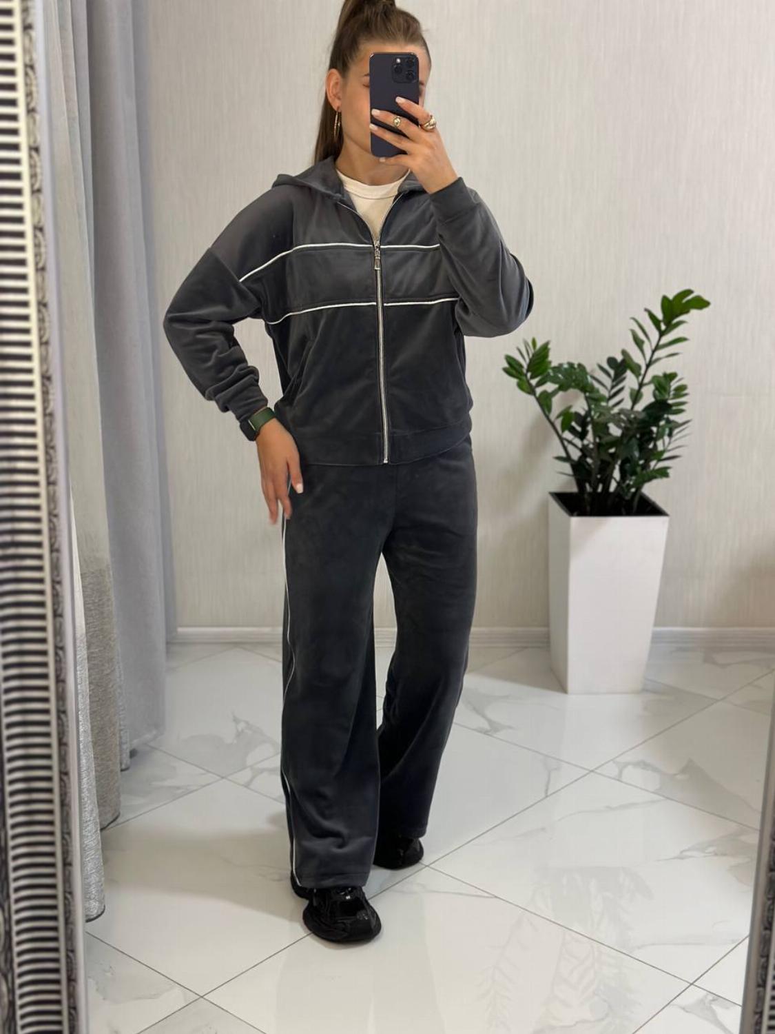 Велюровий костюм на хутрі – ідеальний вибір для прохолодних днів. Ніжний і м’який матеріал зігріває, а сучасний фасон підкреслює фігуру. Куртка на блискавці та вільні штани створюють гармонійний ансамбль, який зручно носити щодня, на прогулянки чи подорожі.