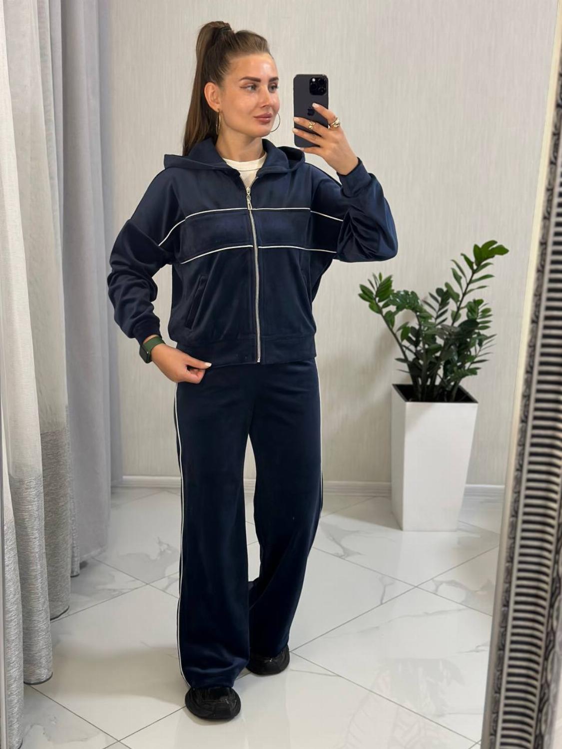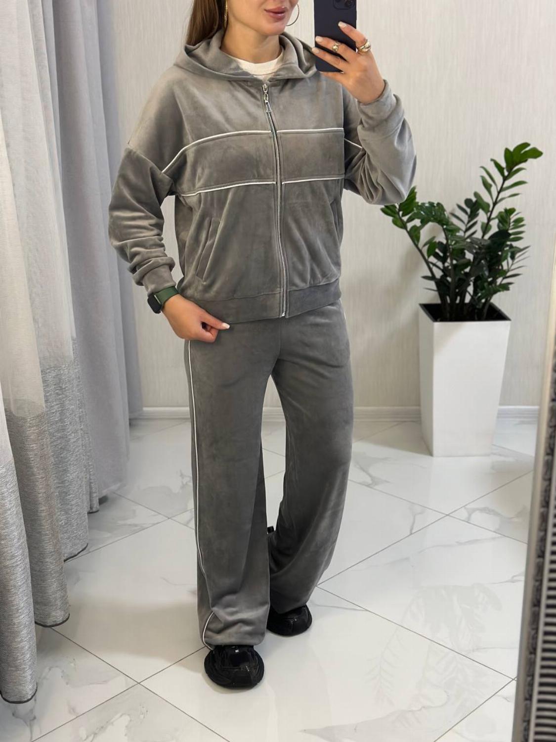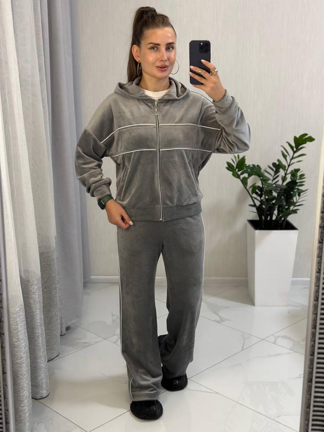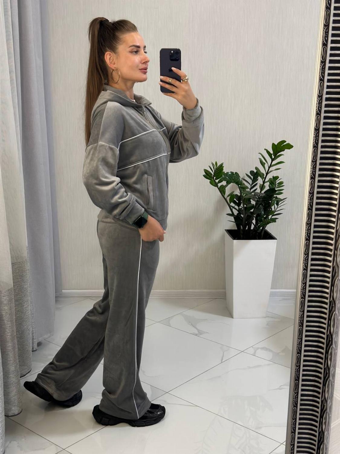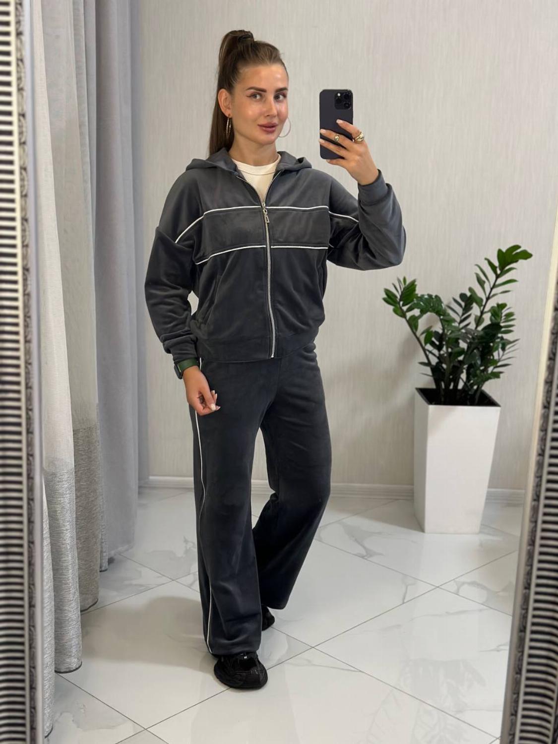 Велюровий костюм на хутрі – ідеальний вибір для прохолодних днів. Ніжний і м’який матеріал зігріває, а сучасний фасон підкреслює фігуру. Куртка на блискавці та вільні штани створюють гармонійний ансамбль, який зручно носити щодня, на прогулянки чи подорожі.