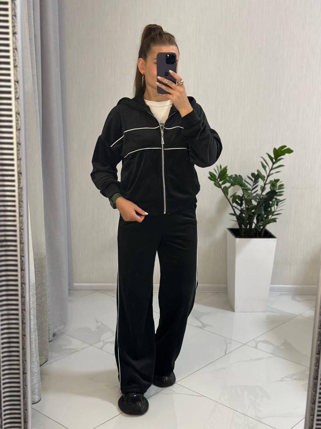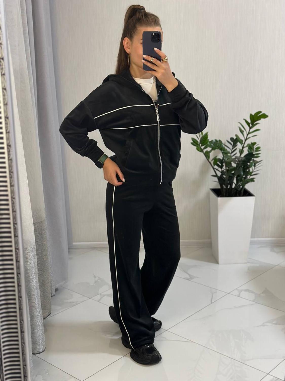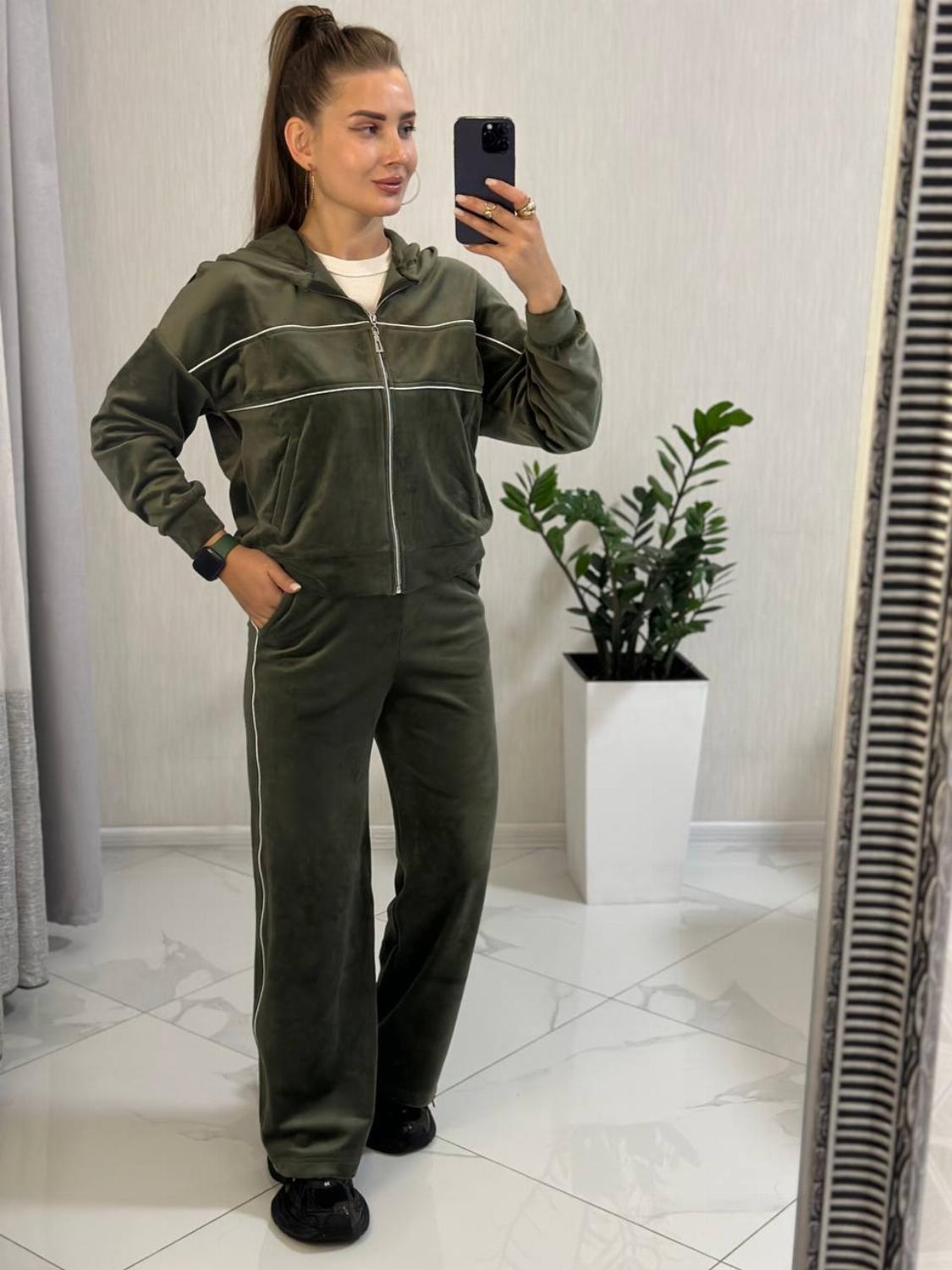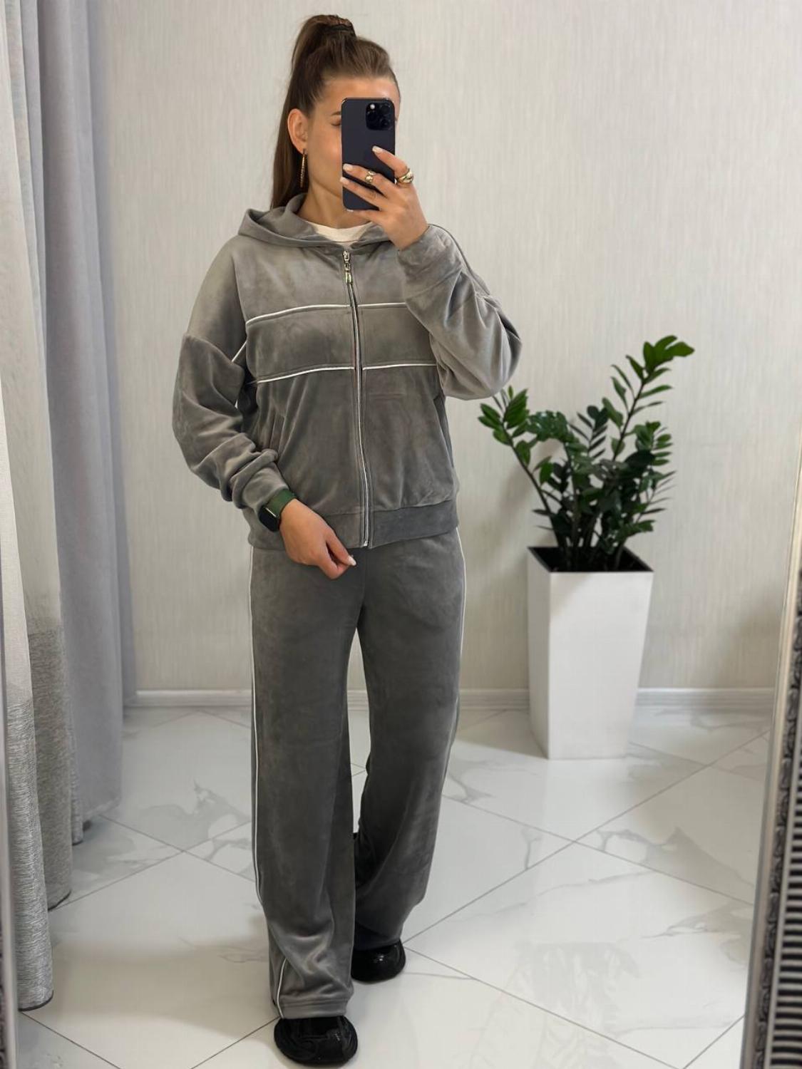 Велюровий костюм на хутрі – ідеальний вибір для прохолодних днів. Ніжний і м’який матеріал зігріває, а сучасний фасон підкреслює фігуру. Куртка на блискавці та вільні штани створюють гармонійний ансамбль, який зручно носити щодня, на прогулянки чи подорожі.