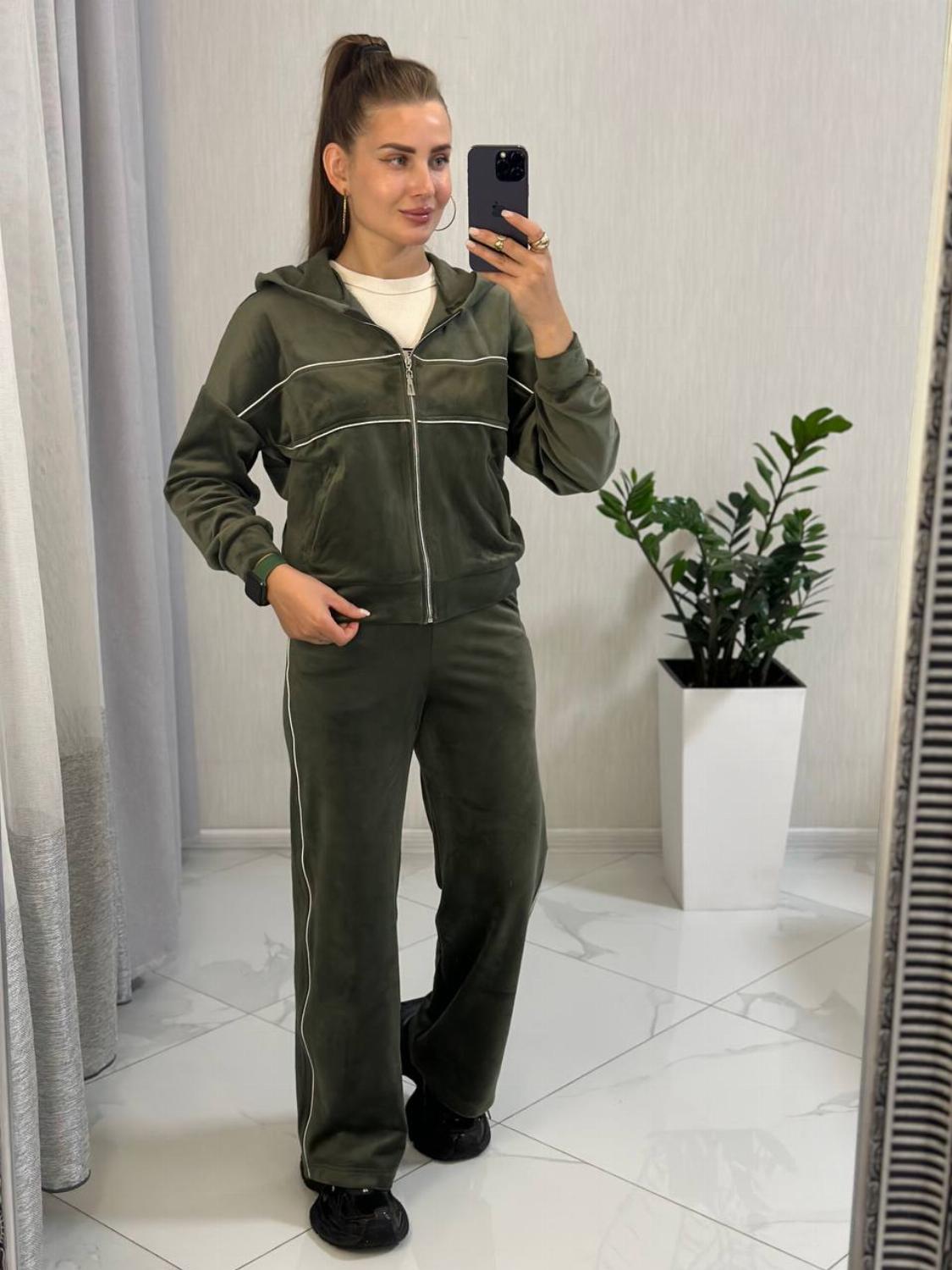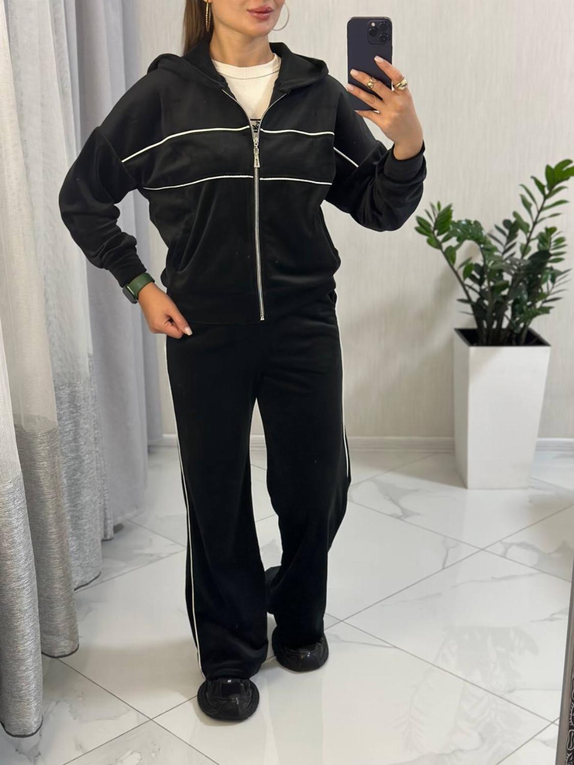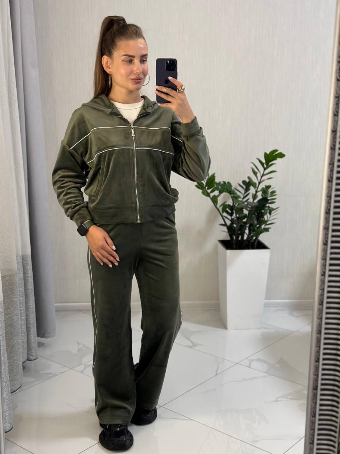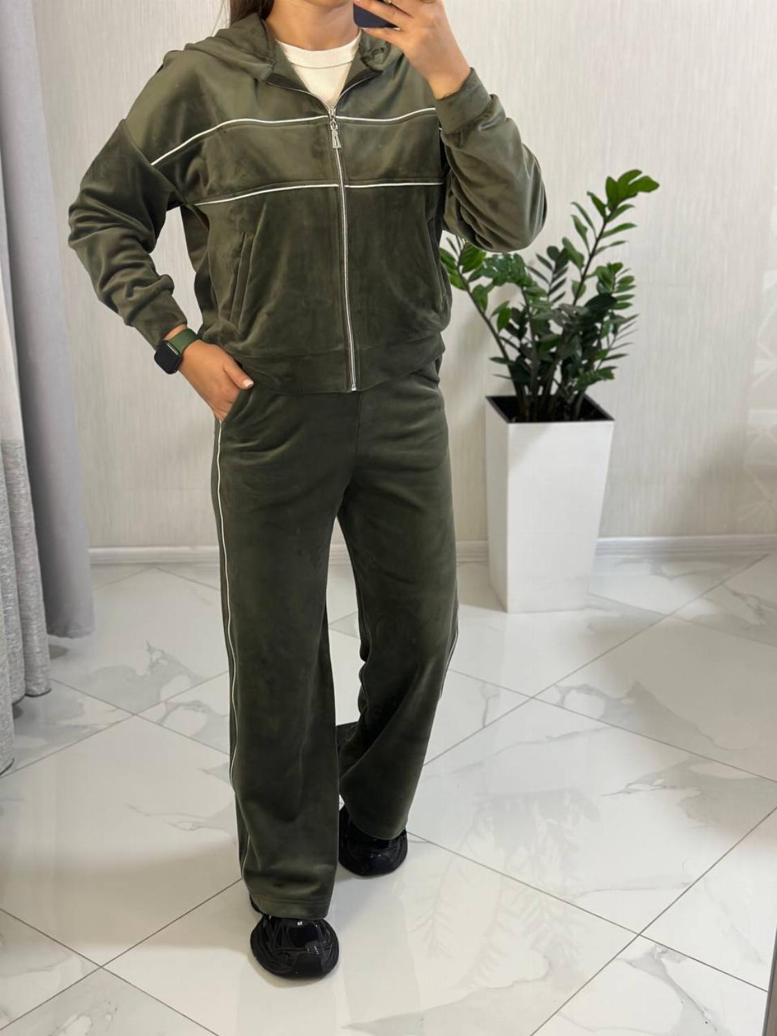 Велюровий костюм на хутрі – ідеальний вибір для прохолодних днів. Ніжний і м’який матеріал зігріває, а сучасний фасон підкреслює фігуру. Куртка на блискавці та вільні штани створюють гармонійний ансамбль, який зручно носити щодня, на прогулянки чи подорожі.
